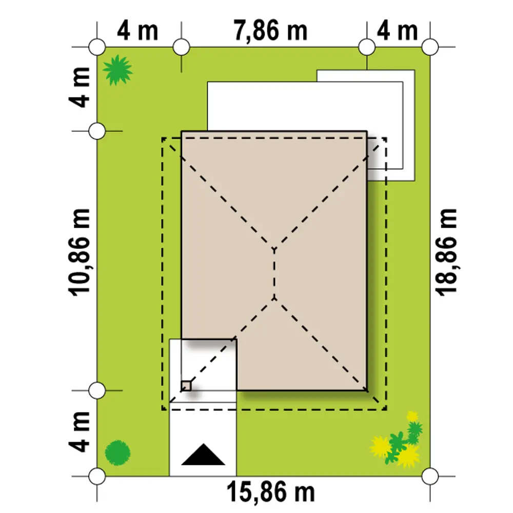Z295 to ciekawa propozycja domu nie tylko na wąską działkę. Wejście w narożniku pozwala również na korzystną lokalizację obróconego budynku na działce - z kuchnią od frontu.