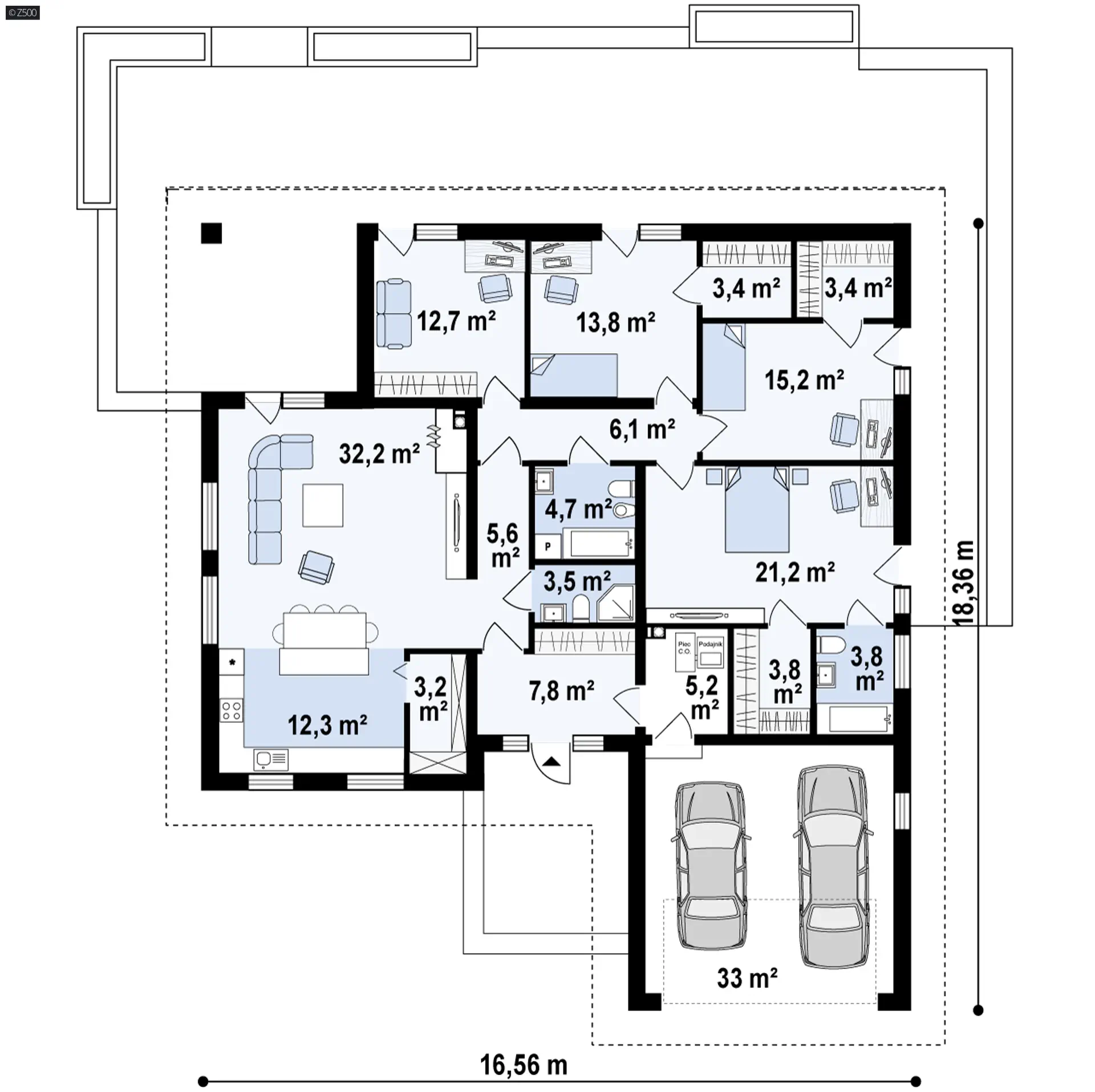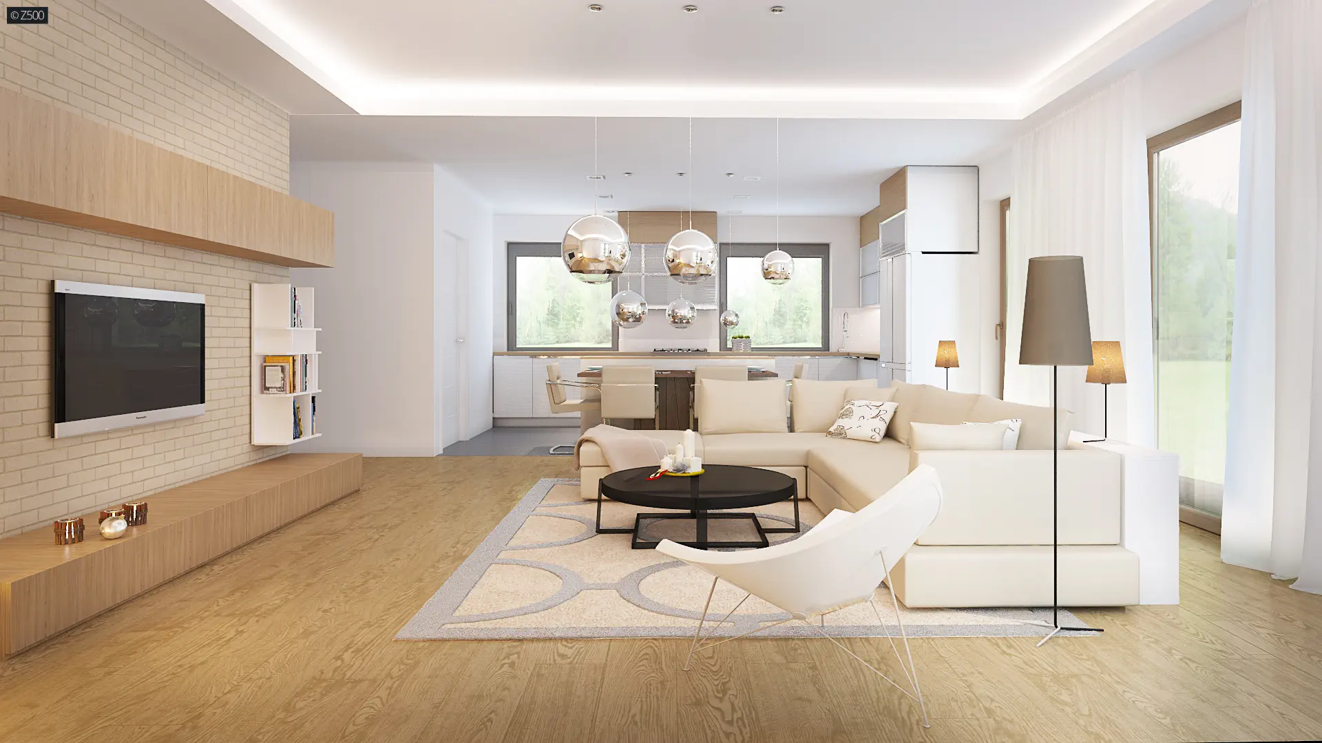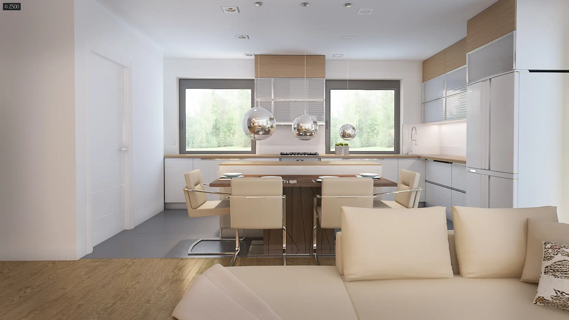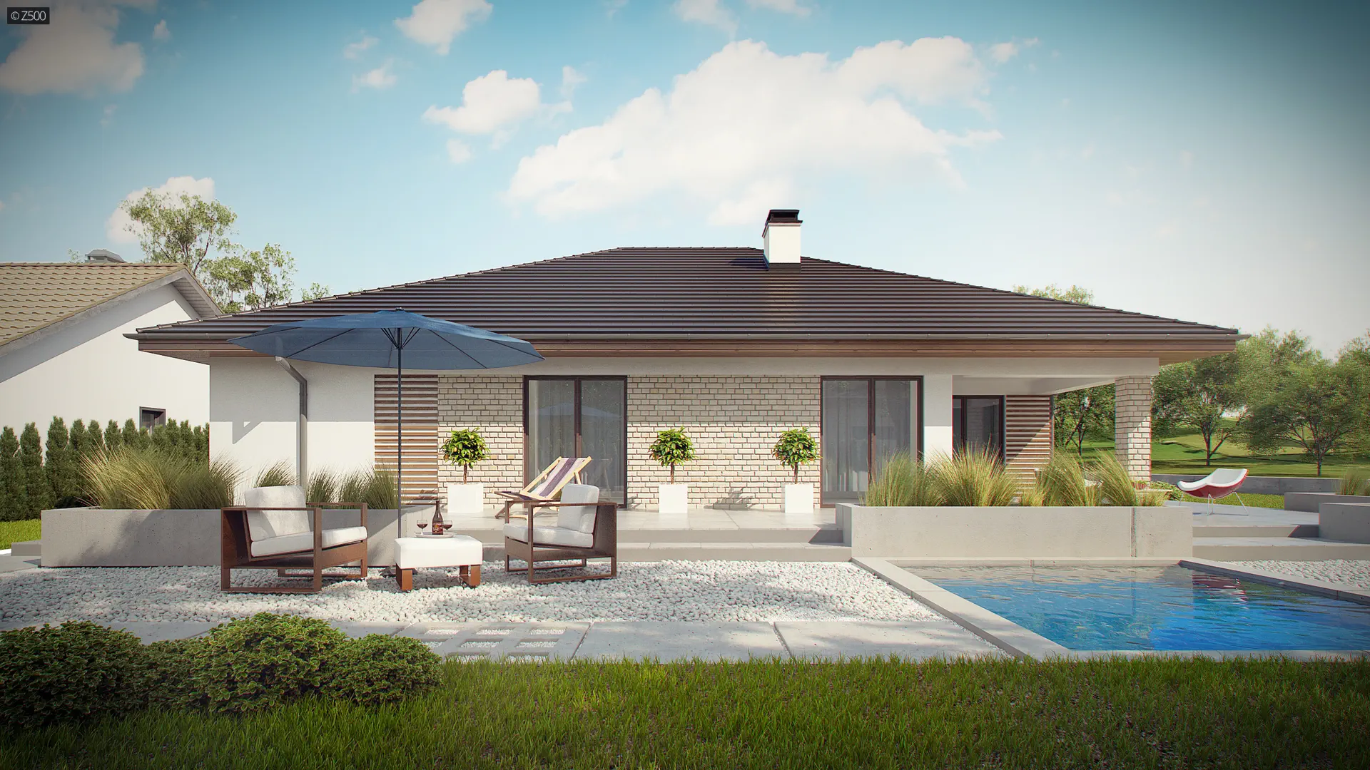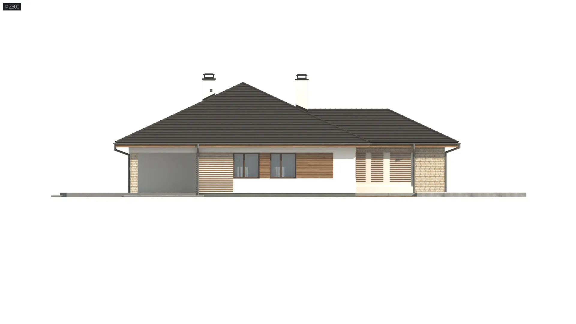 Projekt Z301 to kompleksowy dom, zawierający w swoim wnętrzu prawie wszystko, czego można oczekiwać od klasycznego domu parterowego. Bryła na planie prostokąta, z połączonym, wspólnym dachem, garażem na 2 auta wykończona została dzięki subtelnym detalom jak: dobrana kolorystyka, drewno elewacyjne czy jasny klinkier. Na większej działce dom prezentuje się jak gustowna rezydencja.