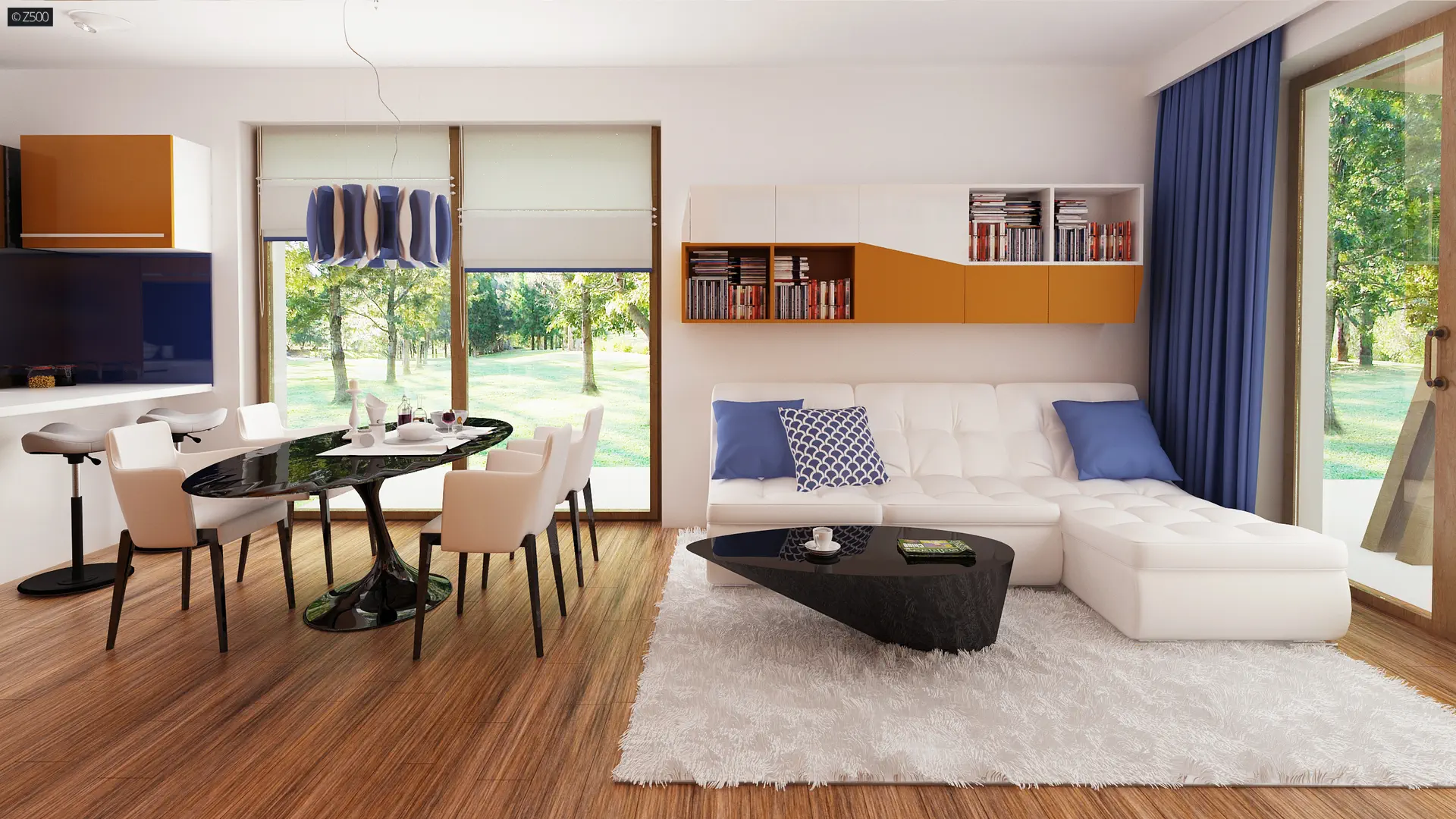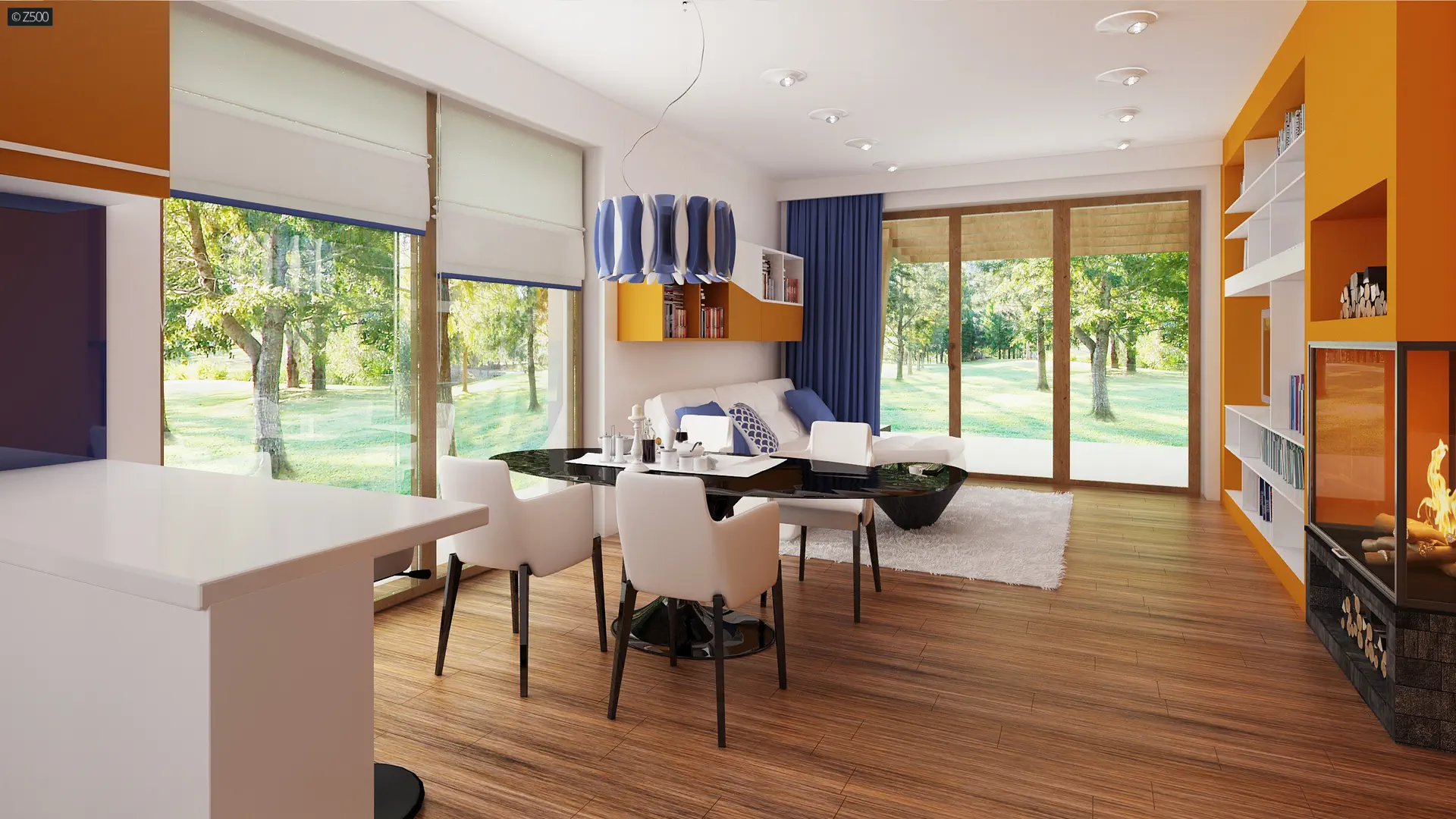 Brak wewnętrznych ścian konstrukcyjnych umożliwia dowolną aranżację wnętrza w zależności od potrzeby użytkowników.
