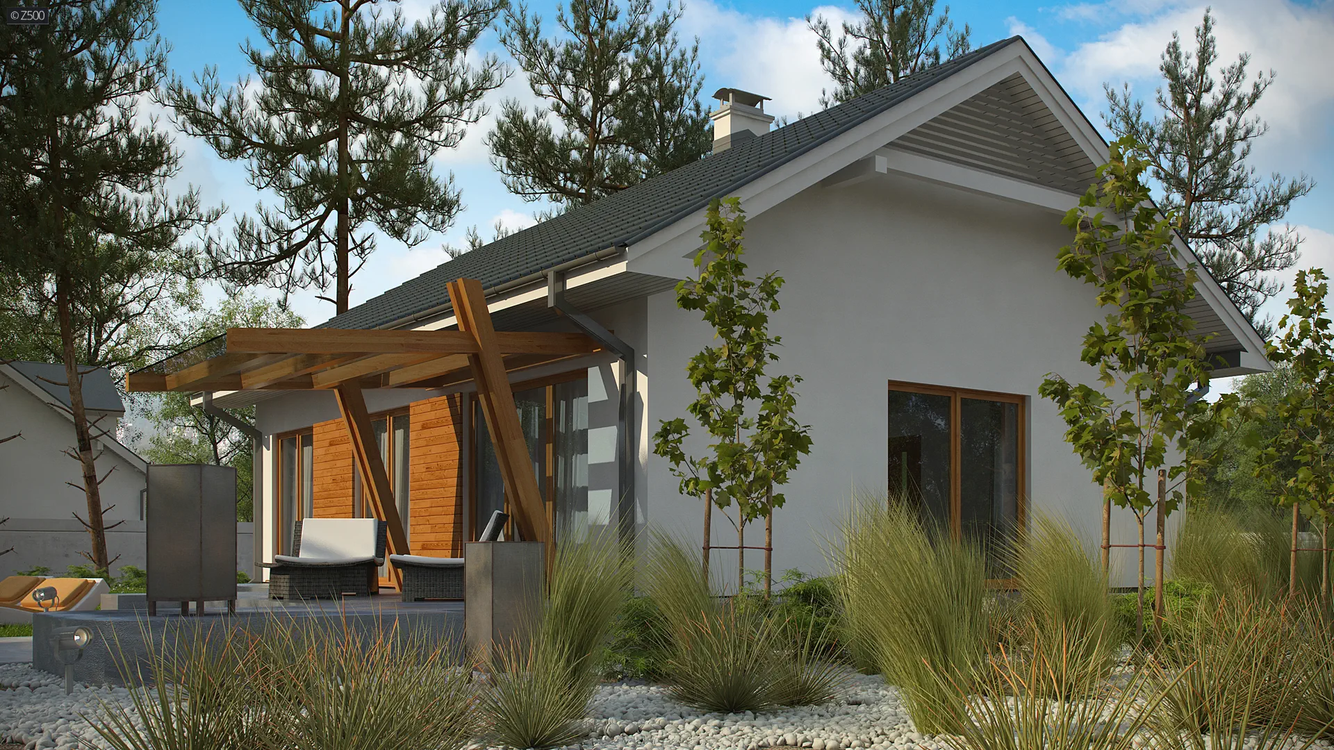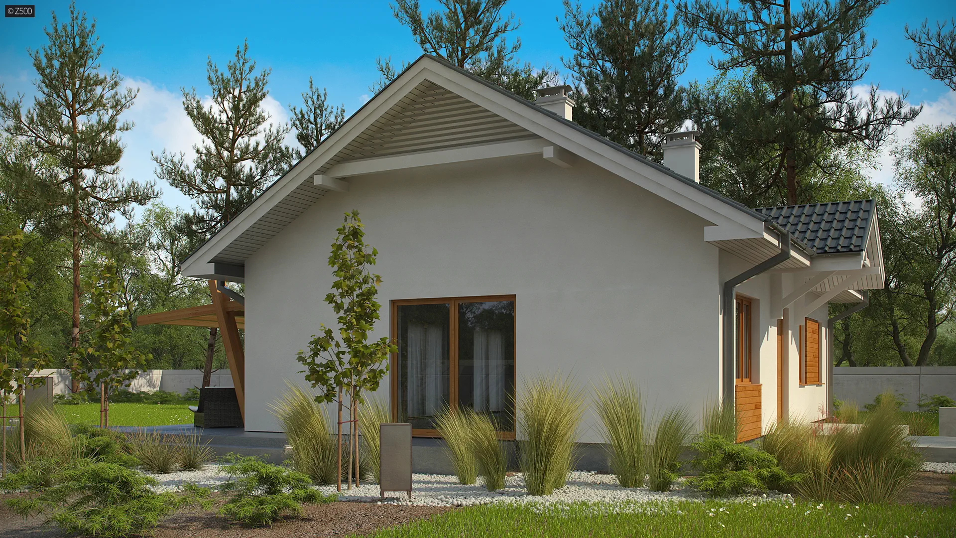 Z308 to projekt małego, przytulnego domu jednorodzinnego. Prosta konstrukcja i niewielkie wymiary budynku znacznie zmniejszą koszty wykonania inwestycji.
