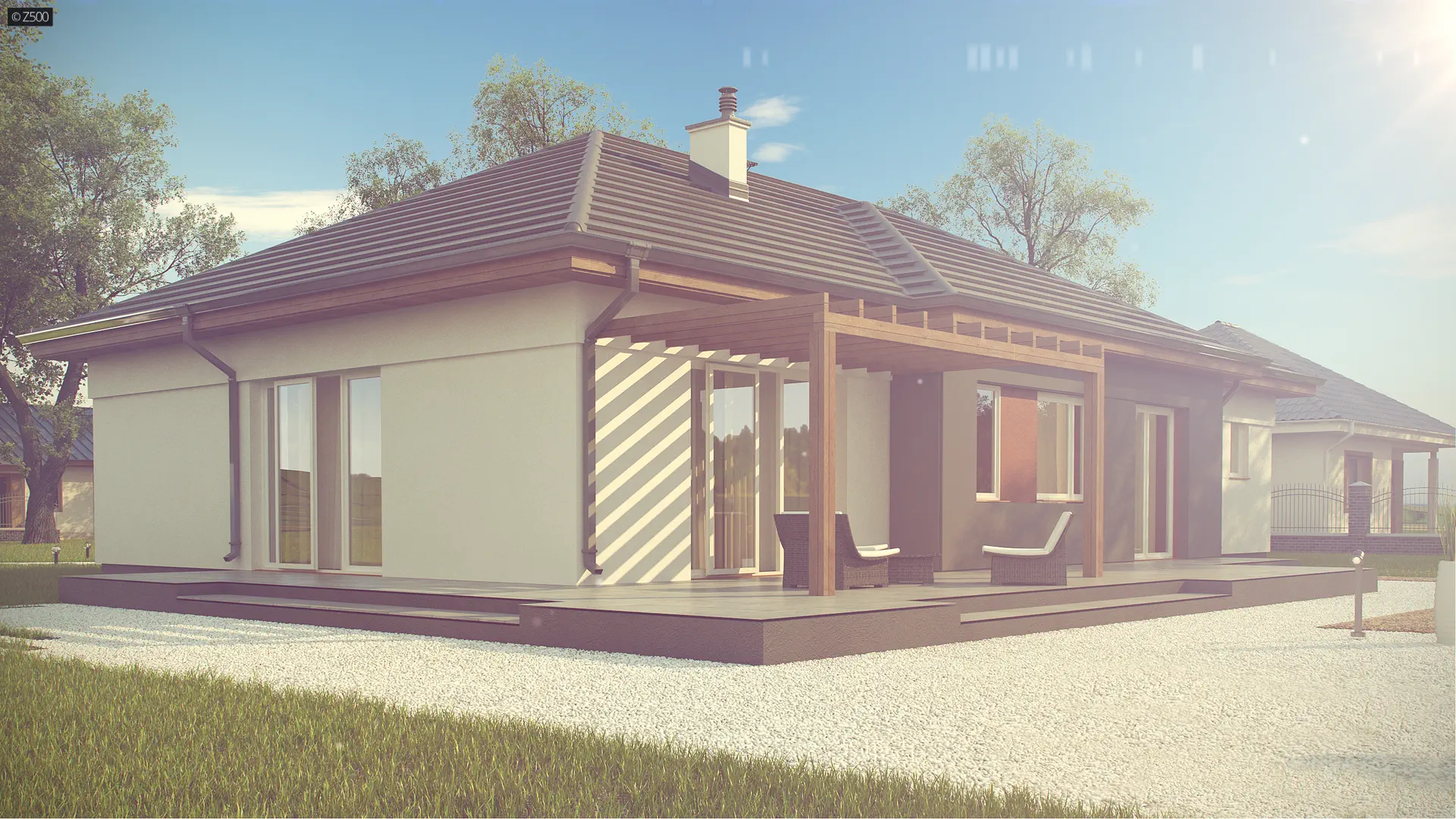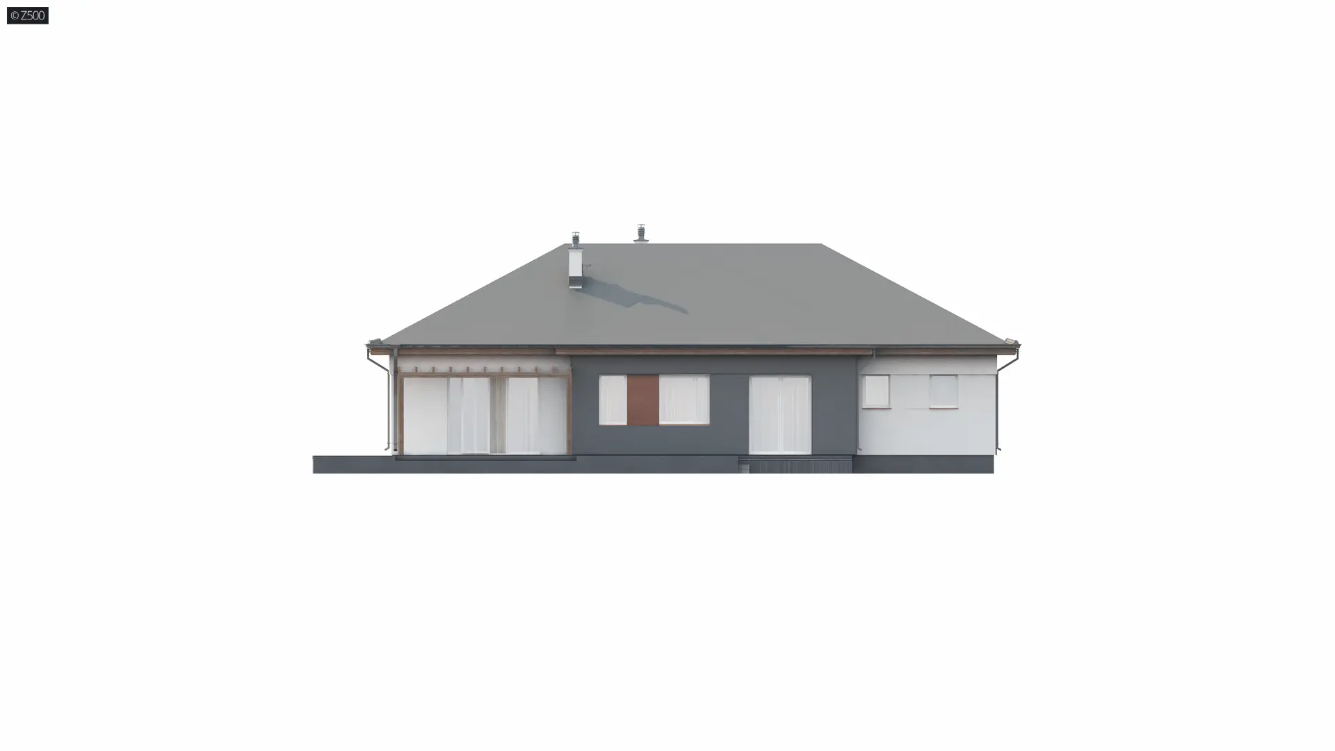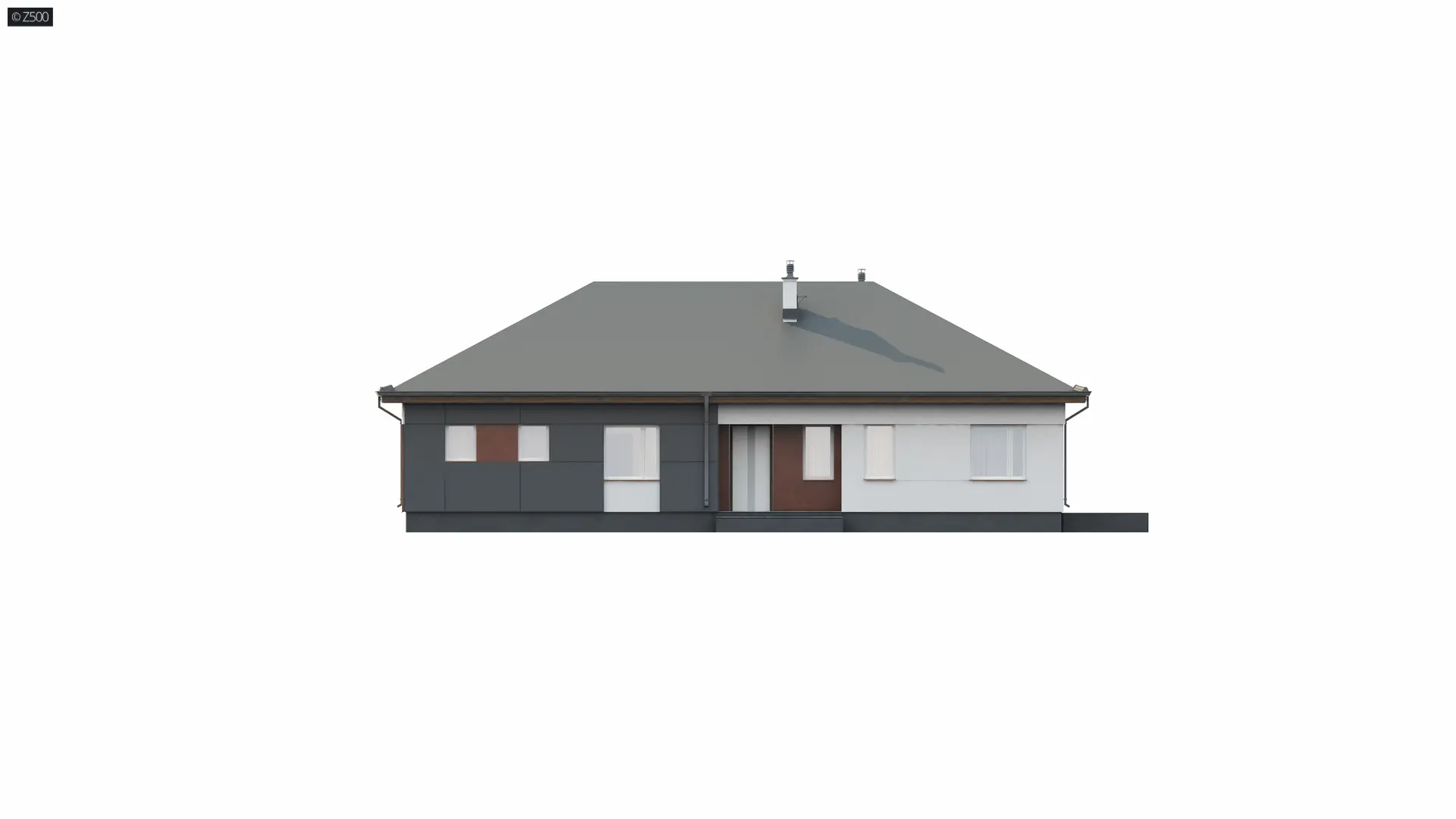 Z310 to projekt domu parterowego o estetycznym wyglądzie i komfortowym wnętrzu. Zadaszone wejście oraz okładziny na elewacjach podkreślają jego nowoczesny charakter.