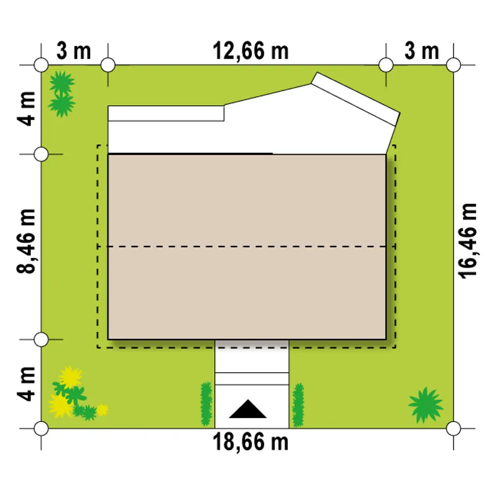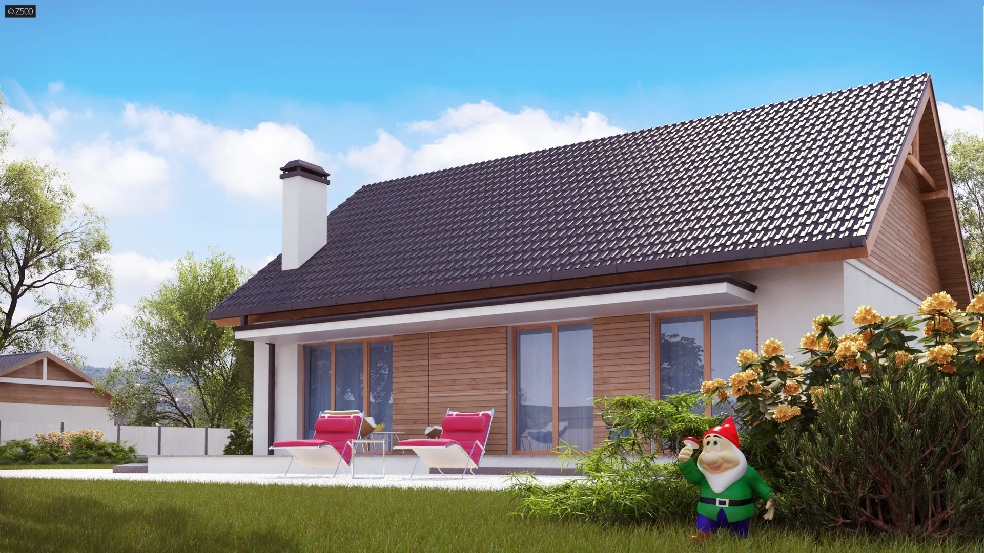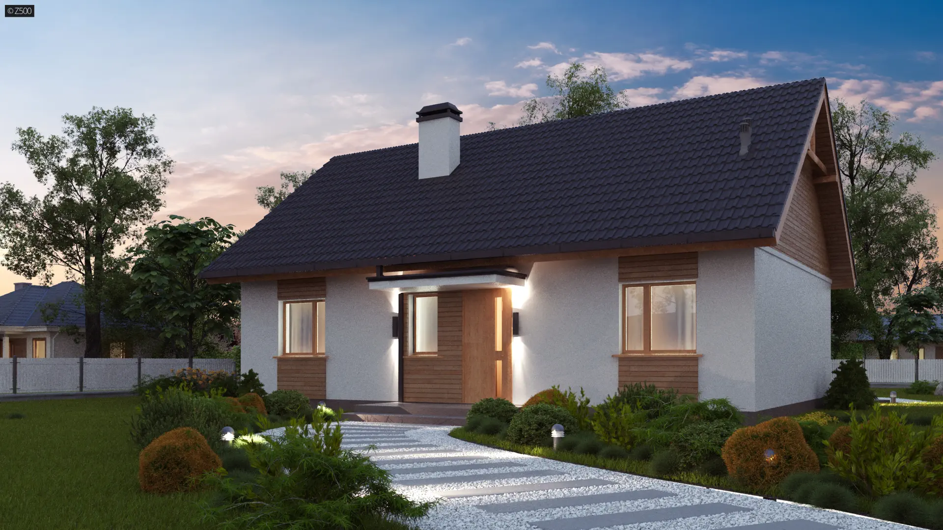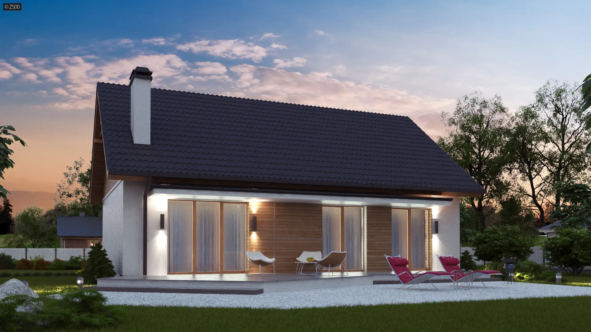 Z313 jest małym, zgrabnym domkiem parterowym. Dużą zaletą tego projektu jest oszczędna, prosta bryła z dwuspadowym dachem, co umożliwi szybką i tanią realizację.
