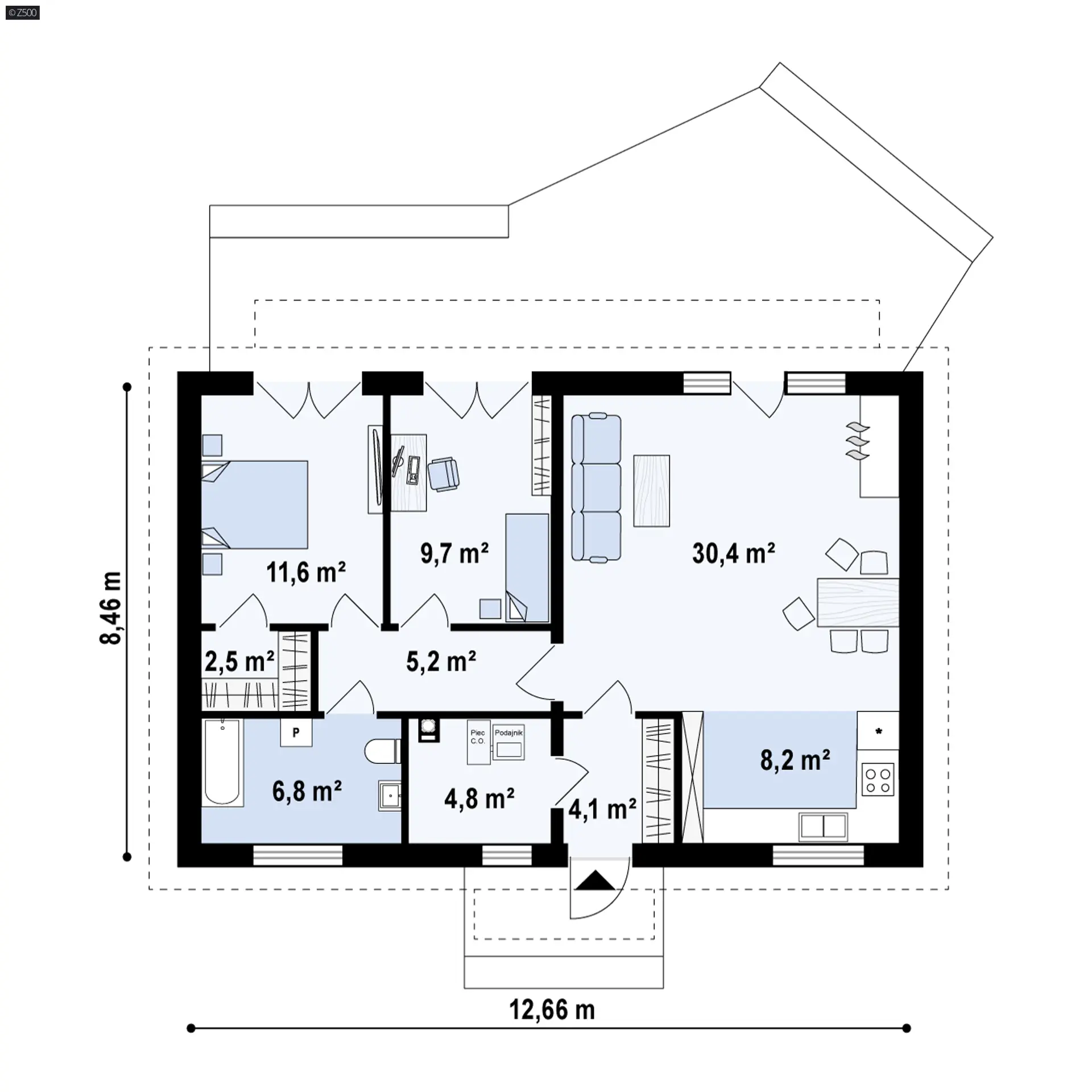 Bogaty program użytkowy Z313 został podzielony na dwie strefy . Strefa dzienna to przestronny salon z otwartą kuchnią. Natomiast strefa nocna została wydzielona w lewym skrzydle domu. Składają się na nią dwie sypialnie oraz wygodna łazienka. Główna sypialnia posiada własną garderobę.
