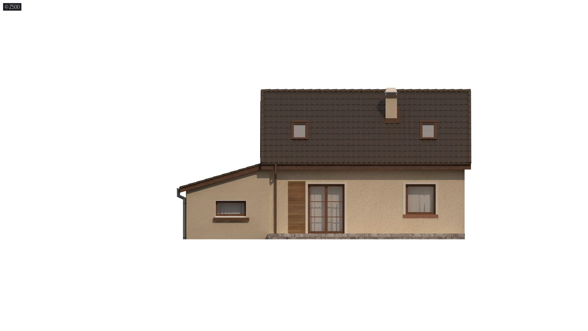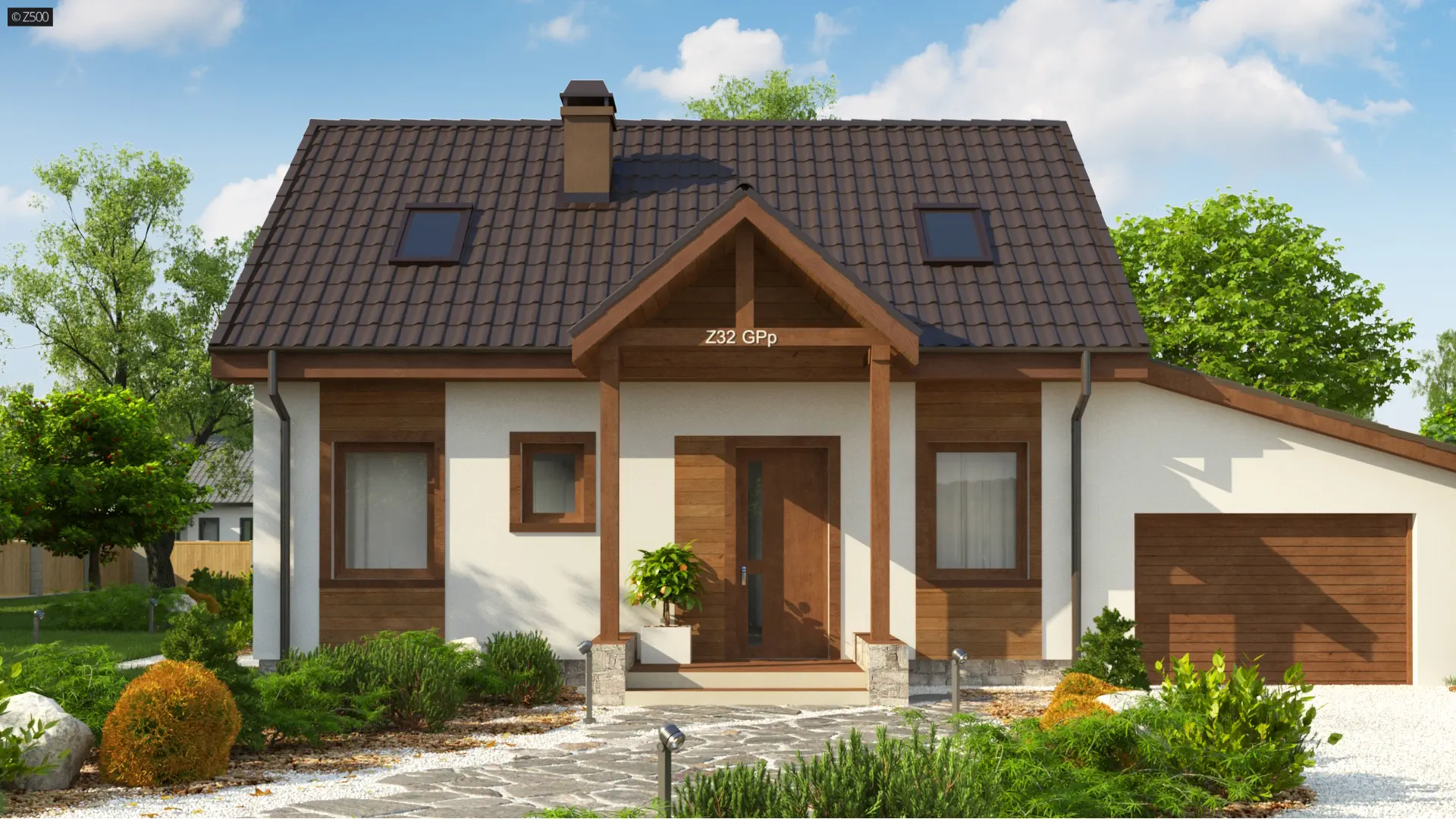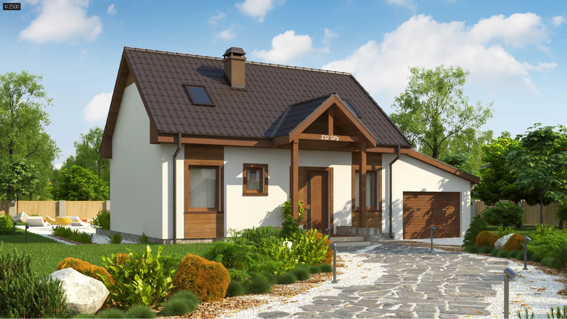 Projekt domu Z32 GPp to ekonomiczny dom na małą działkę z dachem dwuspadowym, garażem i 4 pokojami. W układzie przewidziano 4 sypialnie, 2 łazienki, salon 23,8 m², garaż jednostanowiskowy. Minimalna działka: 18,96 m × 15,26 m.