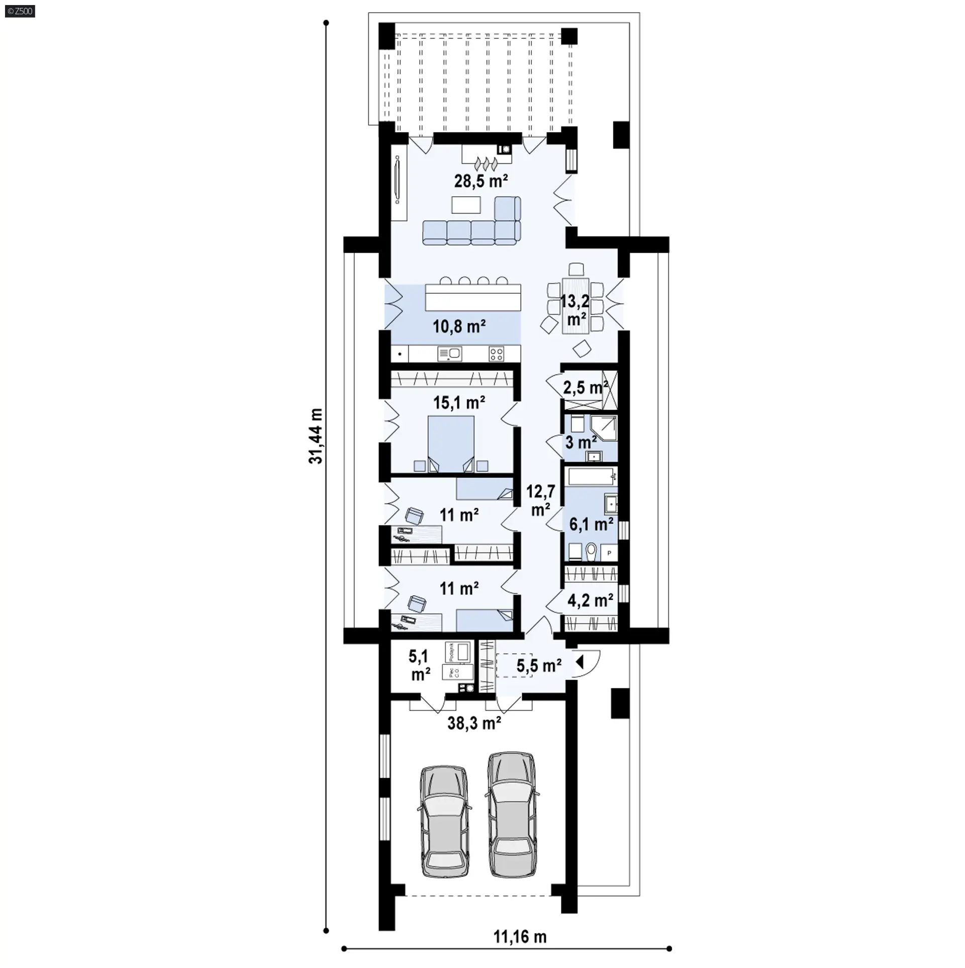 Z330 to trzeci z serii domów Z500, z przeznaczeniem na wąska działkę, który dostarczy jego właścicielom potrójnej satysfakcji.