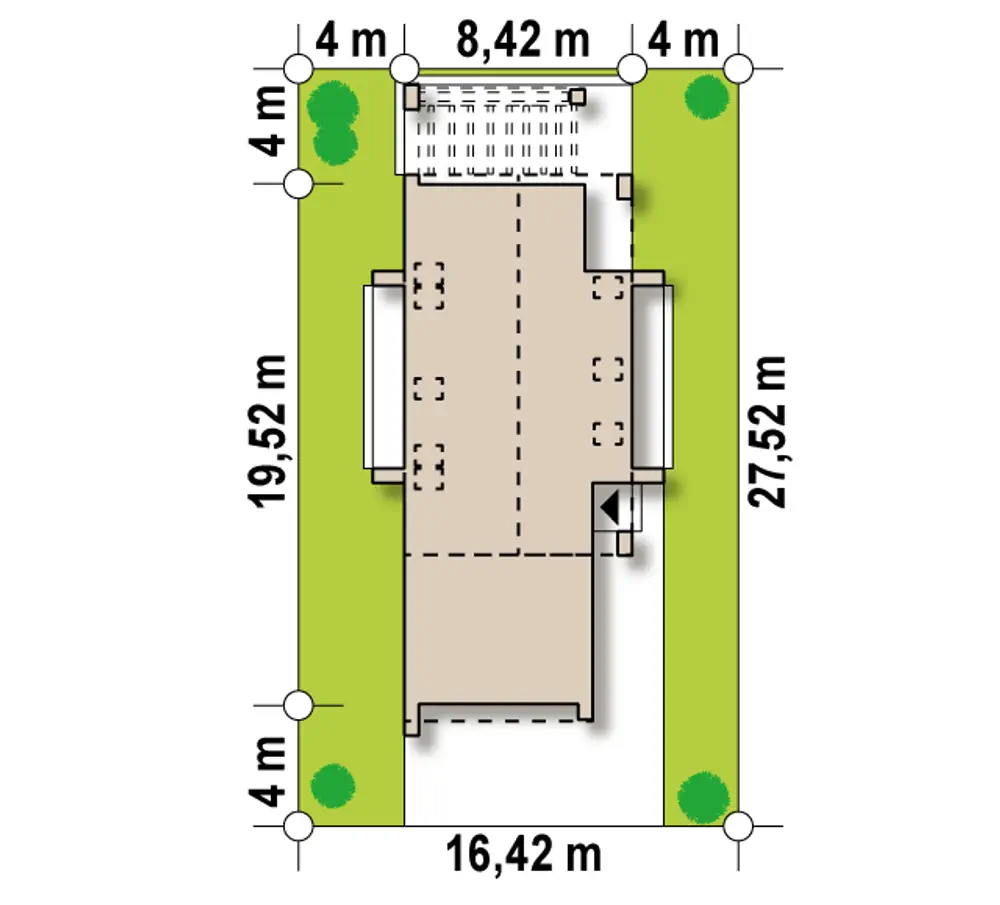 Z330 D p to kolejny z serii domów Z500, nadających się do budowy na wąskiej działce. Dostarczy jego właścicielom potrójnej satysfakcji: