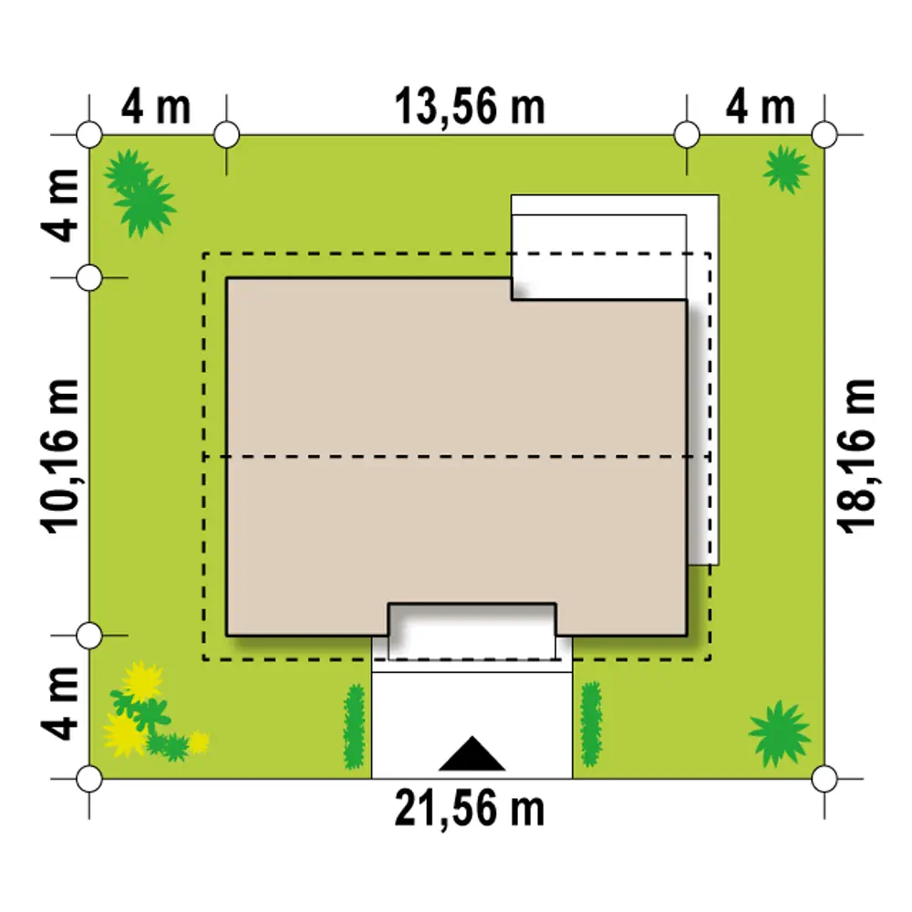 Z334 to projekt parterowego domu o prostej formie, z cofniętym zadaszonym wejściem i dachem dwuspadowym.