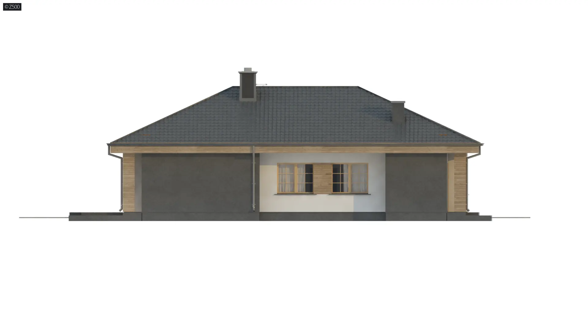 Jest domem parterowym, o czterospadowym dachu kopertowym i kalenicą prostopadłą do drogi. Dedykowany jest dla osób poszukujących projektu na wąską działkę. Prosta, klasyczna elewacja składa się z okładzin w postaci białego, cienkowarstwowego tynku oraz drewna nadającego efektu elegancji całości.
