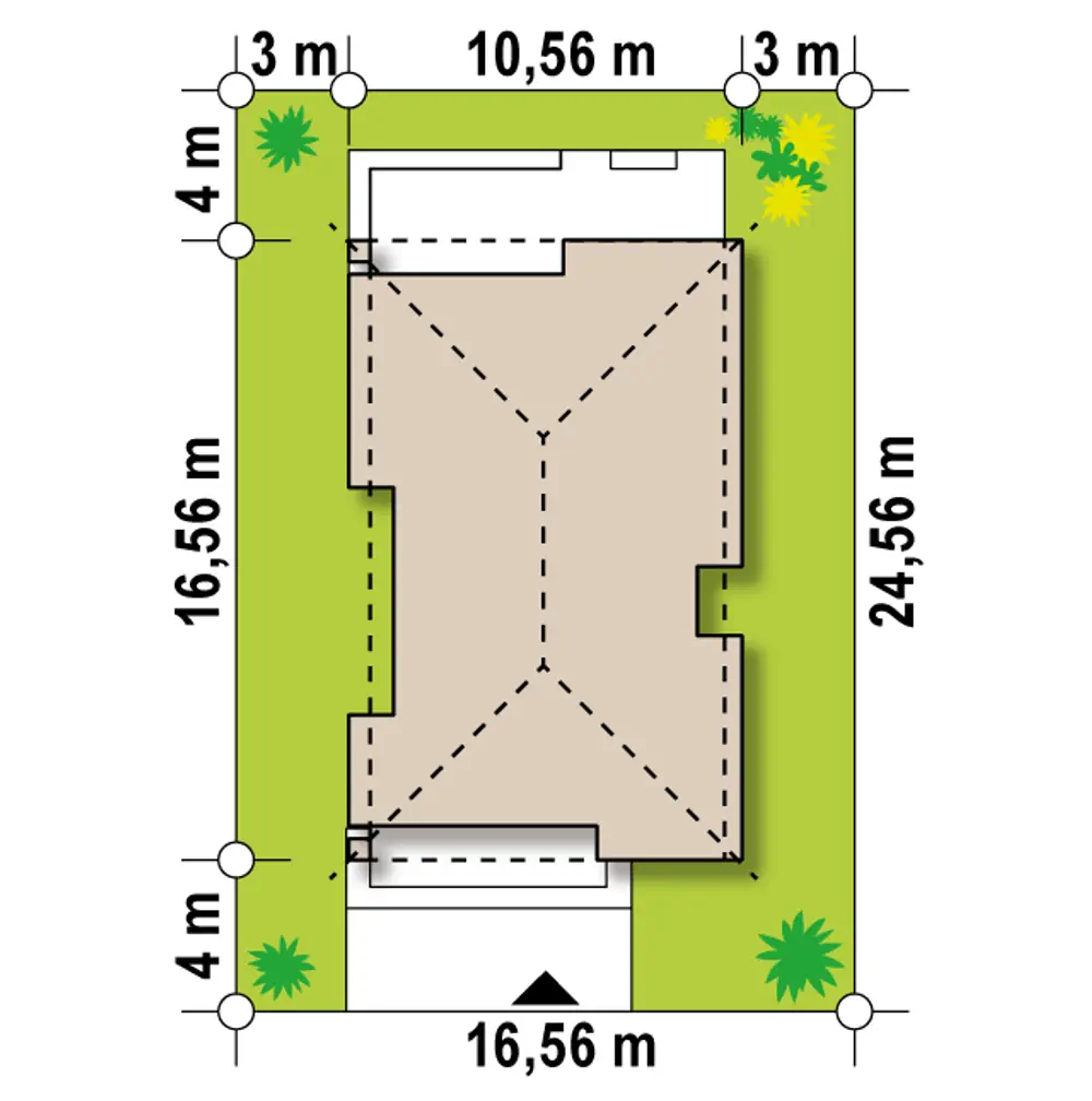 Parterowy dom na wąską działkę z kopertowym dachem i 3 przestronnymi sypialniami