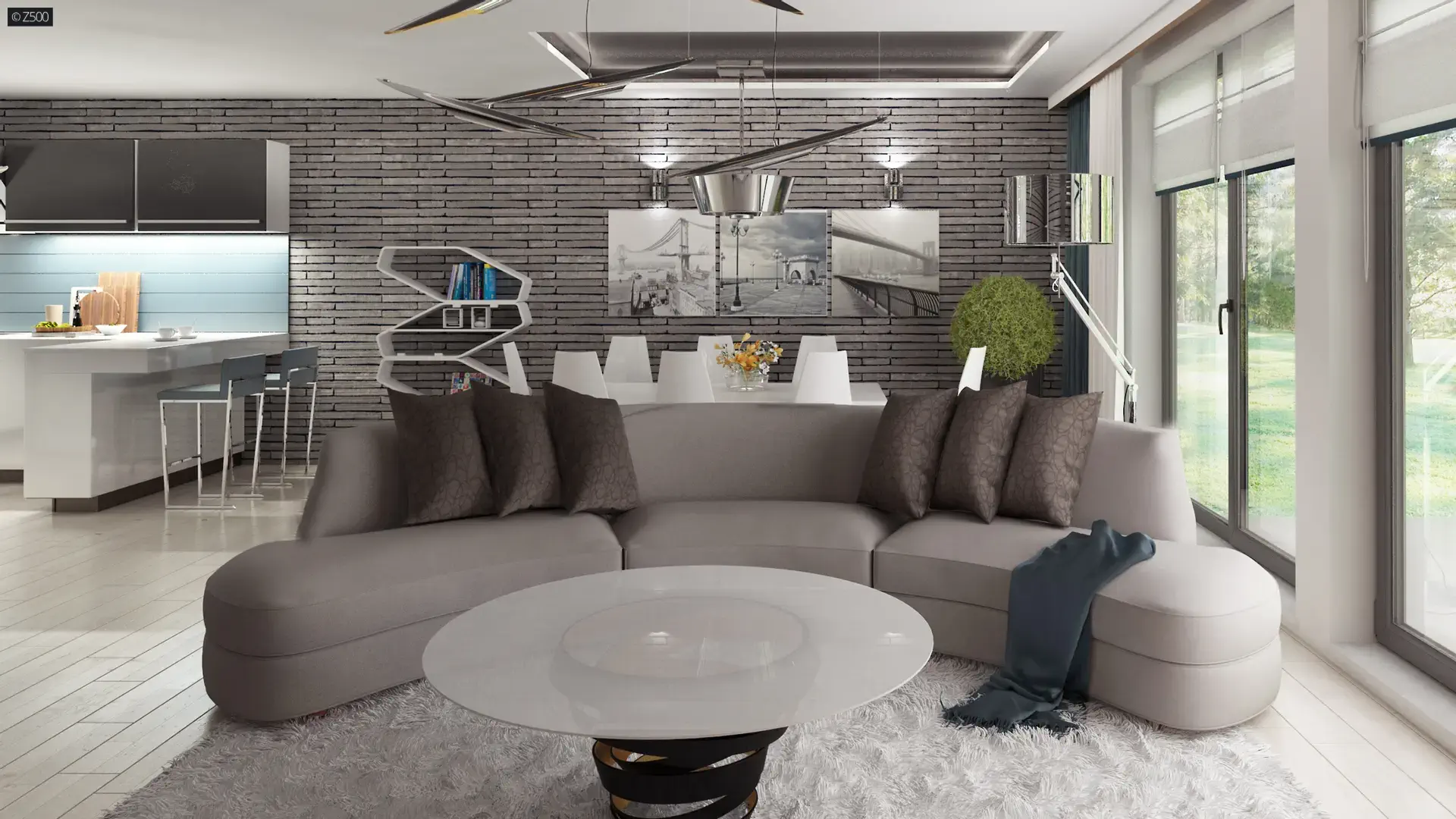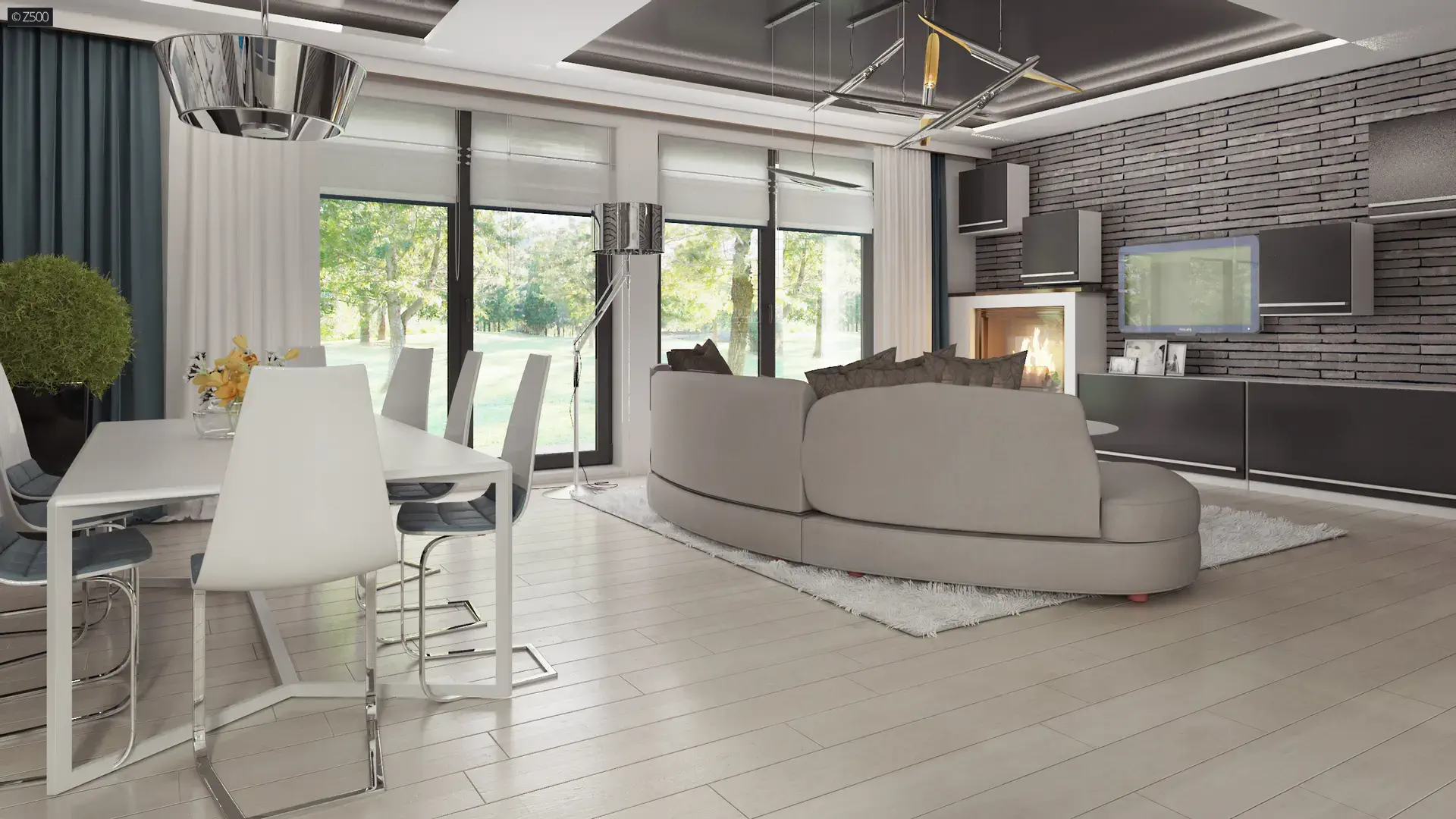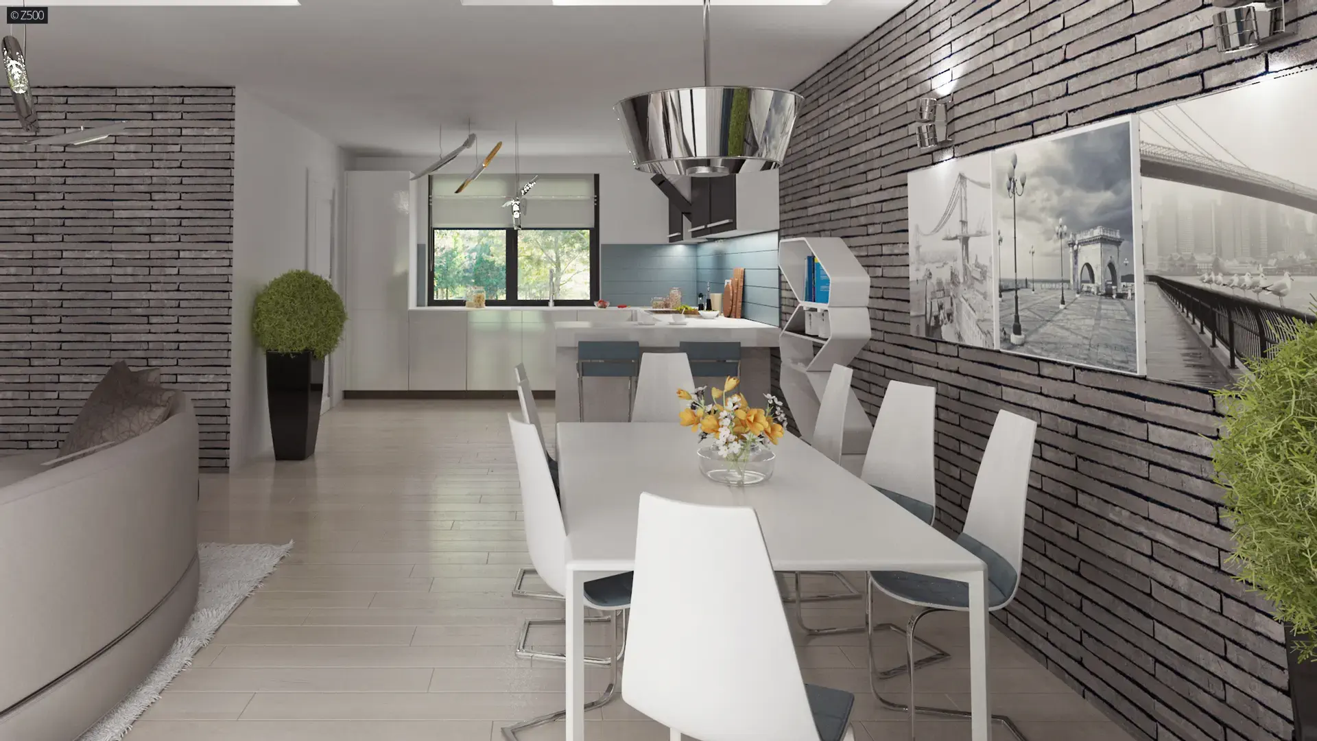 Wnętrza zostały podzielone na dwie strefy.