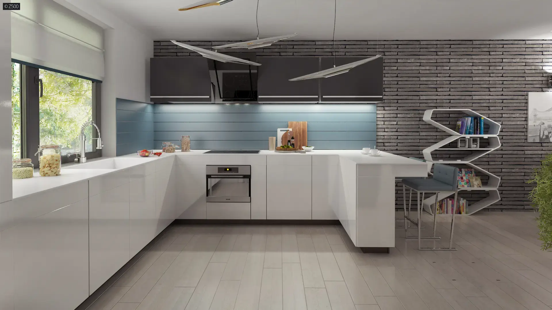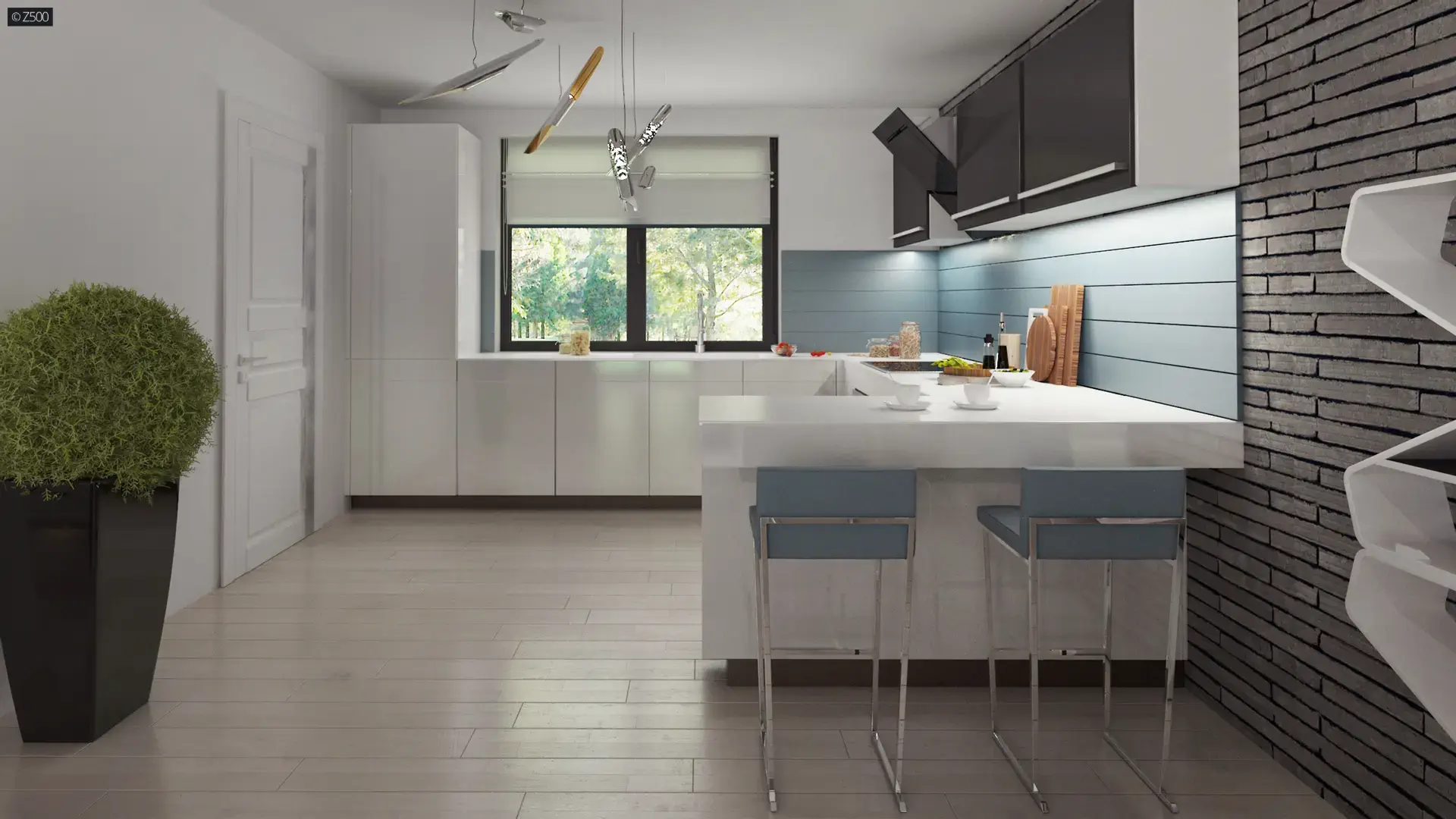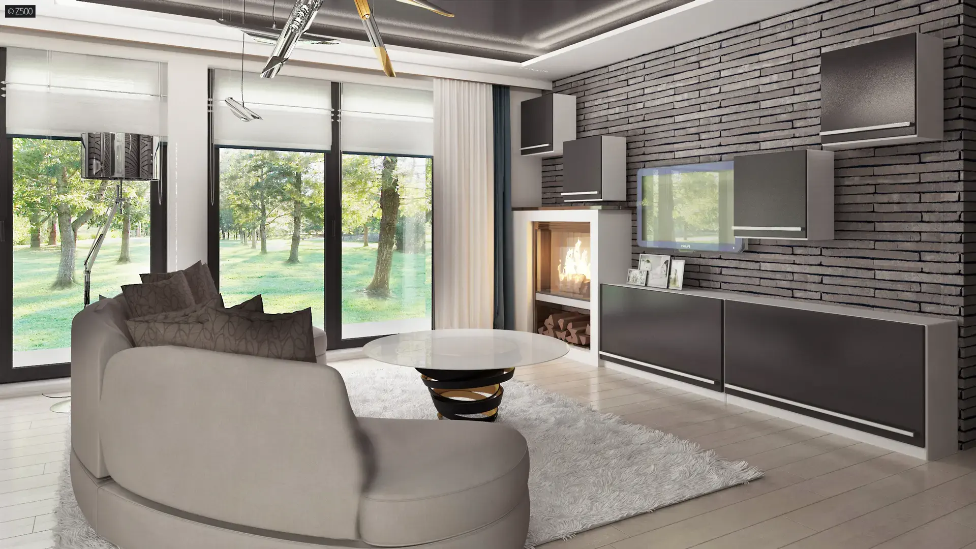Wnętrza zostały podzielone na dwie strefy.
