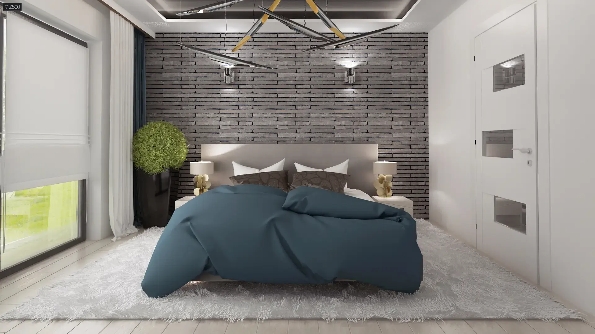 Prawa część to nocna strefa domu. Dwie sypialnie umieszczono od strony ogrodu, dwie kolejne od frontu. Te w tylnej części domu posiadają duże przeszklenia, będące jednocześnie wyjściem na taras. Jeden z nich może być główną sypialnią, ponieważ posiada prywatną garderobę.