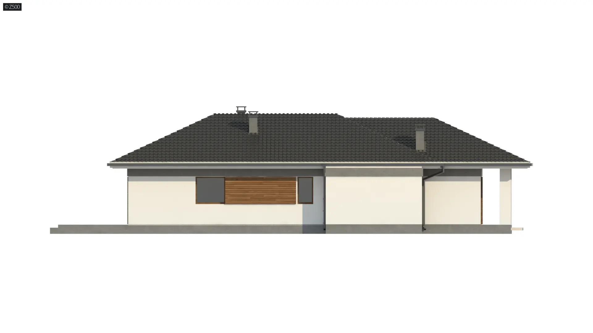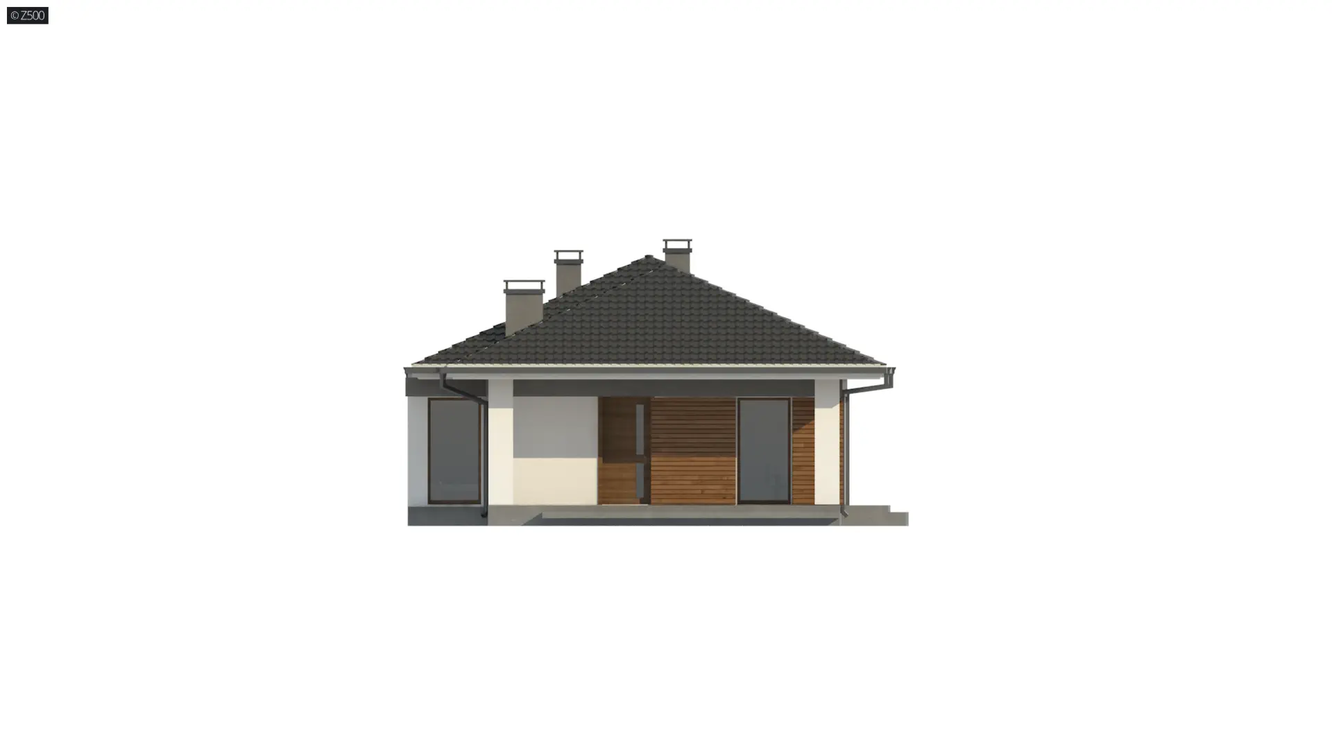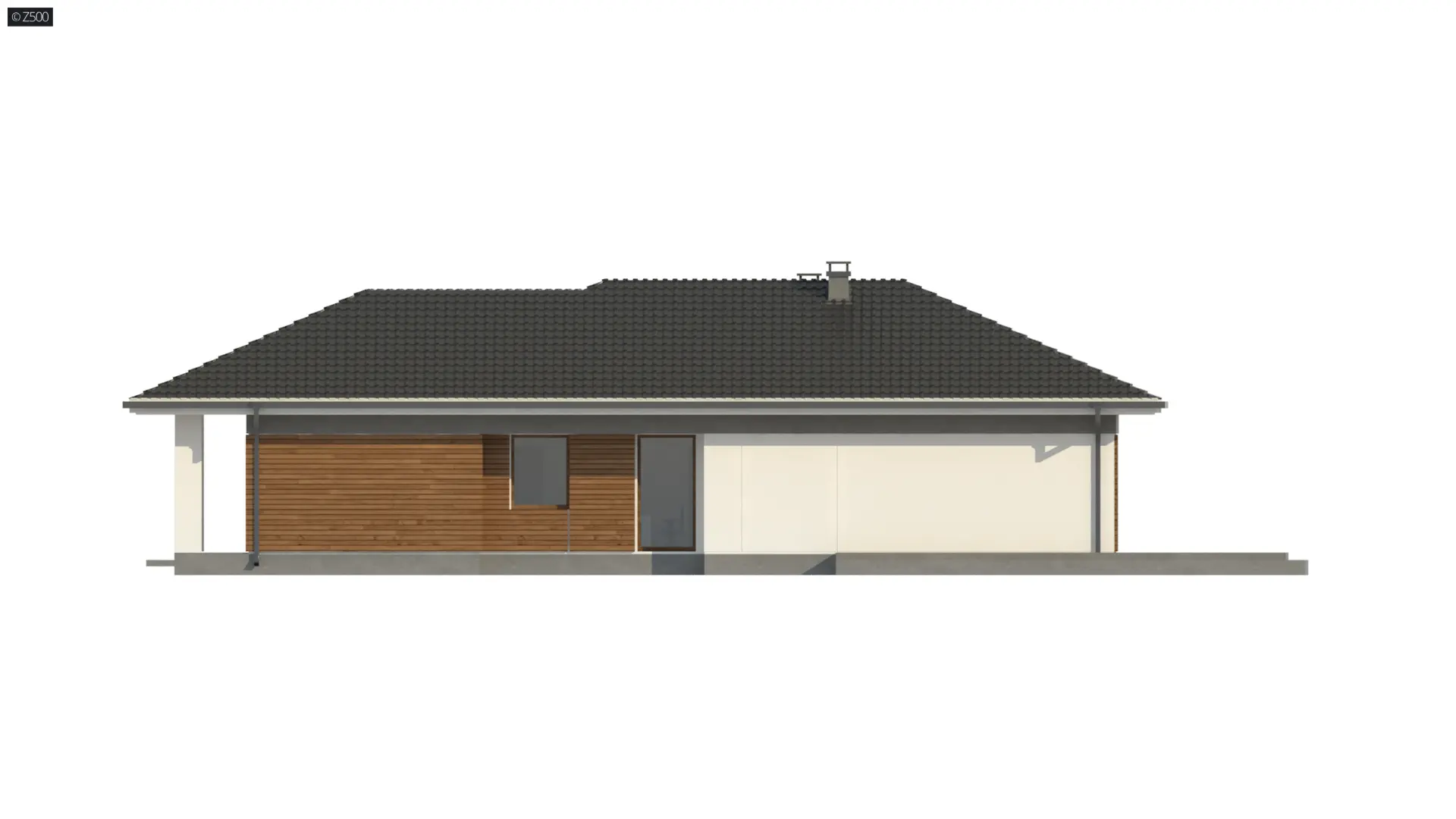 Projekt domu wykreowany specjalnie z myślą o wąskiej działce do szerokości 16m. Elewacja budynku została wykonana z dozą prostoty i minimalizmu, o czym świadczy ozdobne połączenie białego tynku i drewna. Architekci, dzięki odpowiedniemu rozplanowaniu układu funkcjonalnego rozmieścili w budynku część dzienną i nocną domu.