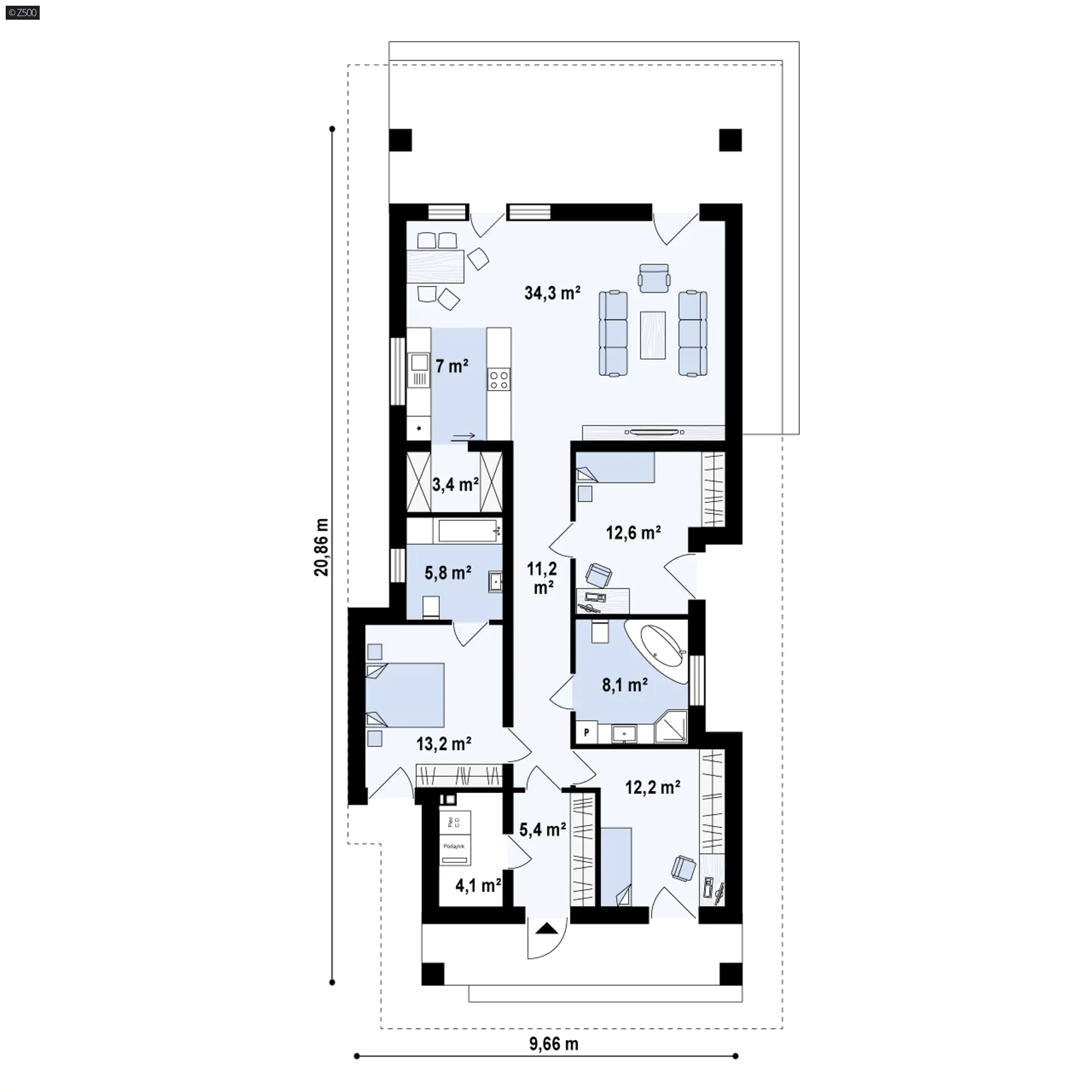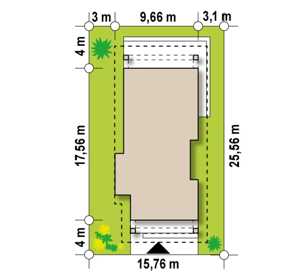 Budynek przeznaczono dla 3-4 osobowej rodziny posiadającej wąską działkę, która pragnie wybudować na niej dom i zakosztować swobody mieszkania w budynku wolnostojącym.