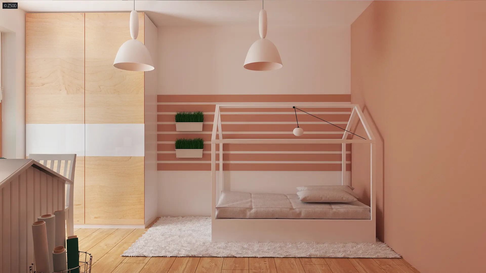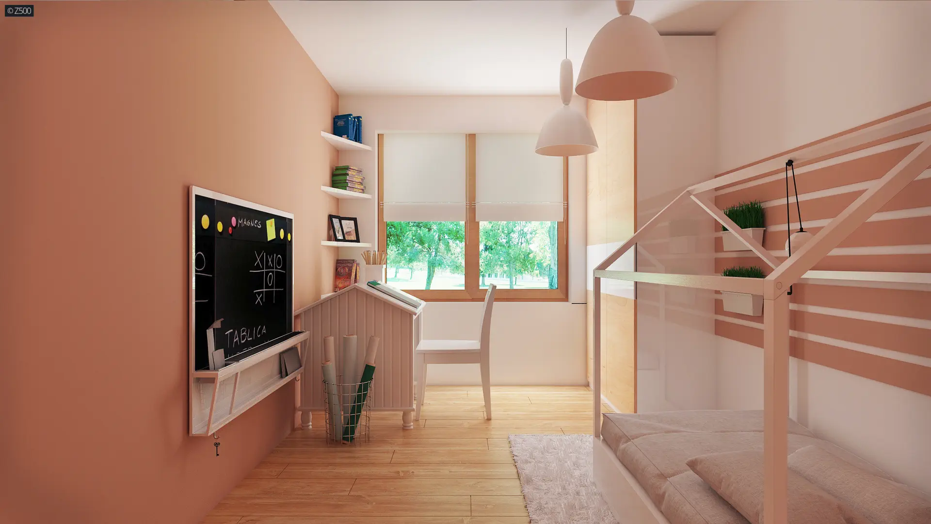 Wnętrza podzielono na część dzienną i nocną domu.