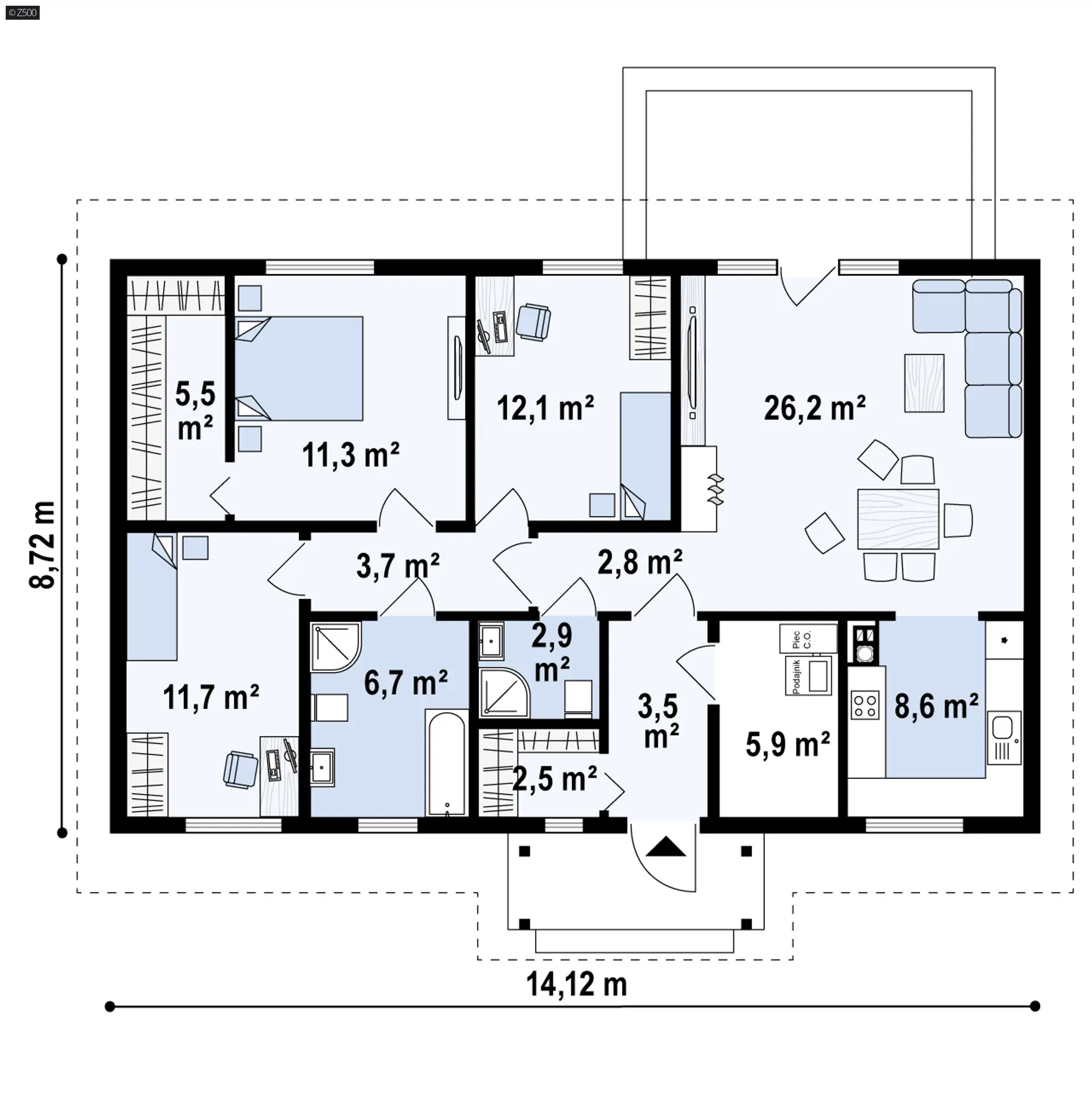 Projekt dedykowany jest dla rodziny z dwojgiem dzieci.Projekt dostępny jest także w wersji murowanej.