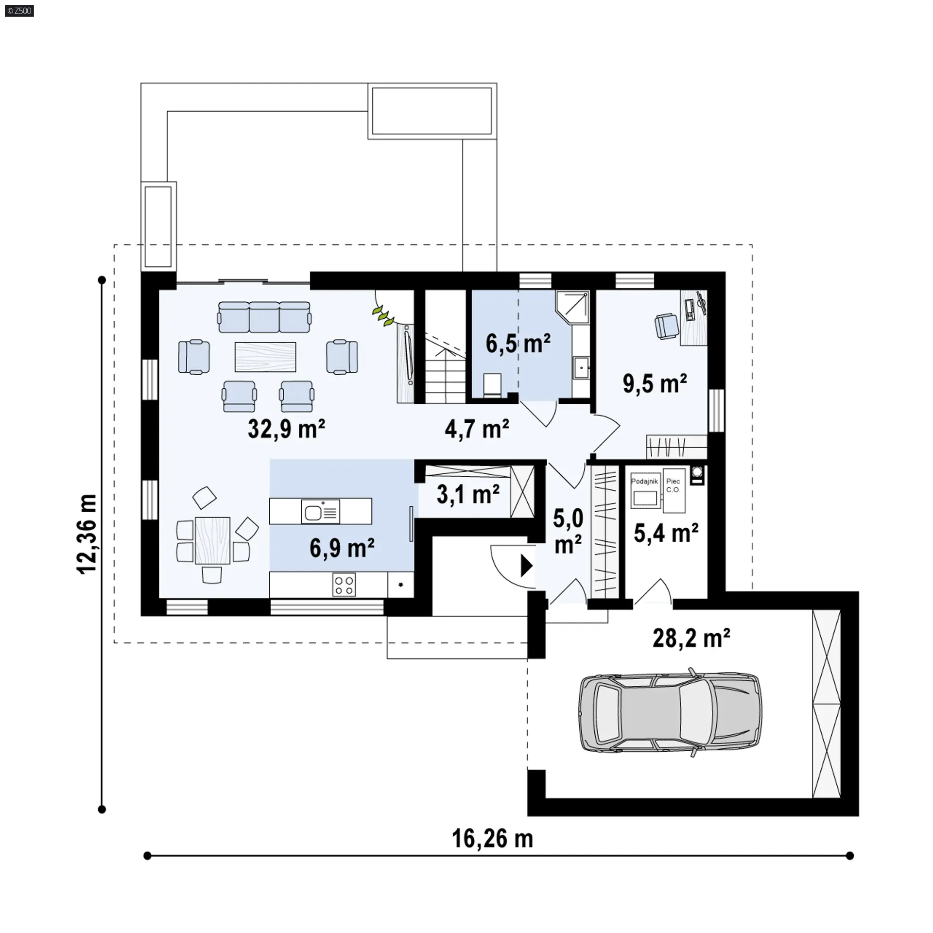 Z370 to klasyczny projekt domu jednorodzinnego z dachem dwuspadowym oraz jednostanowiskowym garażem i przylegającym pomieszczeniem gospodarczym. Pomieszczenie gospodarcze może służyć również jako schowek na narzędzia.