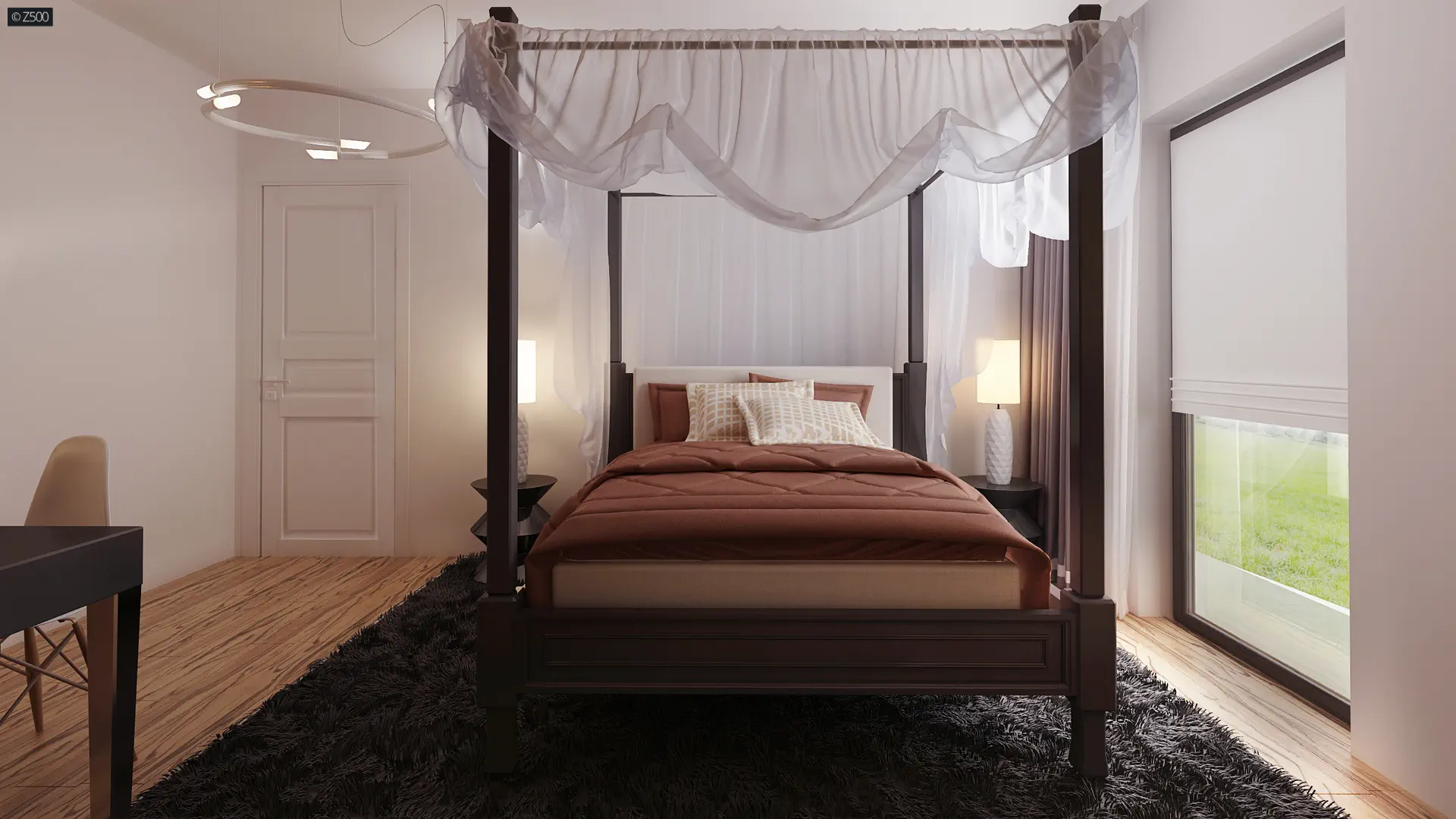 Nocną część domu stanowią trzy nieduże, ustawne pokoje o powierzchni przekraczającej 10 m2. Mogą zostać przeznaczone na pokoje dziecięce, gabinety pracy i sypialnię rodziców. Ta ostatnia posiada przylegającą garderobę, o której marzy każda Pani domu.