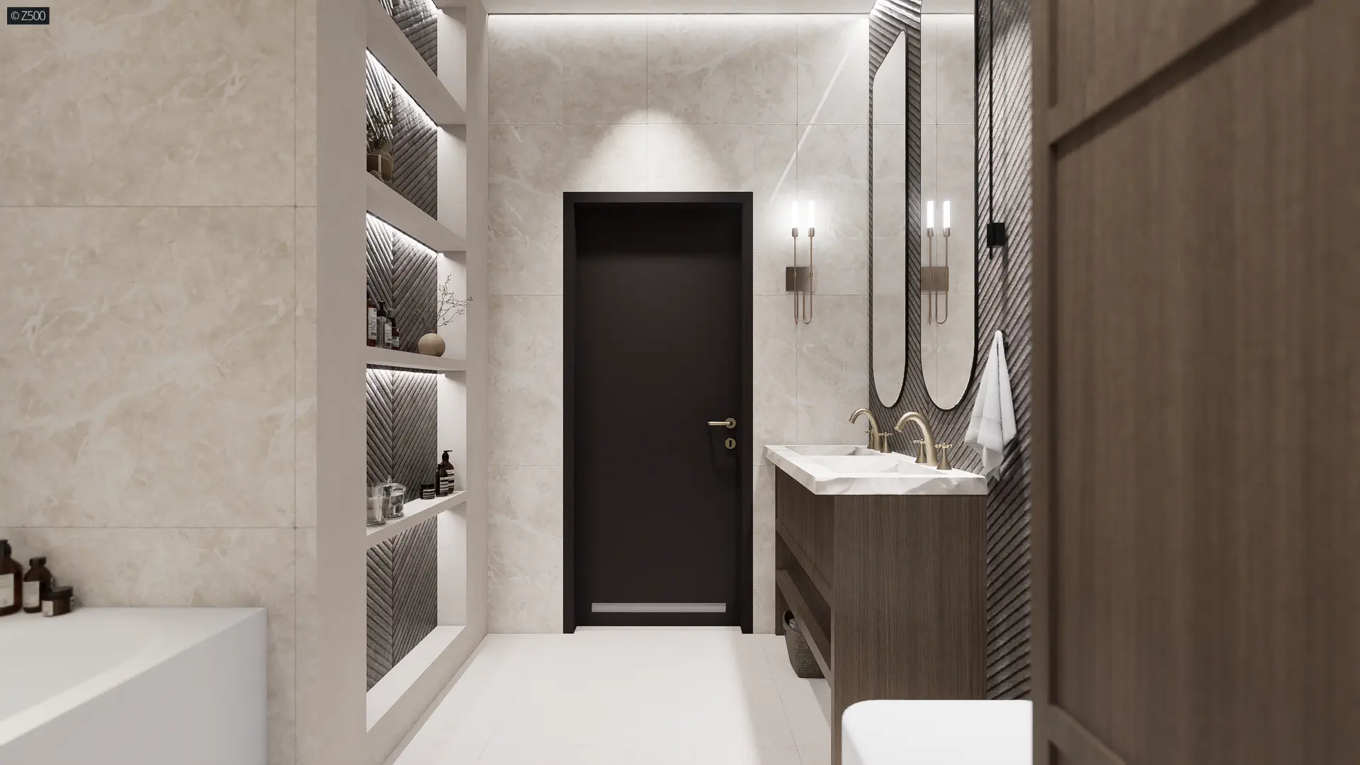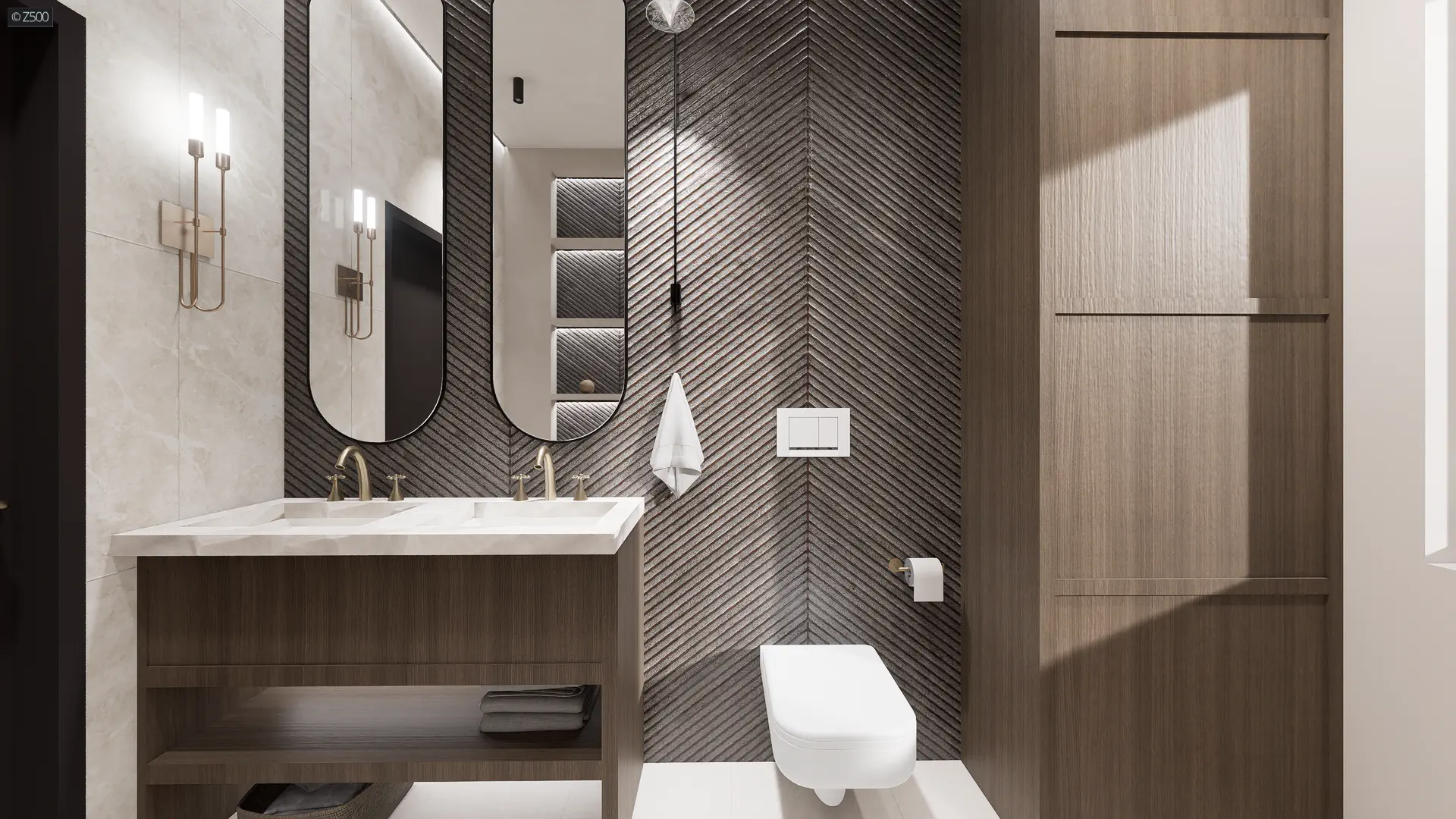 Prawa strona to nocna część domu. Wc umieszczono blisko części dziennej po to, aby odwiedzający nas goście nie mieli konieczności korzystania z naszej prywatnej łazienki.