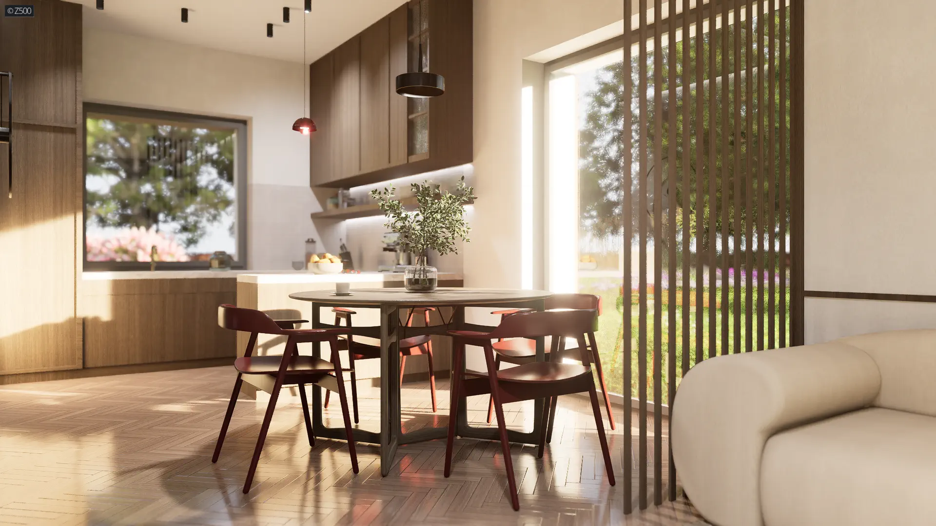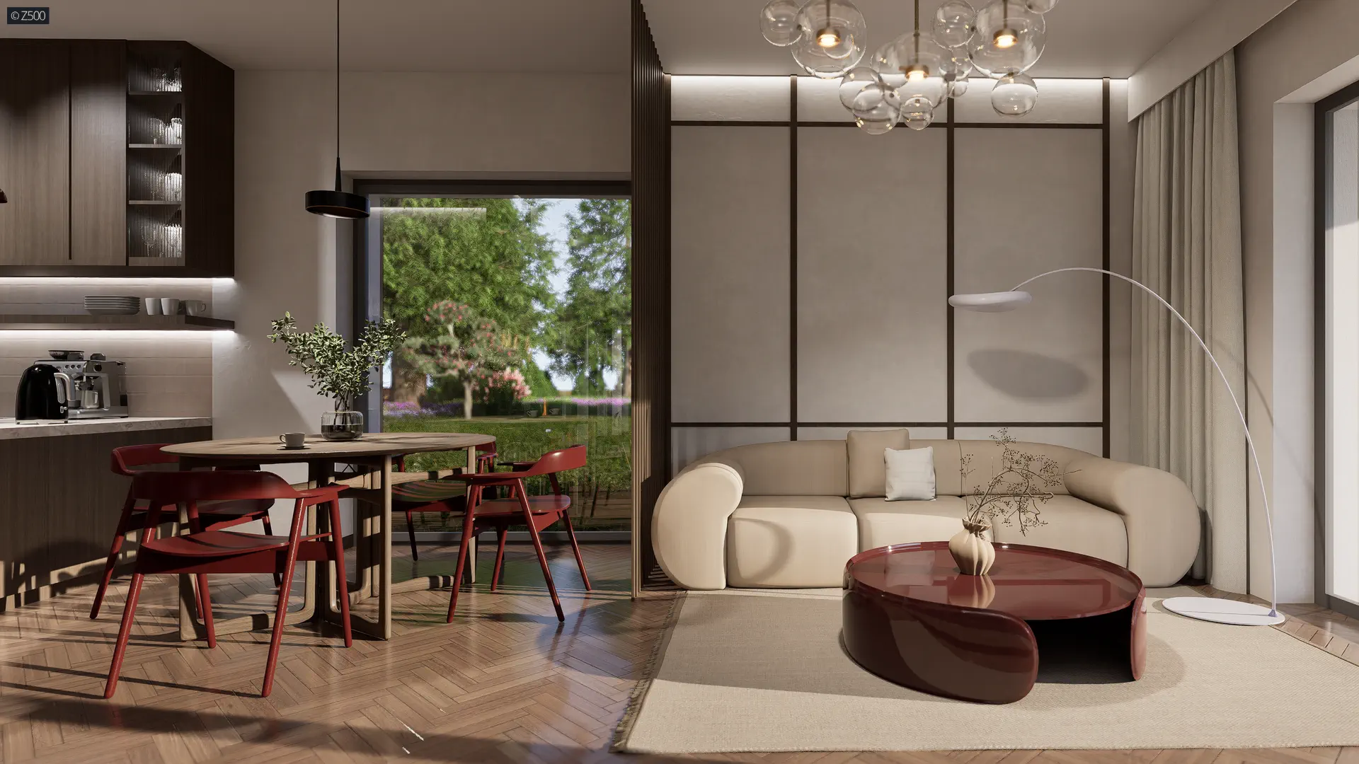 Wnętrza wyraźnie podzielono na część dzienną oraz nocną.
