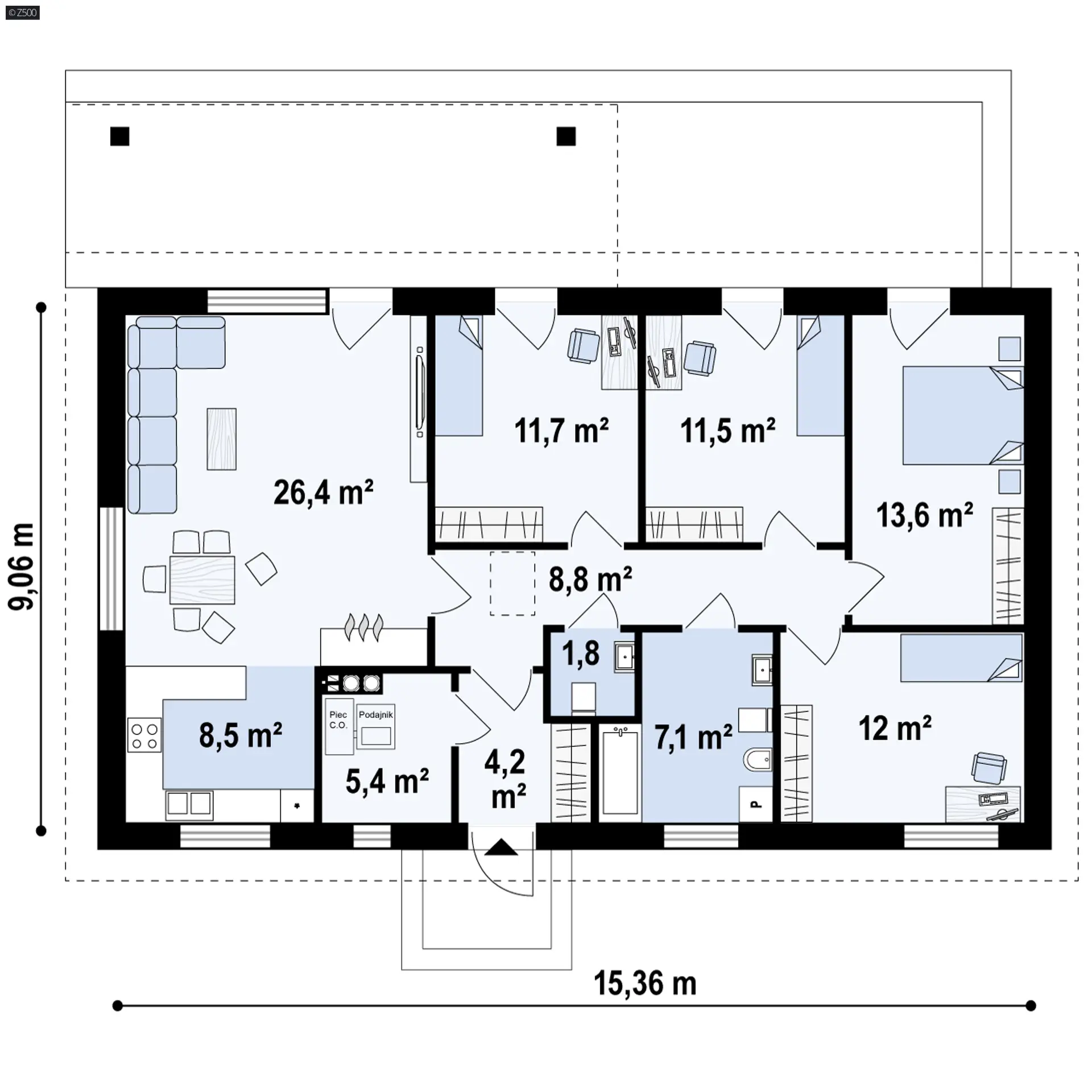 Projekt Z376 jest propozycją domu dla rodziny z dwojgiem lub trojgiem dzieci.