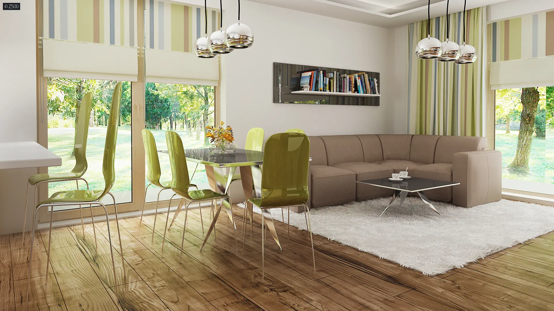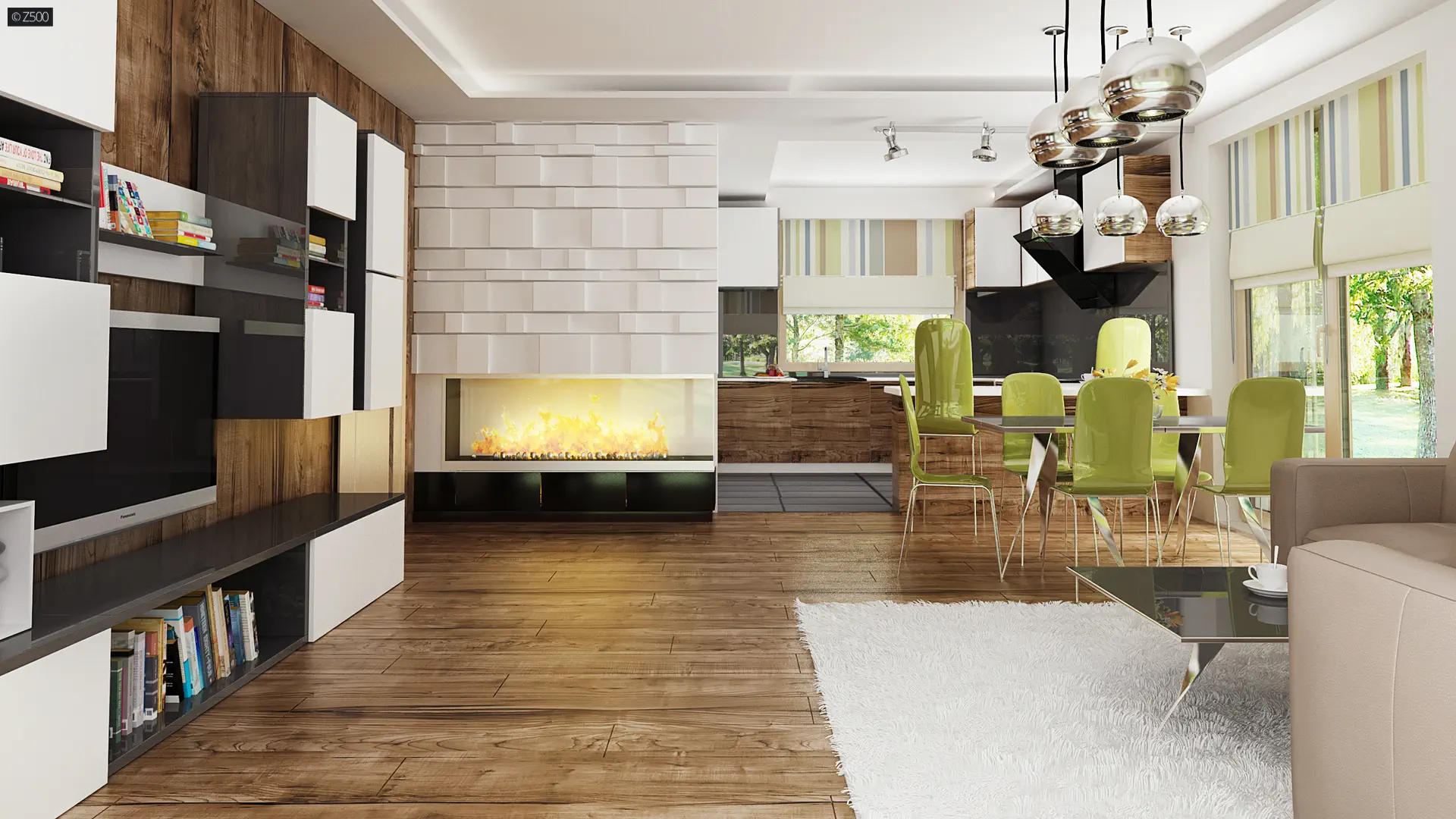 Wnętrza podzielono na część dzienną i nocną domu.