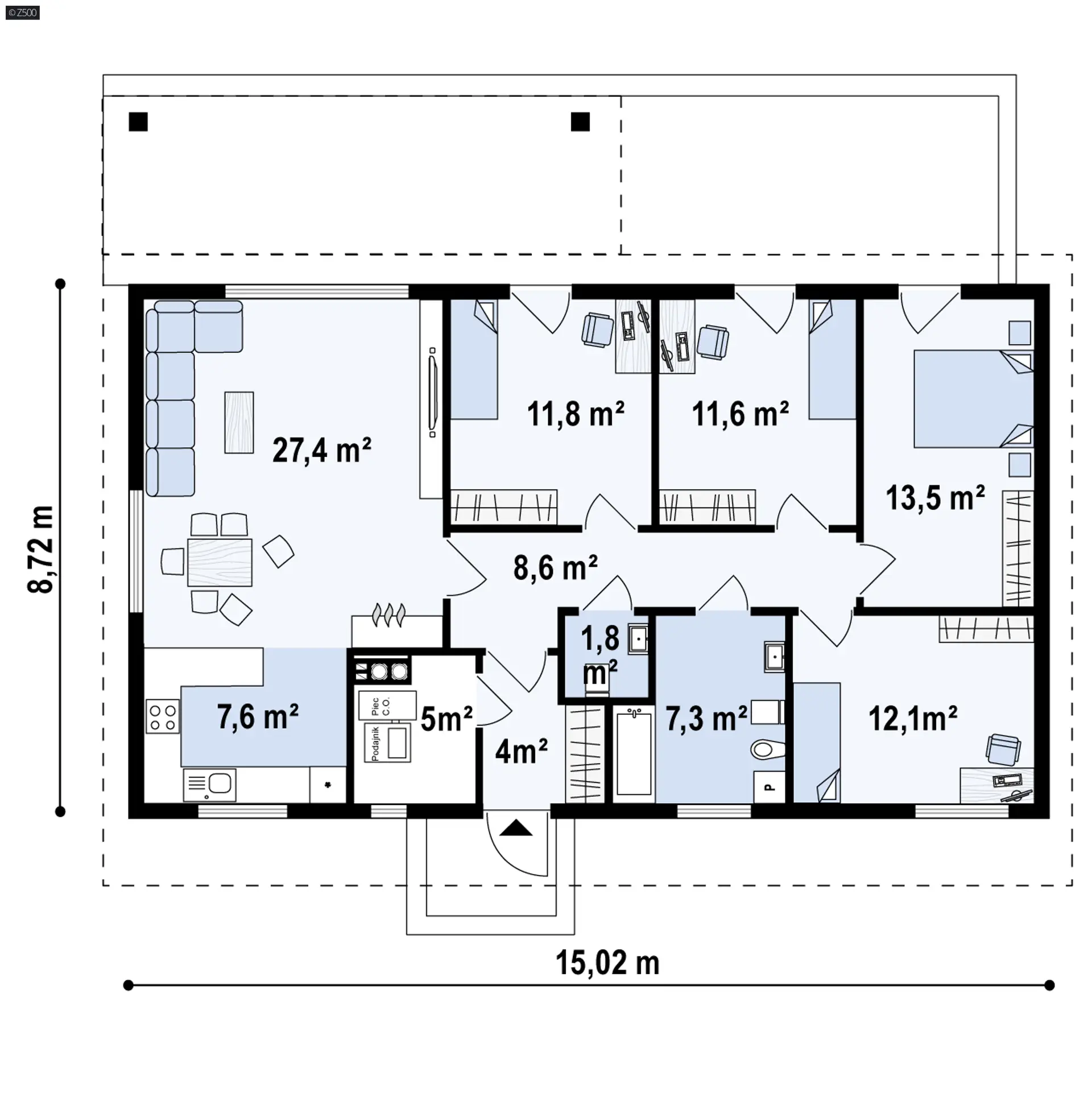 Projekt Z376 jest propozycją domu dla rodziny z dwojgiem lub trojgiem dzieci.