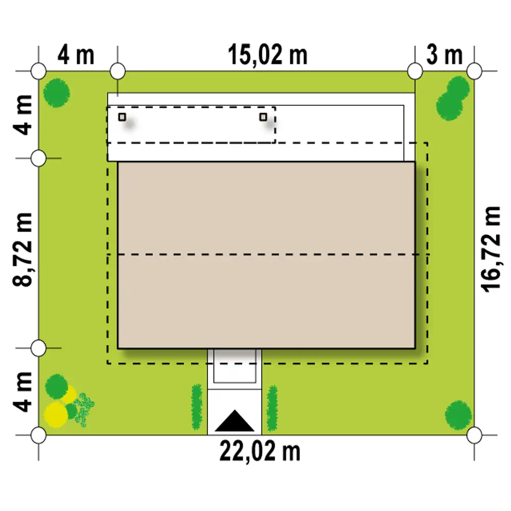 Projekt jest propozycją domu dla rodziny z dwojgiem lub trojgiem dzieci.
