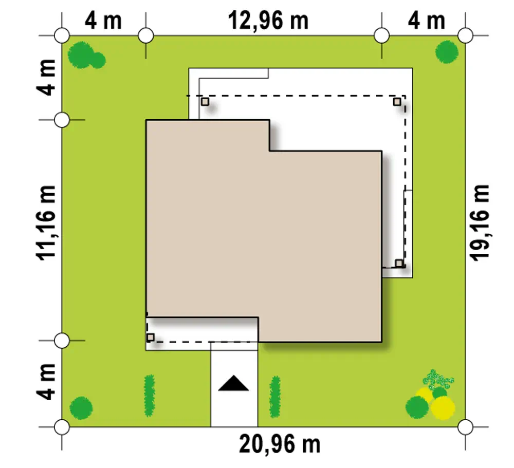 Z377 B to kompaktowy dom parterowy z dachem kopertowym dla 3-4 osobowej rodziny.