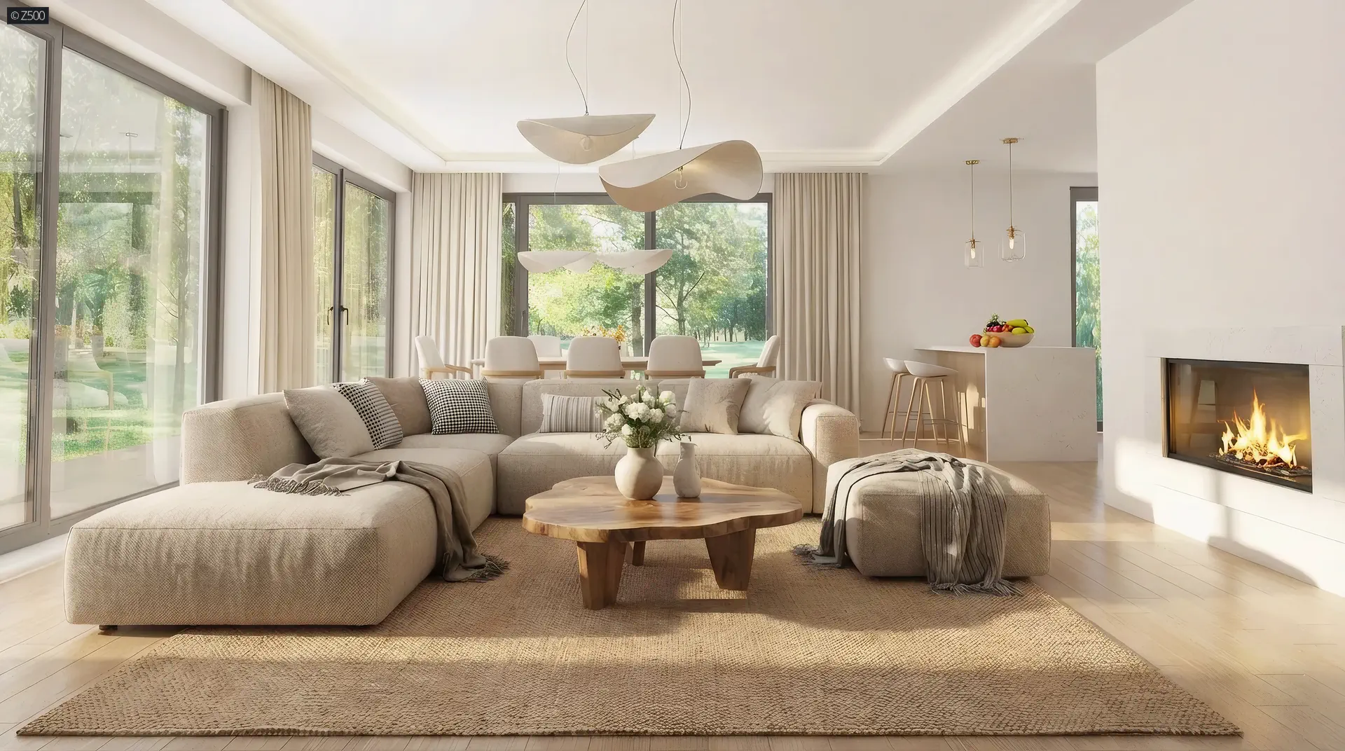 Wnętrza domu rozdzielono na część dzienną oraz część nocną. W przestronnym salonie połączonym z wytworną jadalnią zaplanowano kominek, aby w Państwa domu nigdy nie zabrakło ciepła domowego ogniska. Aneks kuchenny wyposażono w dużą ilość blatów (wyspę kuchenną), które doceni każda Pani domu. Rozległy taras okalający całą strefę dzienną wyposażono w duże przeszklenia aby maksymalnie rozświetlić wnętrza. Bliskość WC pozwoli na pozostawanie gości w dziennej części domu.