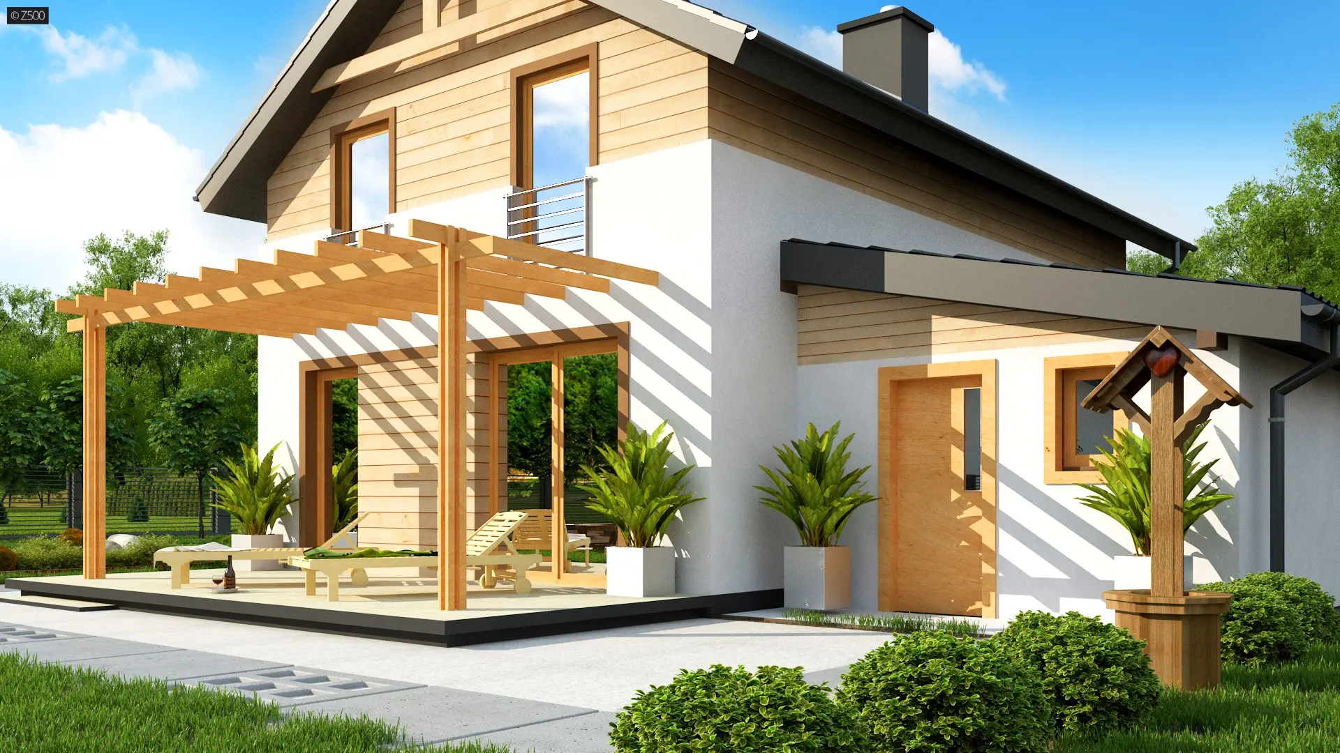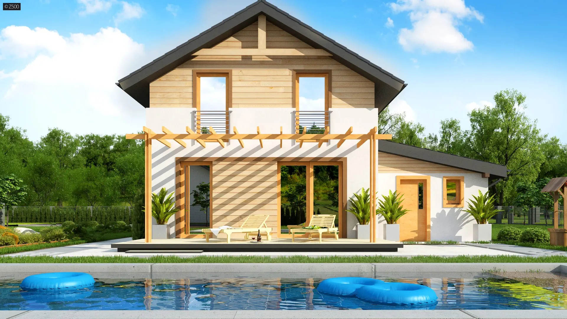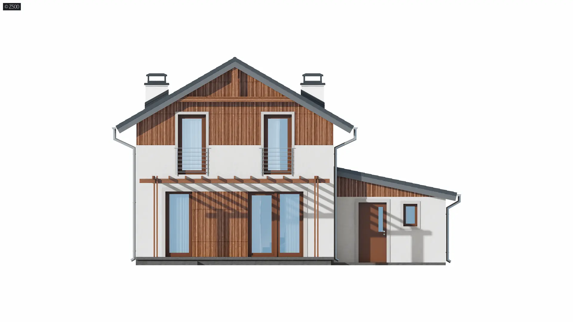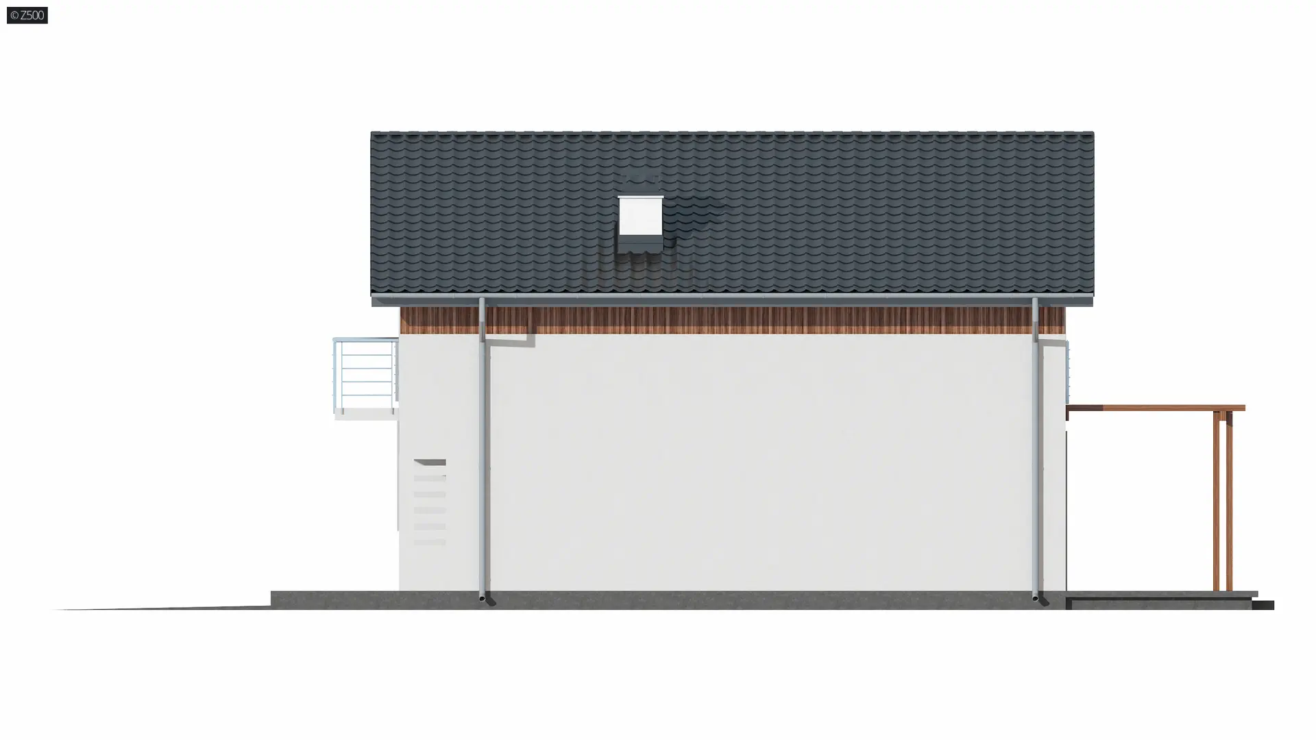 Projekt domu Z38 D GL to praktyczny dom z dachem dwuspadowym, 4 pokojami, balkonem nad wejściem i garażem. W układzie przewidziano 3 sypialnie, 2 łazienki, salon 18,45 m², garaż jednostanowiskowy. Minimalna działka: 16,92 m × 18,22 m.