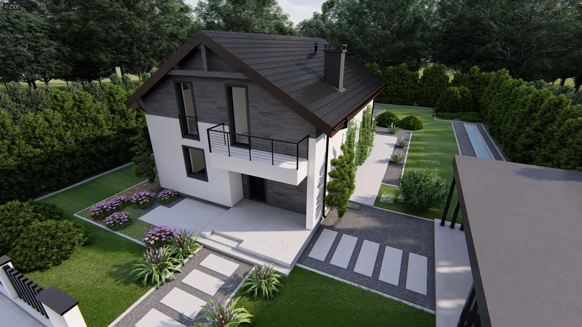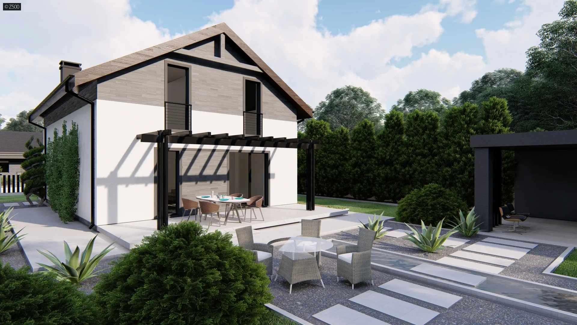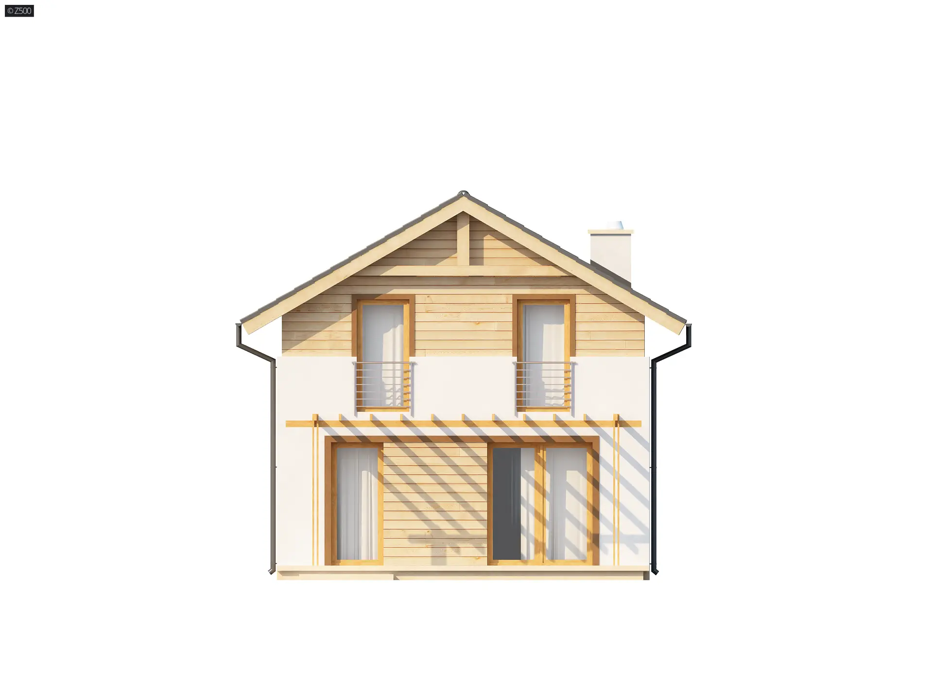 Funkcjonalny dom z dachem dwuspadowym i czteroma pokojami, dom na wąską działkę