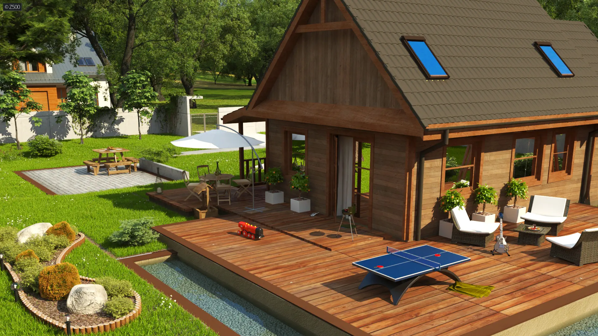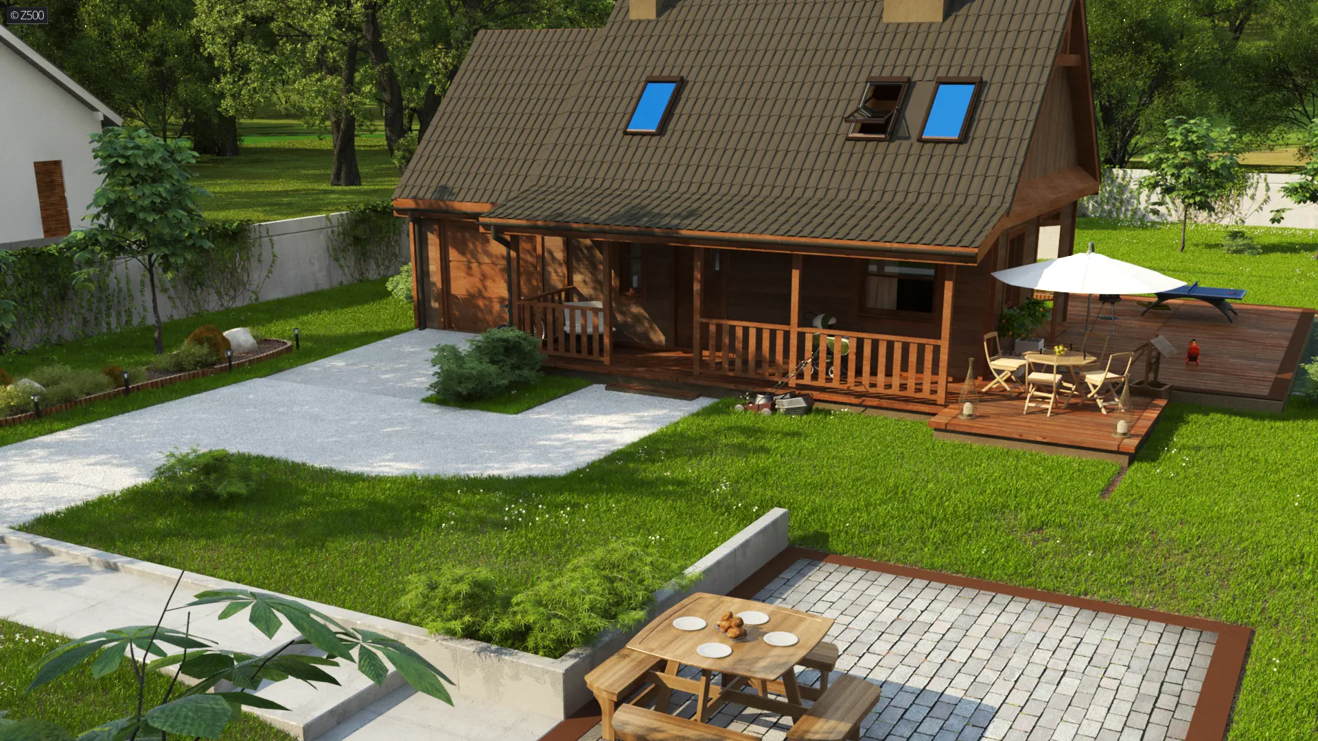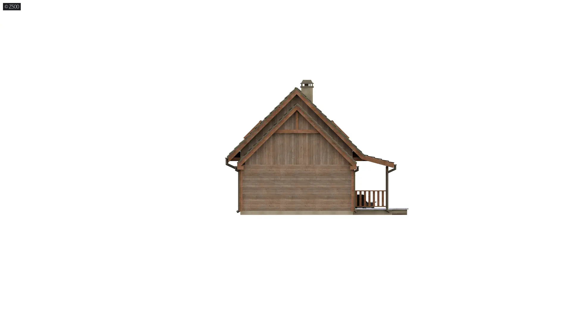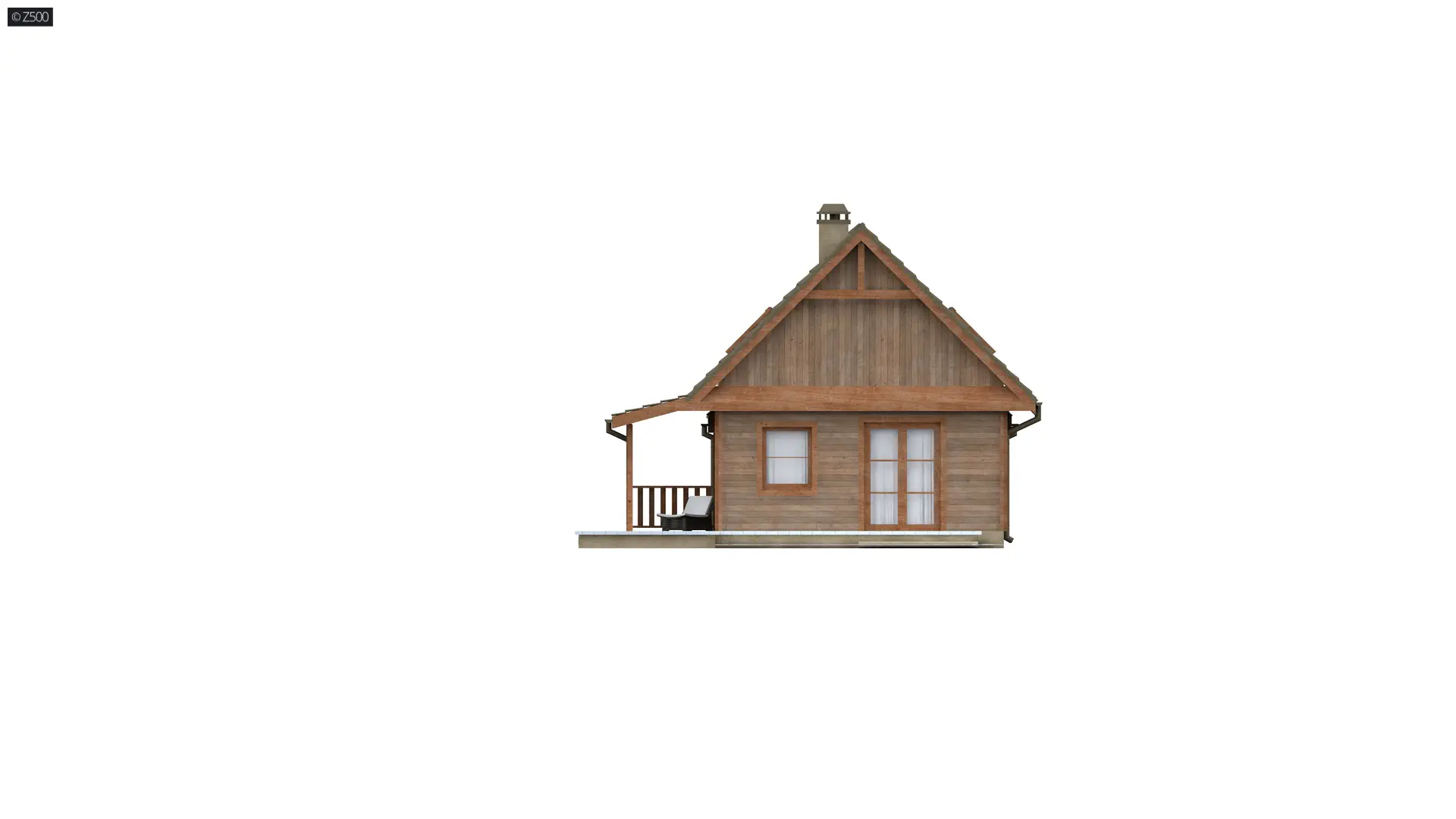 Od frontu, bryłę budynku urozmaica zadaszona weranda.