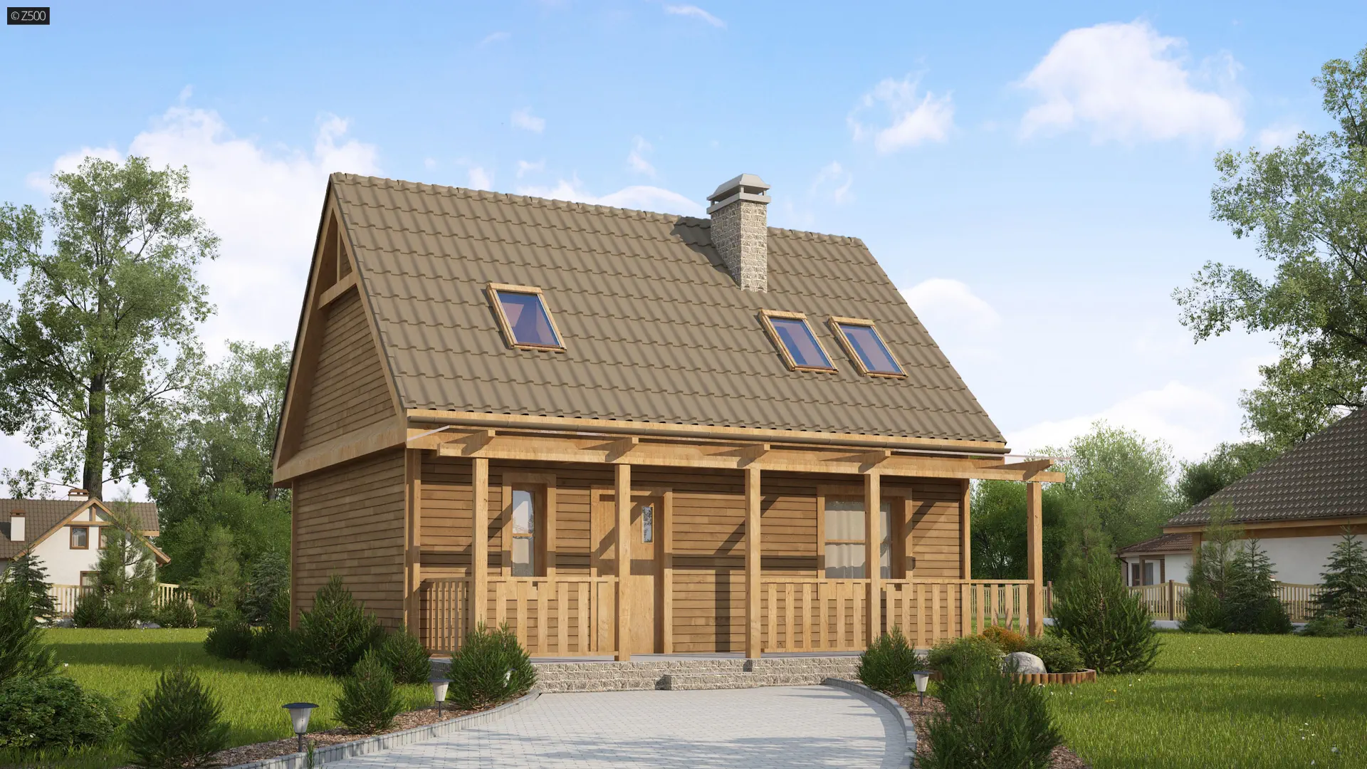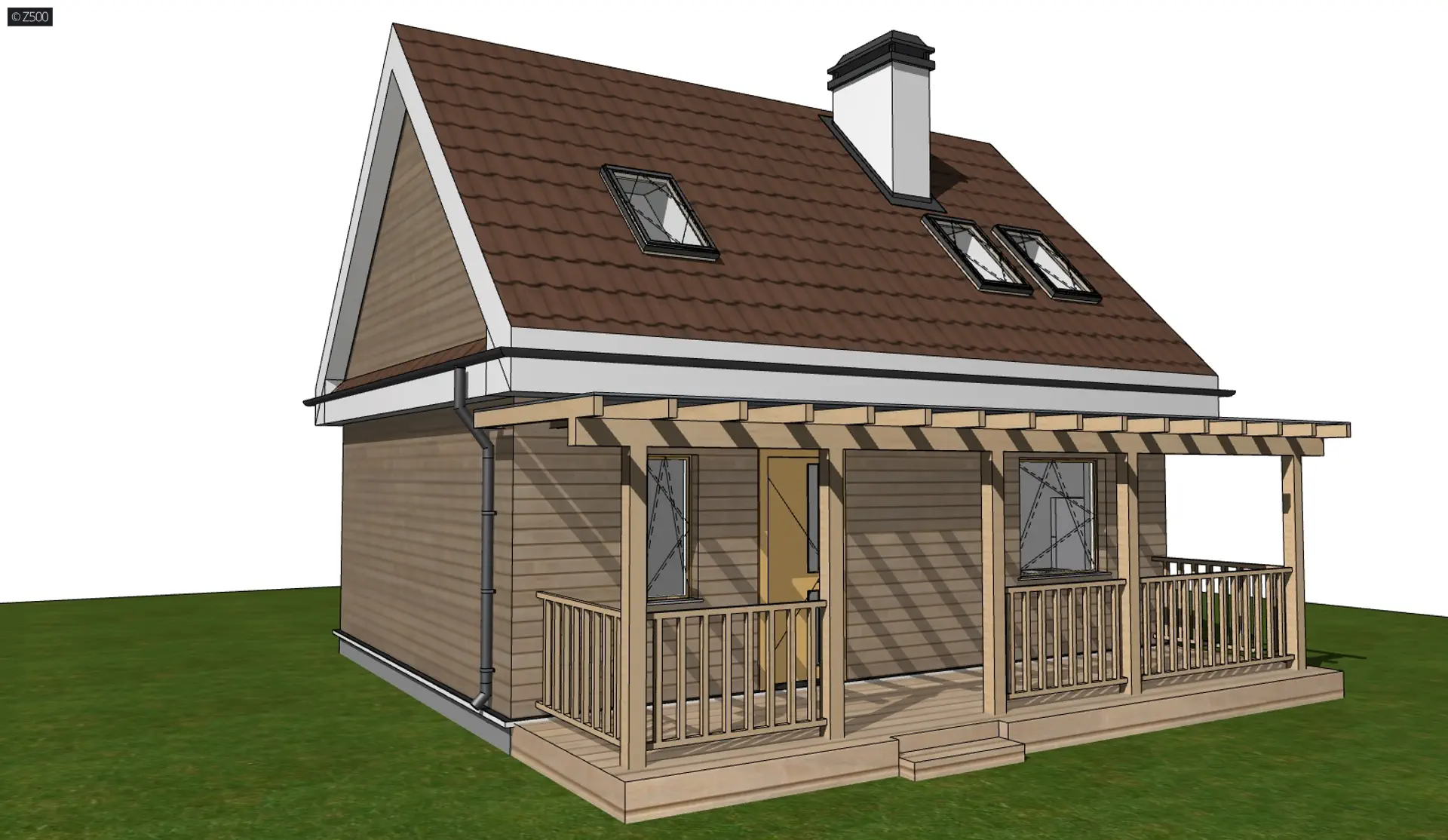 Funkcjonalny dom z poddaszem, 3 pokojami, tarasem od frontu, dachem dwuspadowym