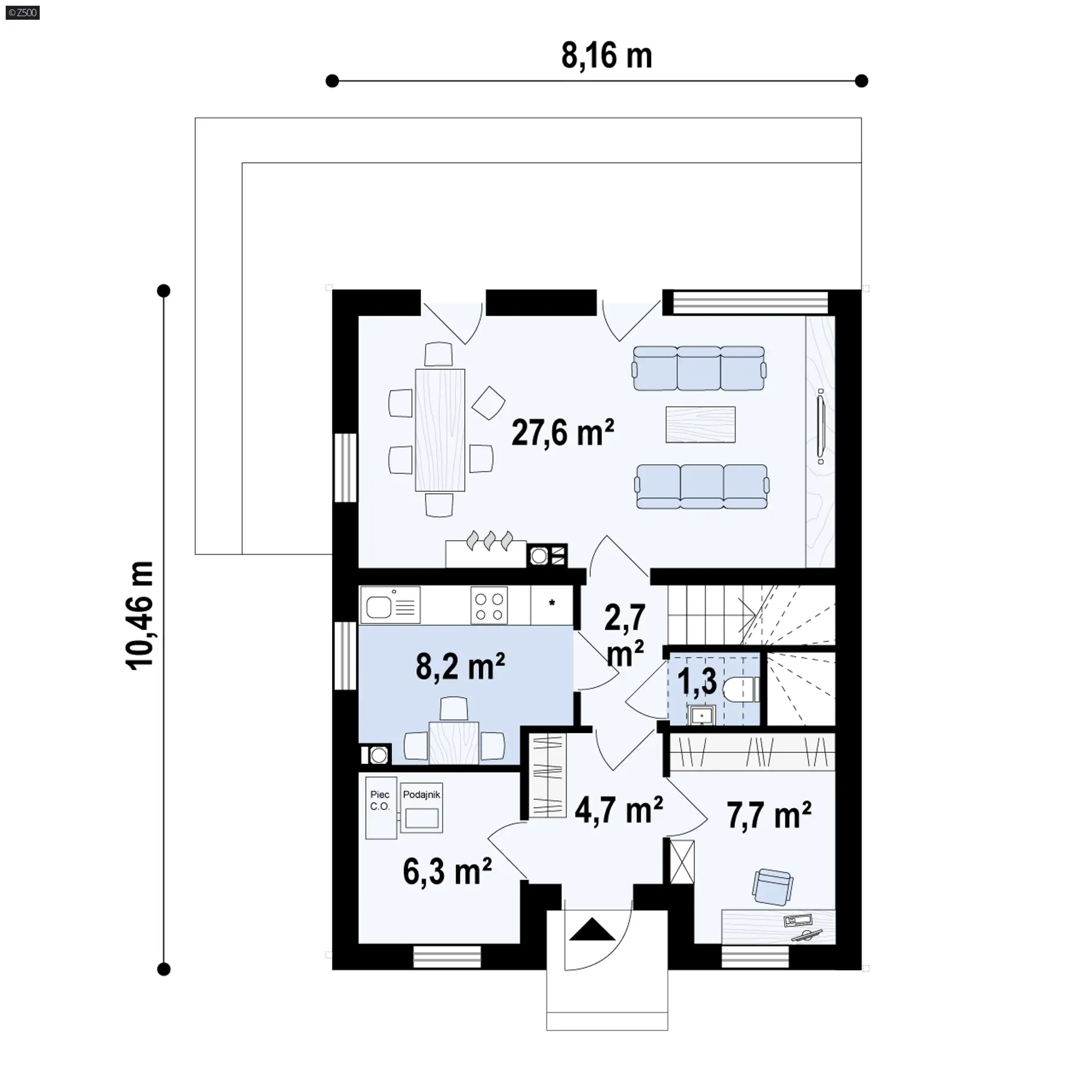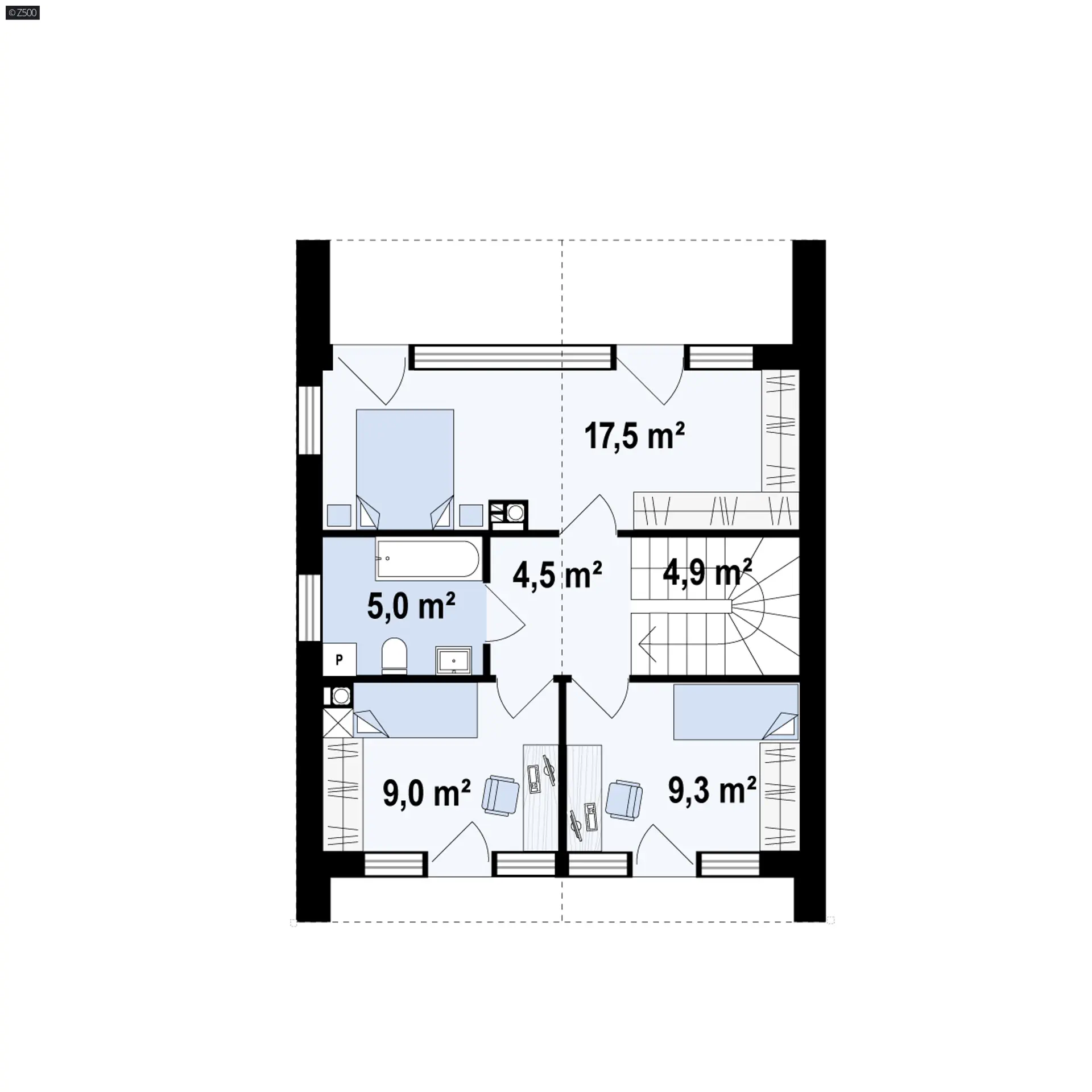 Projekt Z396 dedykowany jest dla rodziny z dwojgiem dzieci, która szanuje swoje przyzwyczajenia. Na powierzchni 100+ m.2 nie posiada skosów, co dodaje wygody w użytkowaniu. Łatwiej również umeblować takie pokoje. Jego unikalność polega na tym, że jest to dom z pełnym piętrem.