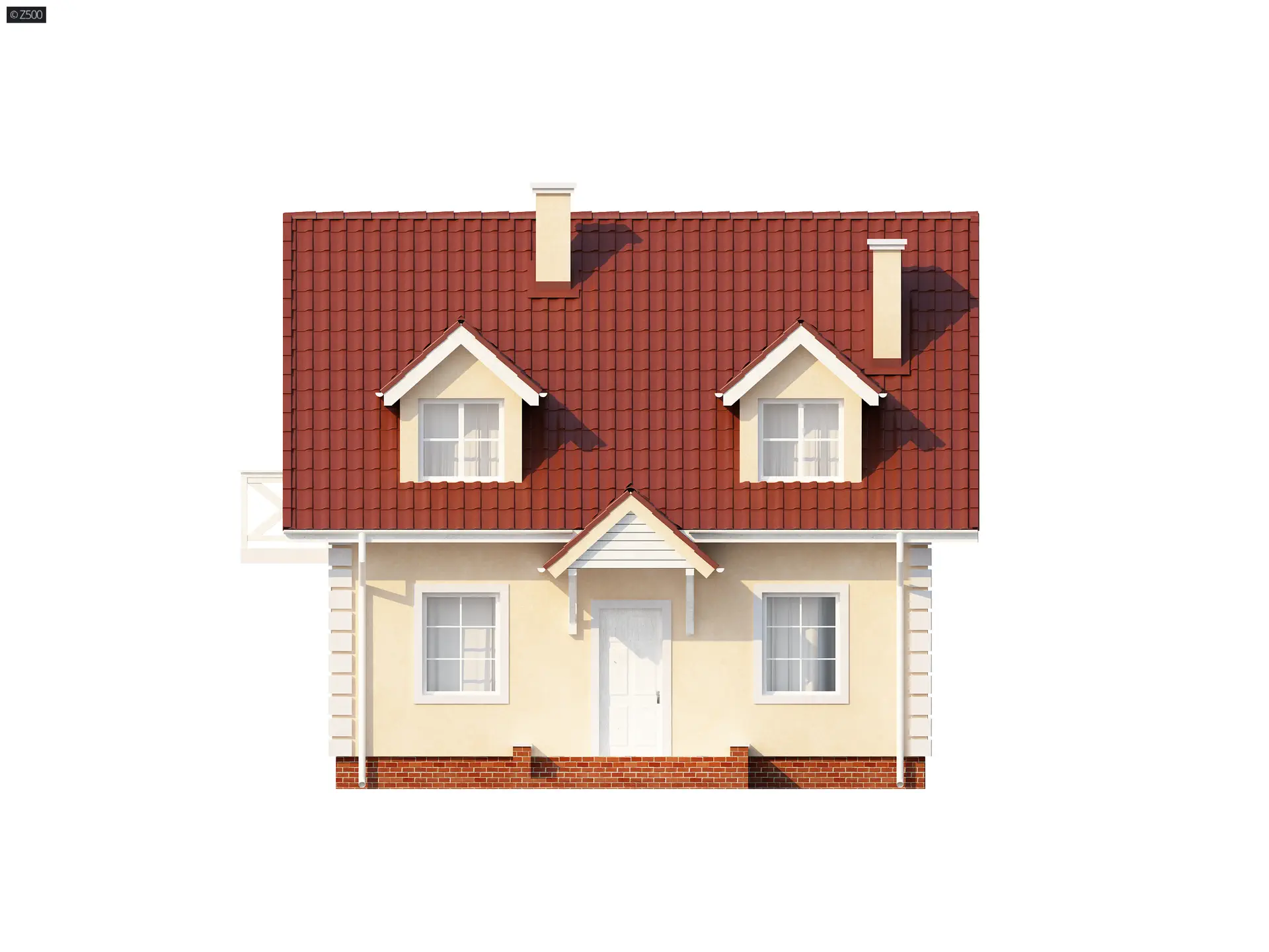 Dom Z4 D na pewno spodoba się tym którzy szukają budynku małego, prostego, funkcjonalnego oraz taniego w budowie i eksploatacji. Prosta, zaplanowana na rzucie zbliżonym do kwadratu bryła budynku przekryta jest dwuspadowym dachem. Elewację frontową urozmaicają dwie lukarny, a wejście do budynku podkreślono małym daszkiem.