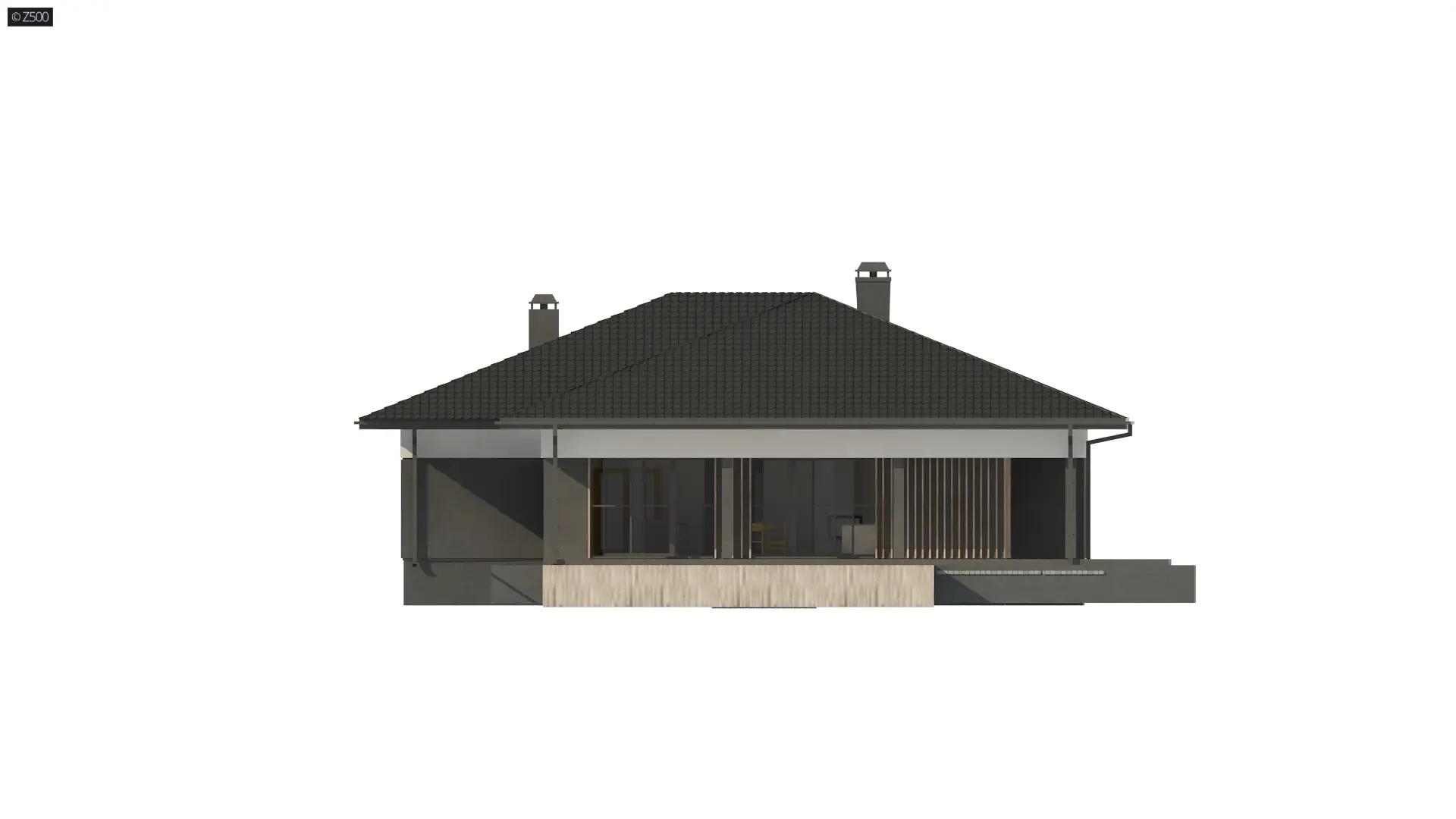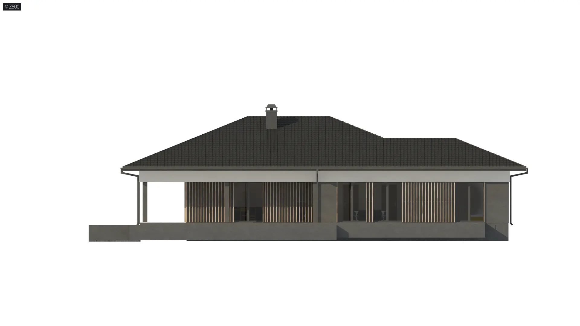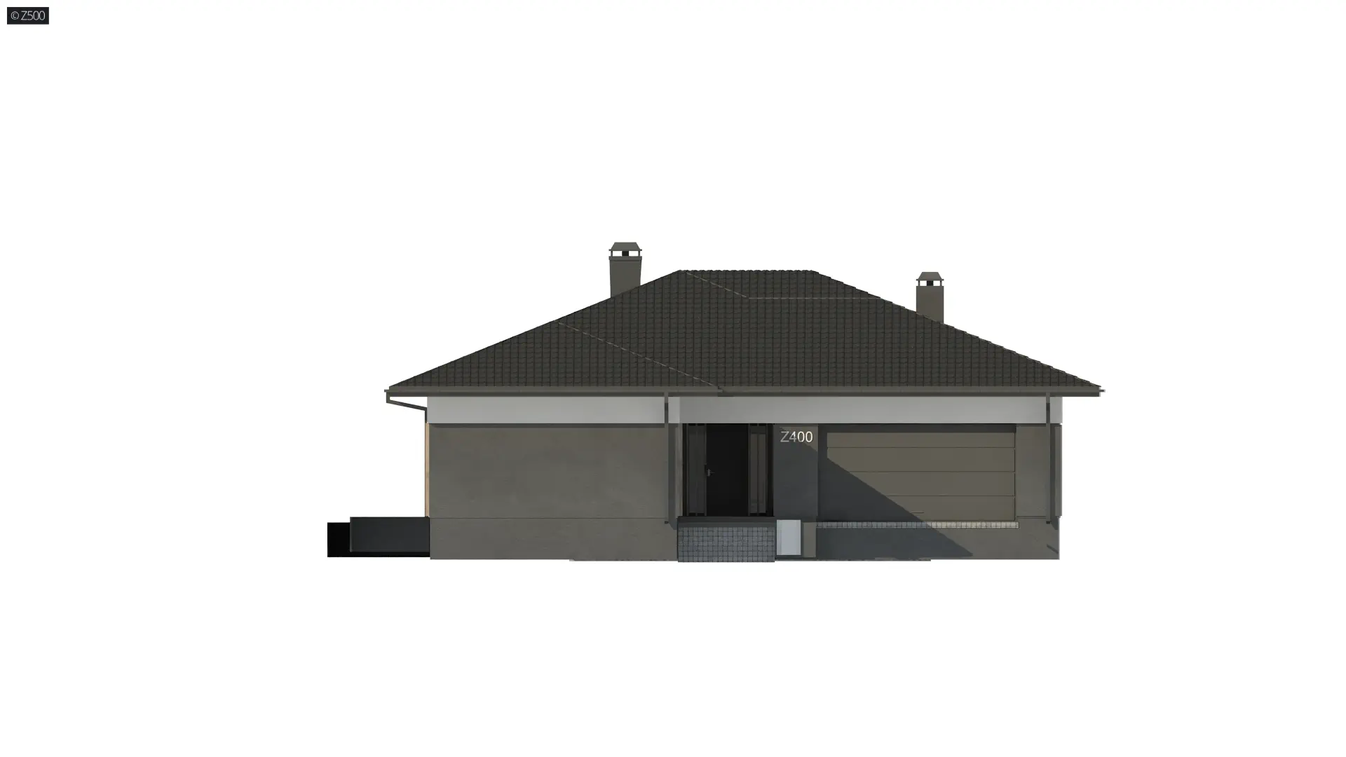 Z400 to współczesny dom parterowy z dwustanowiskowym garażem, którego struktura więźby dachowej nawiązuje do typowej polskiej zabudowy w postaci dachu wielospadowego, zaś duże przeszklenia świadczą o jego nowoczesności.