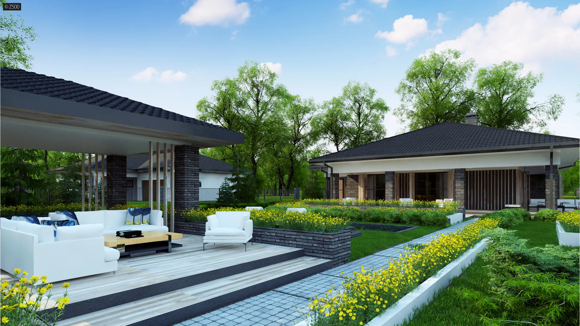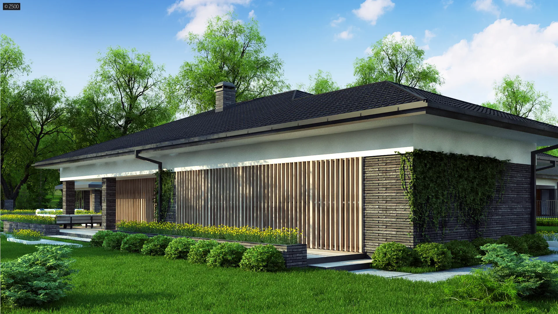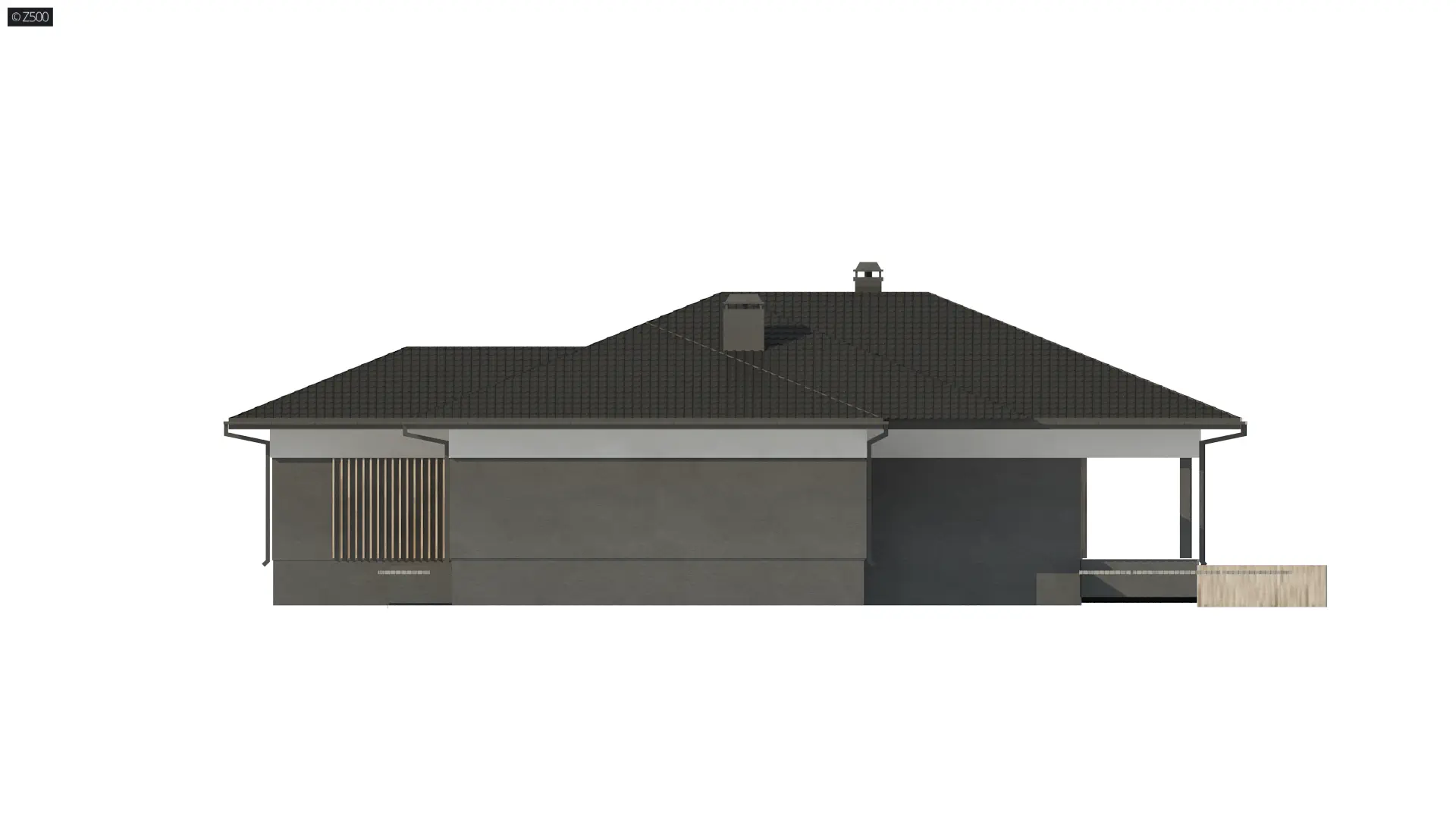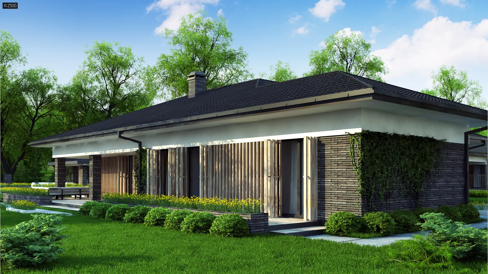 Z400 to współczesny dom parterowy z dwustanowiskowym garażem, którego struktura więźby dachowej nawiązuje do typowej polskiej zabudowy w postaci dachu wielospadowego, zaś duże przeszklenia świadczą o jego nowoczesności.