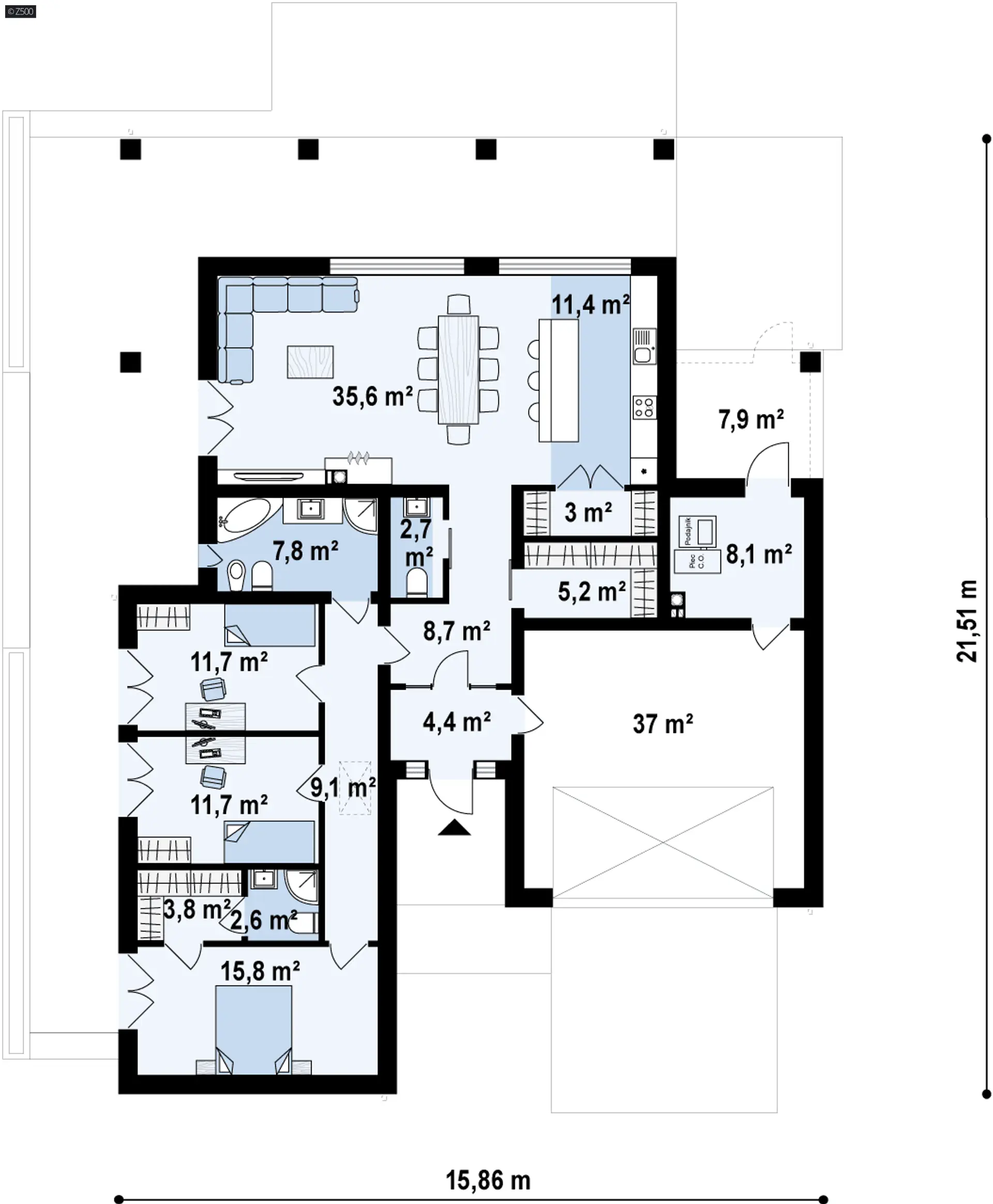 Parterowy dom jednorodzinny z garażem dwustanowiskowym