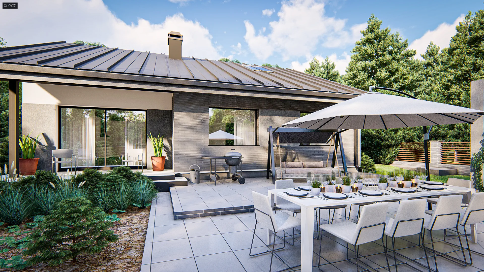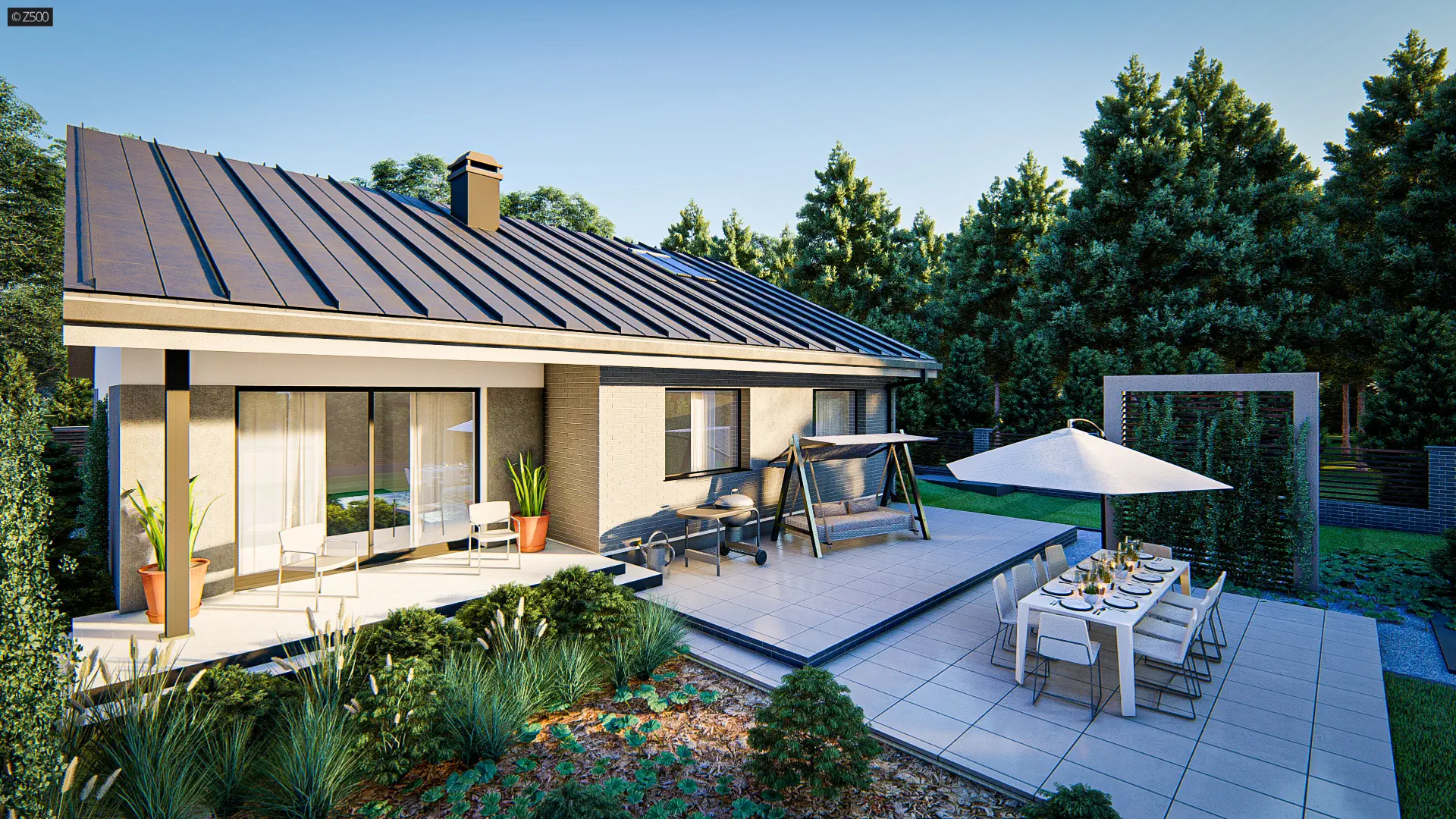 Z41 to dom, który łączy prostotę i funkcjonalność z eleganckim wyglądem, a jego parterowy układ sprawdzi się doskonale zarówno dla młodych rodzin, jak i seniorów szukających domu „na teraz i na przyszłość".