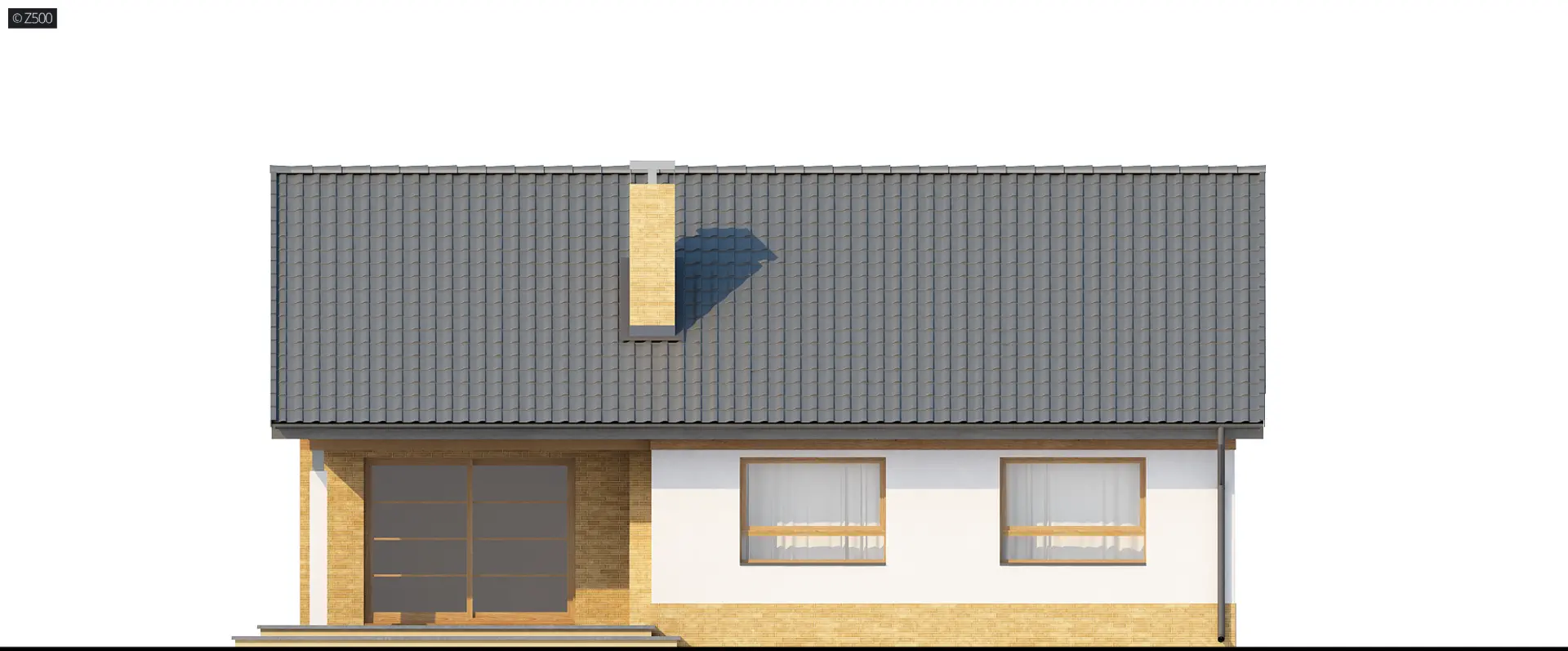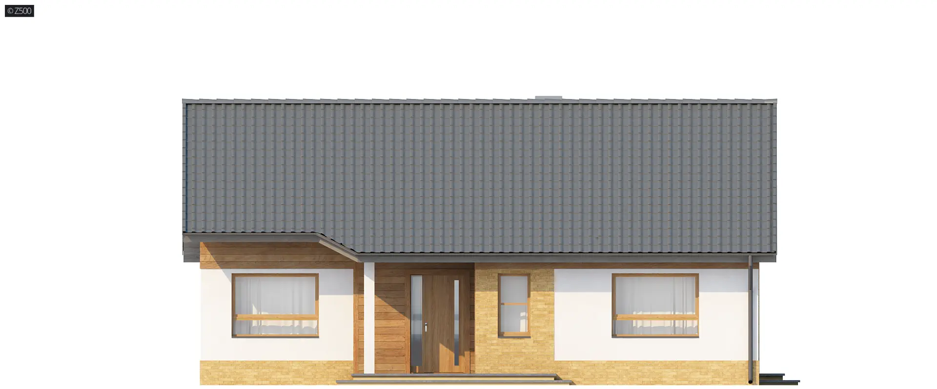 Z41 D to projekt domu parterowego. Hol wyznacza dwie strefy tego domu. Jedna reprezentacyjna, na którą składa się kuchnia i salon z jadalnią. Dodatkowo przez szklane duże okna salonu wpada światło, co sprawia, że pomieszczenie jest przytulne i jasne. Przy kuchni, która od salonu odgrodzona jest jedynie blatem-stołem zaprojektowana została spiżarnia. Druga strefa – prywatna – rozciąga się wzdłuż krótszej części holu. Zaprojektowano tu trzy sypialnie oraz łazienkę z wanną.