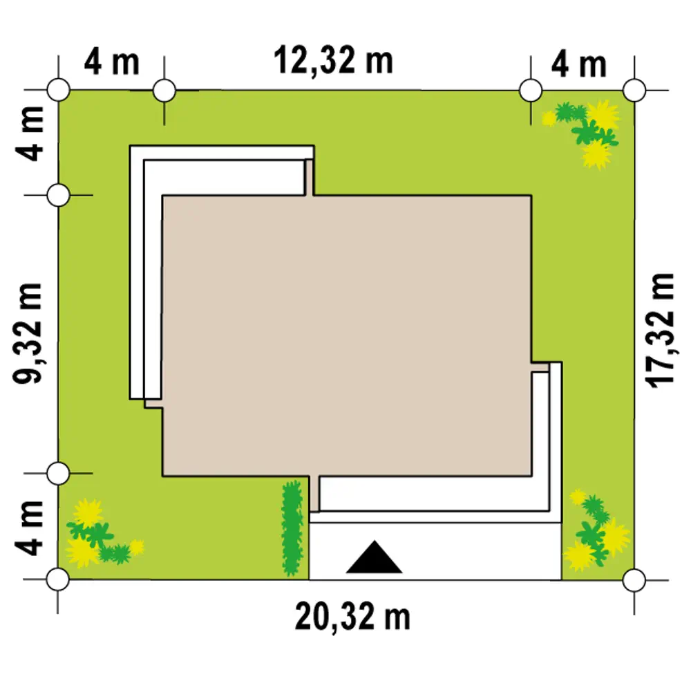 Centralnie umieszczone wejście dzieli nam dom na część dzienną po stronie lewej oraz prywatną po prawej.