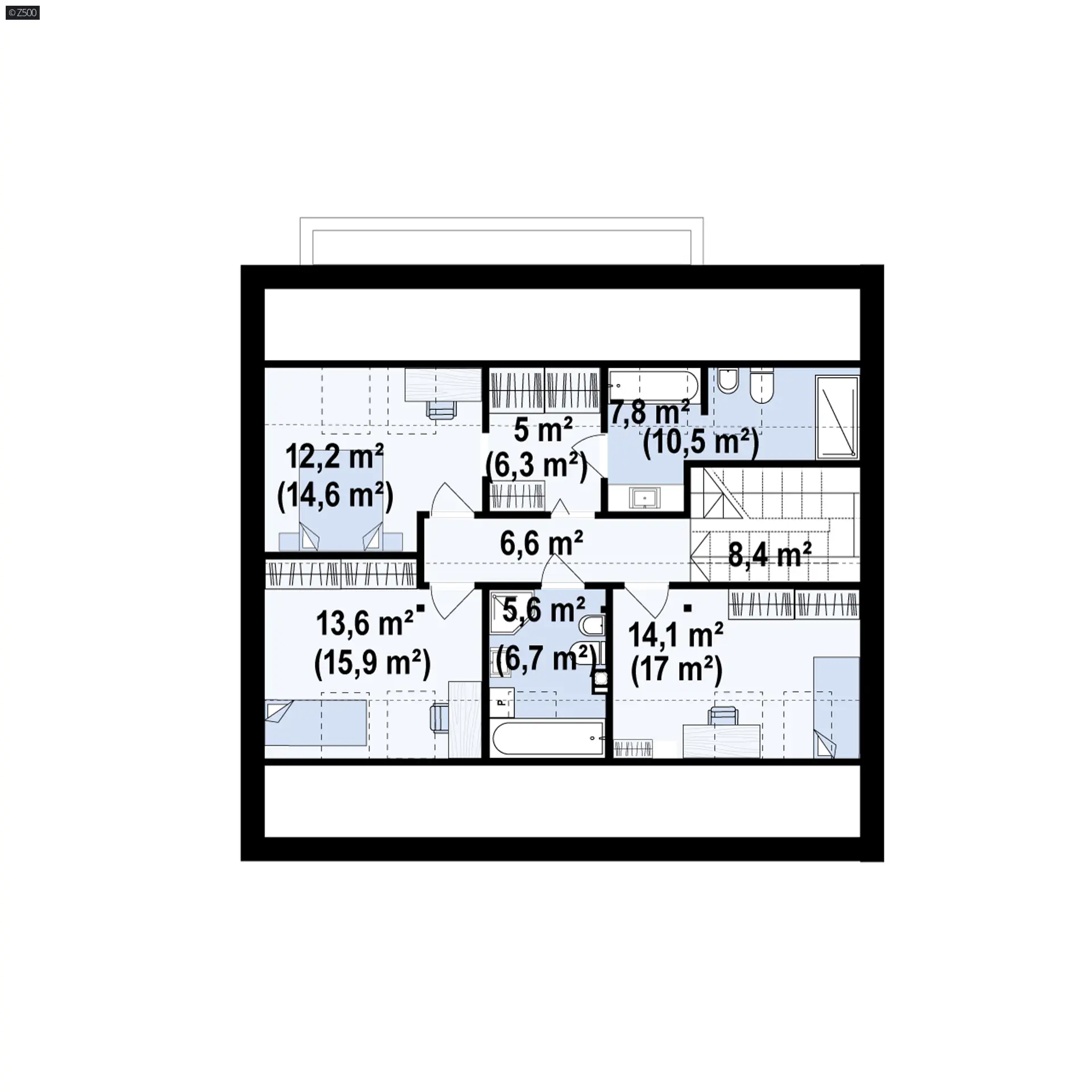 Poddasze to prywatna część nocna z łazienką w której znajdzie się miejsce na pralkę, wannę a nawet prysznic oraz trzy przestronne sypialnie z czego jedna posiada własną garderobę i łazienkę.