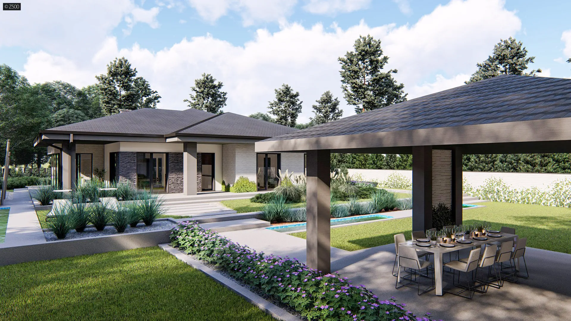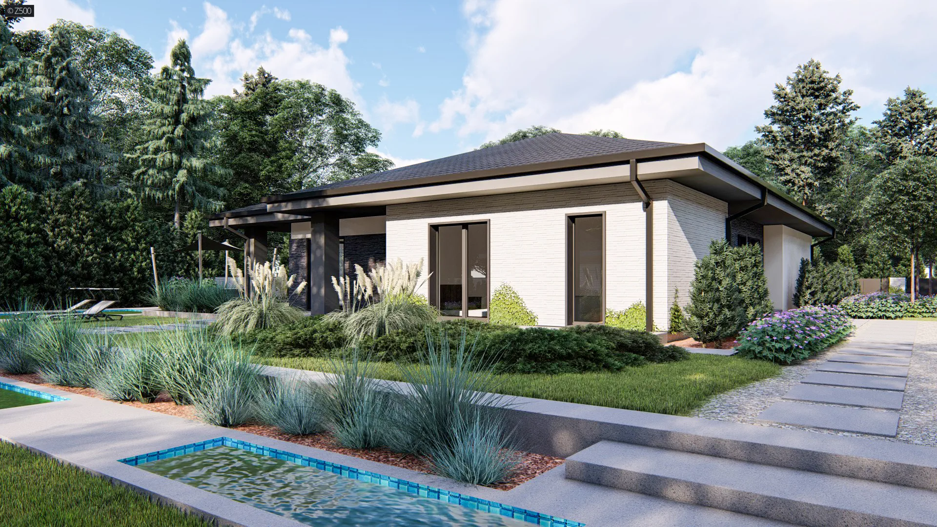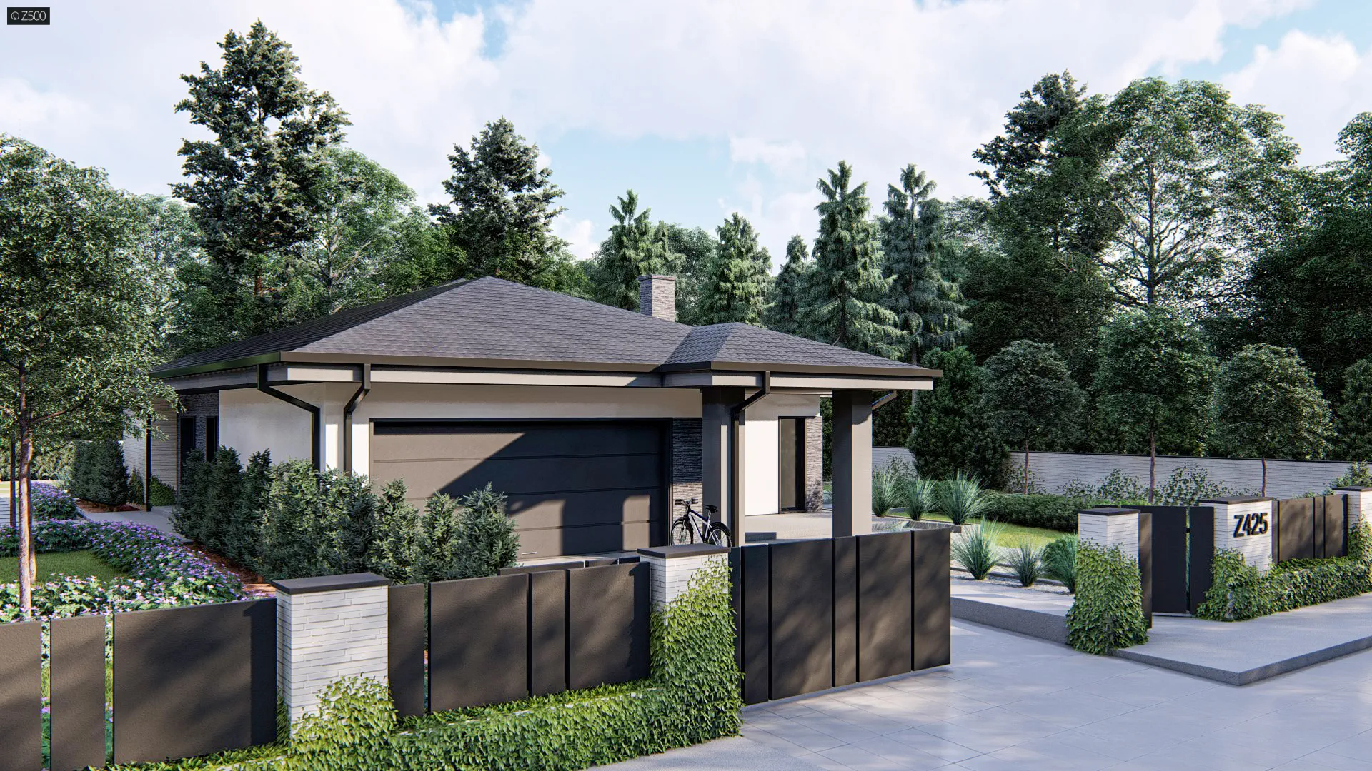 Dom parterowy, z garażem 2stanowiskowym kuchnia od ogrodu i bocznym salonem.