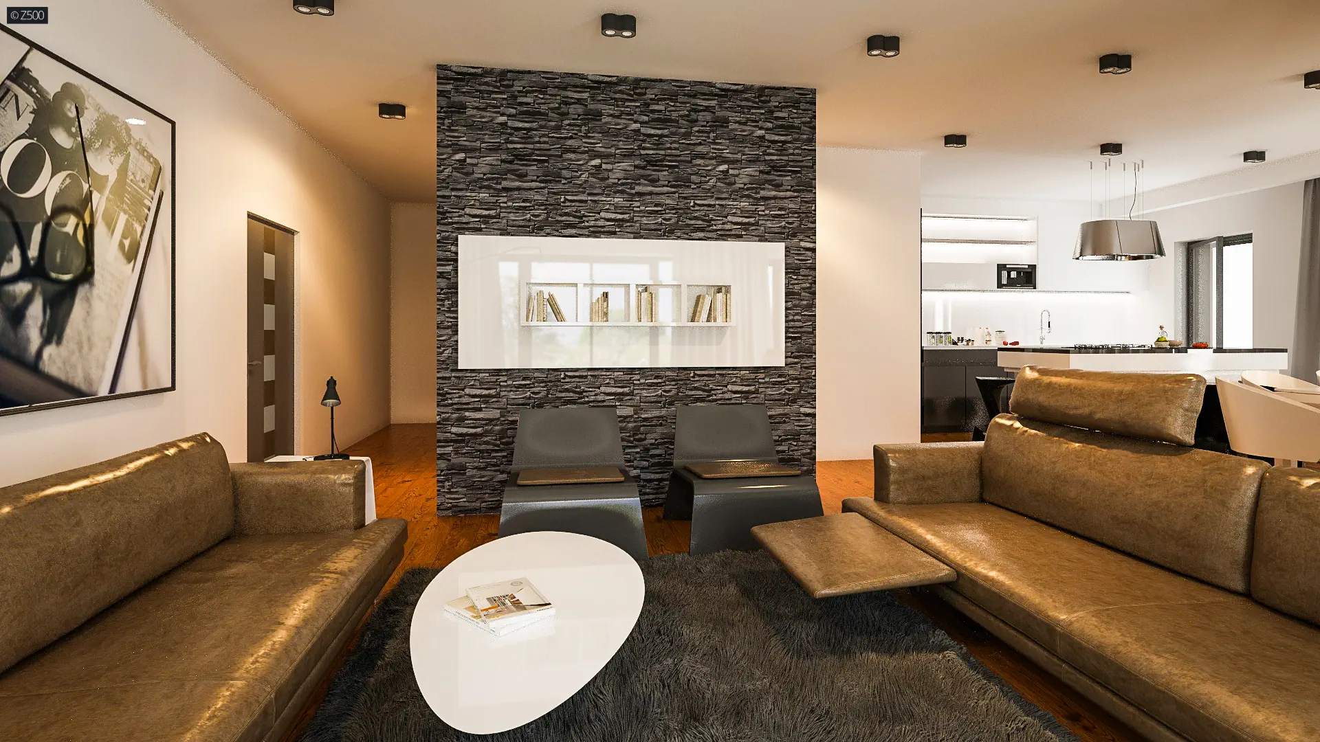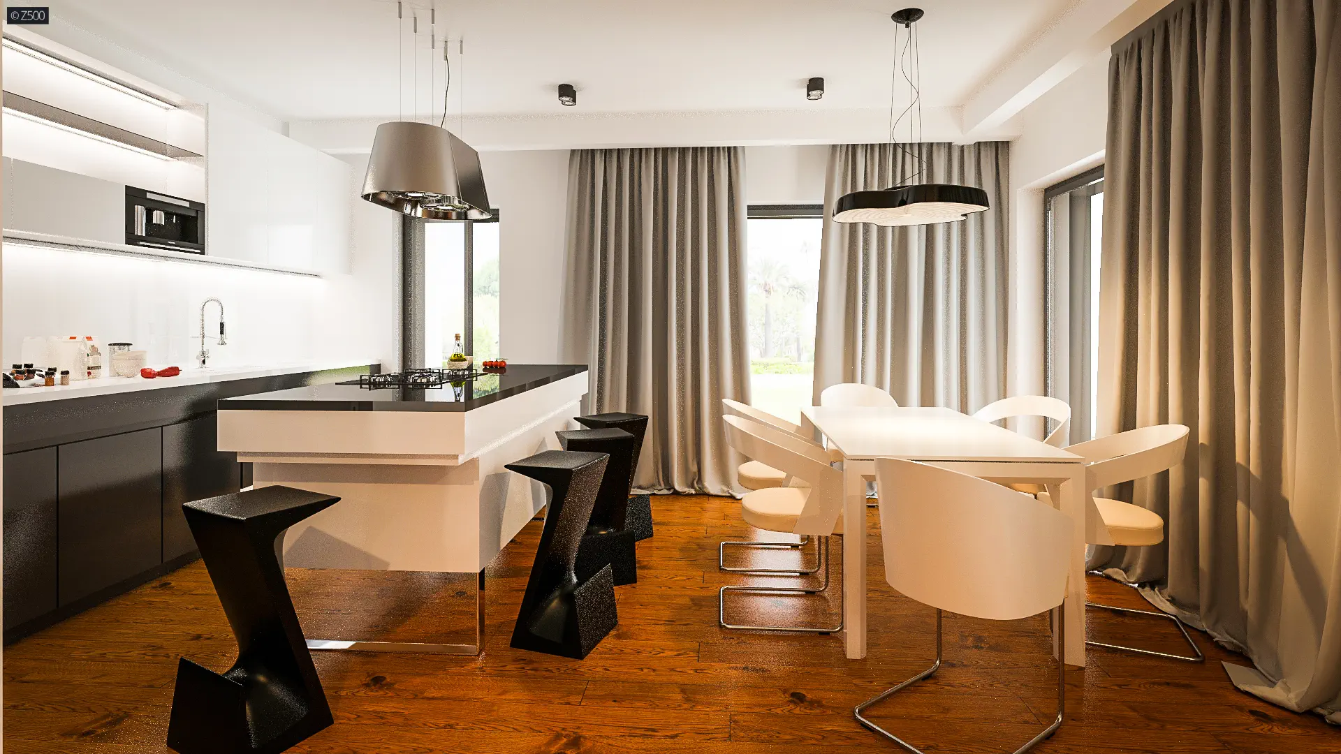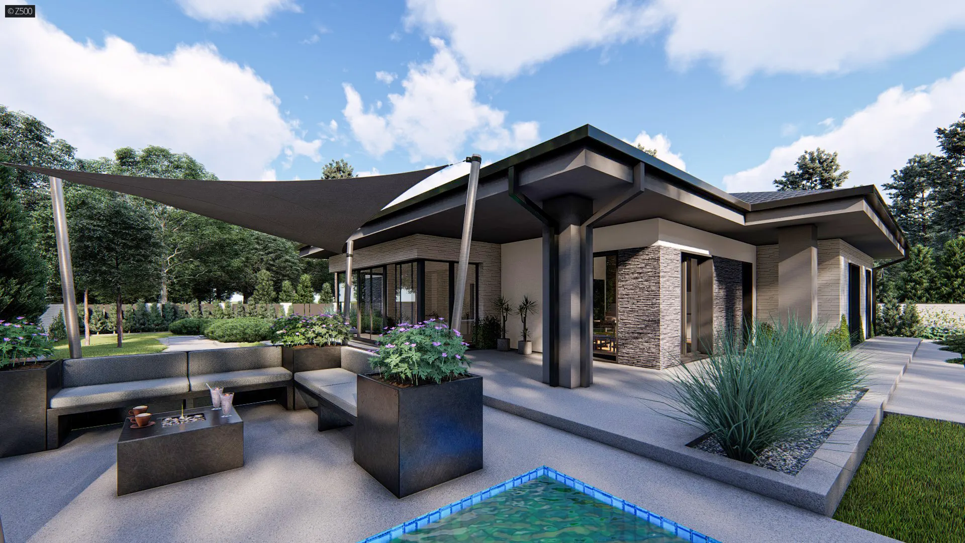 Dom parterowy, z garażem 2stanowiskowym kuchnia od ogrodu i bocznym salonem.