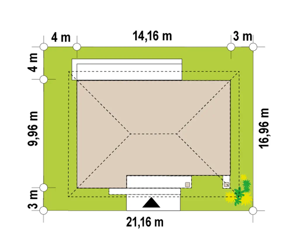 Projekt Z427 to funkcjonalny dom parterowy z garażem jednostanowiskowym umieszczonym z prawej strony budynku. Jest to dobry wybór dla rodziny 2+1 lub osób, których dzieci "wyfrunęły" już z gniazda rodzinnego.