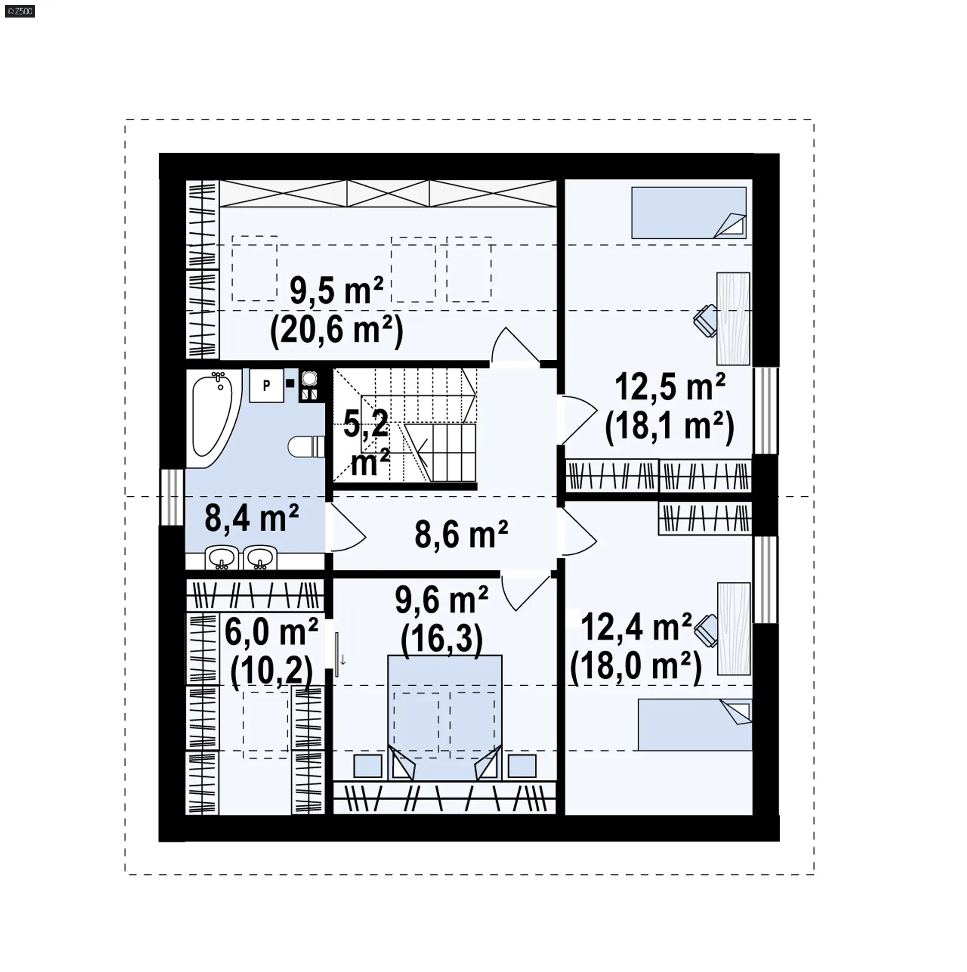 Całość powierzchni użytkowej projektu Z436 wynosi ok. 125m2. Jest on idealny dla osób, które chcą mieć wystarczająco dużą powierzchnię by móc wszystko pomieścić i jednocześnie wystarczająco małą do samodzielnego sprzątania.
