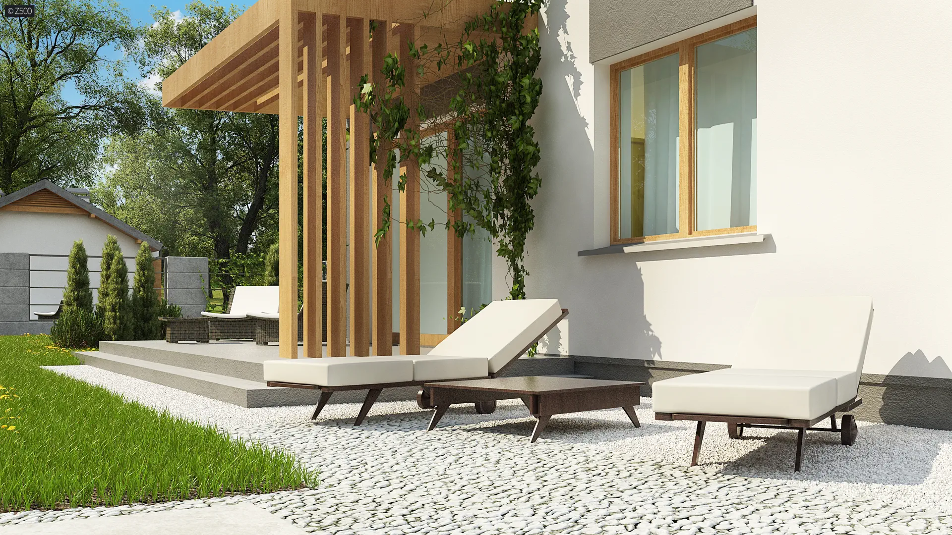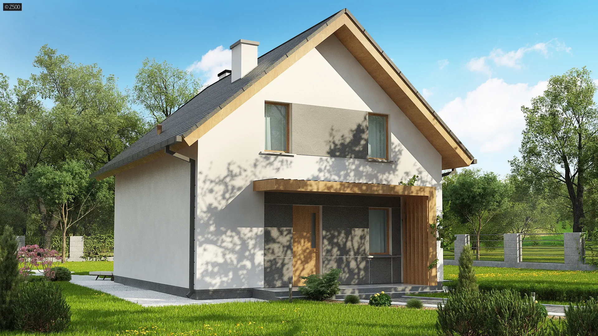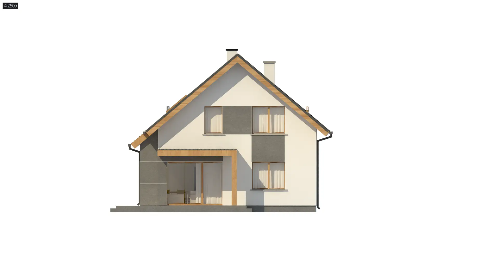 Z44 A to projekt współczesnego domu z poddaszem. Spadzisty dach, który dodatkowo zdobią okna połaciowe oraz połączenie bieli elewacji z ciemnym kolorem dachu daje wrażenie klasycznej elegancji.