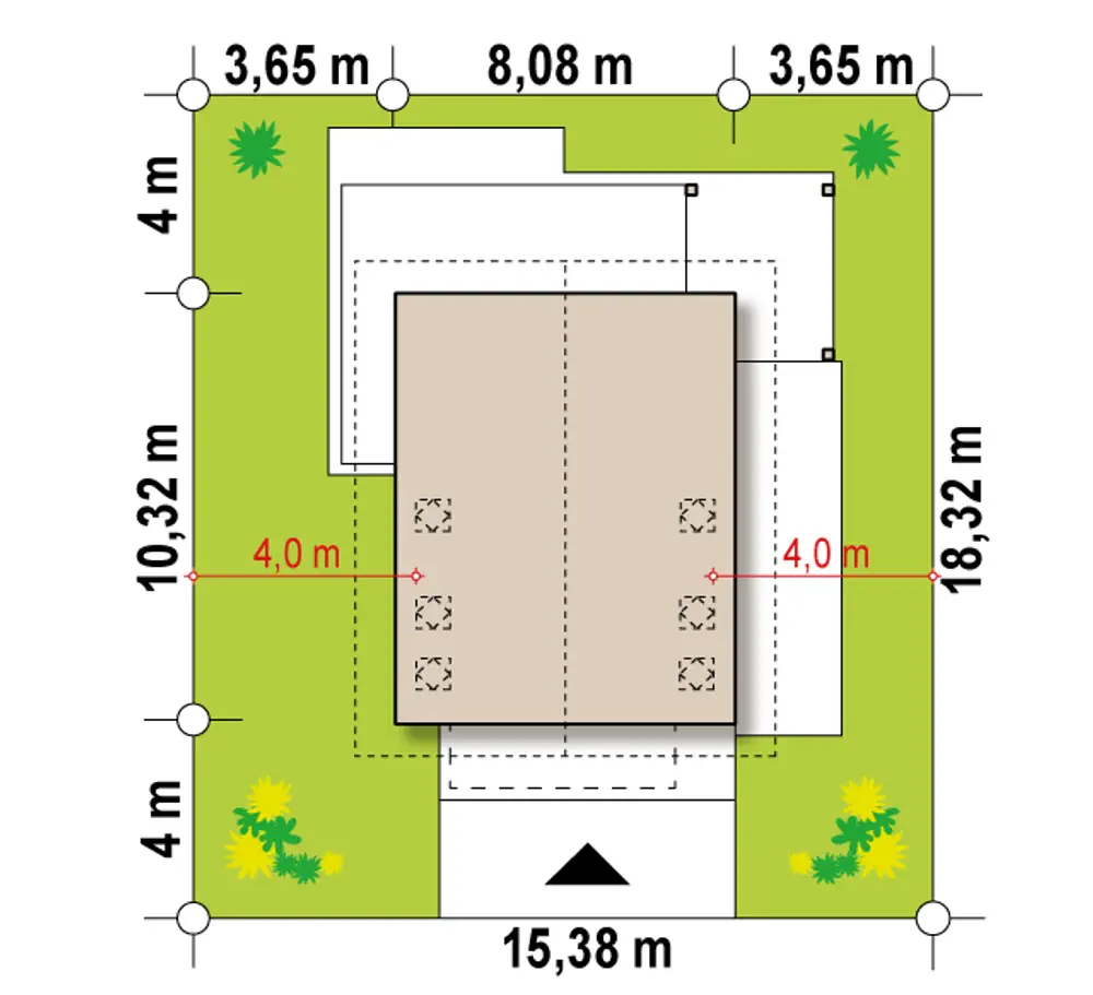 W związku z tym, iż domek nie ma okien na elewacjach bocznych, istnieje możliwość dobudowania garażu- alternatywą może być wiata pokazana na wizualizacjach.