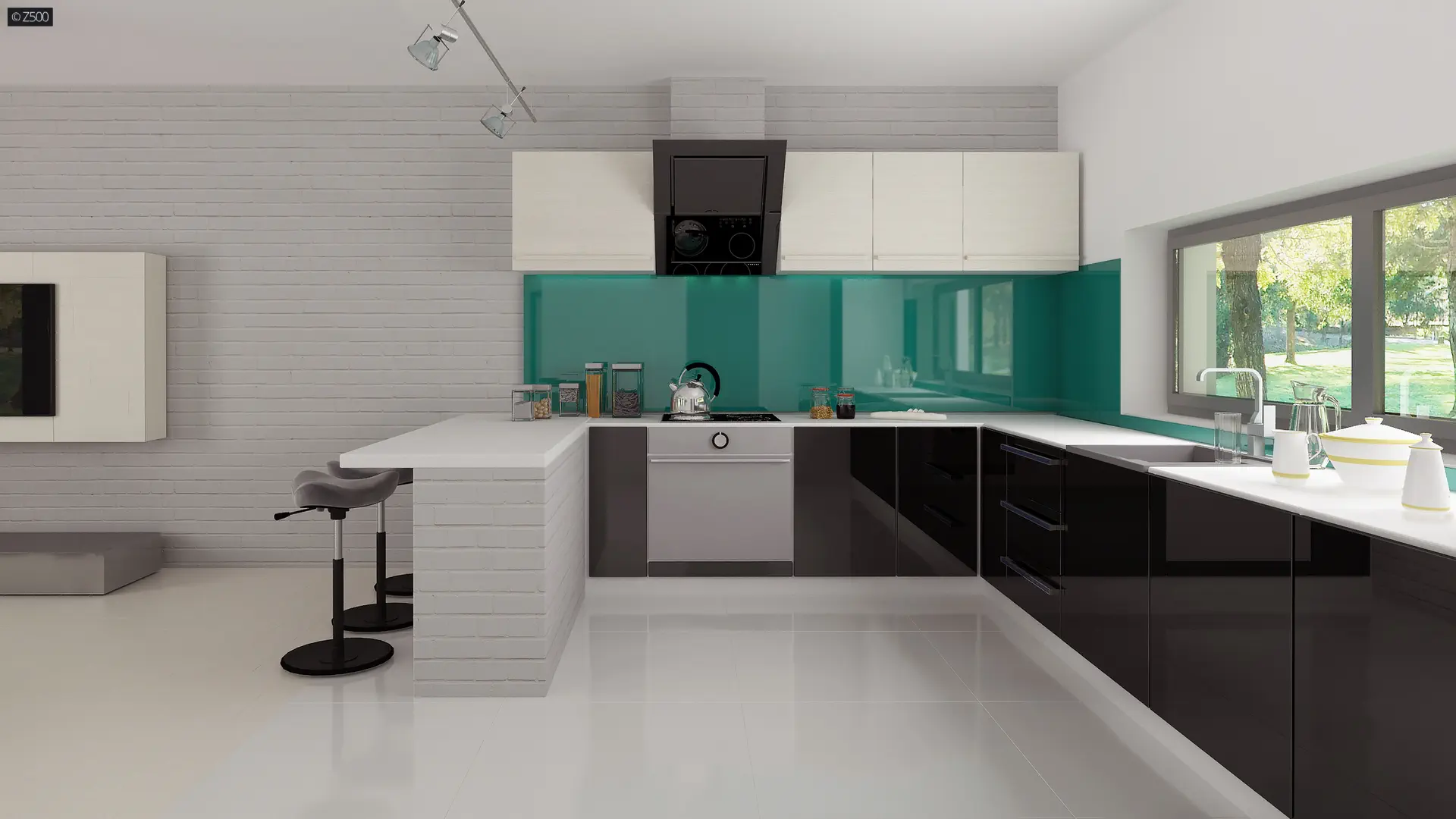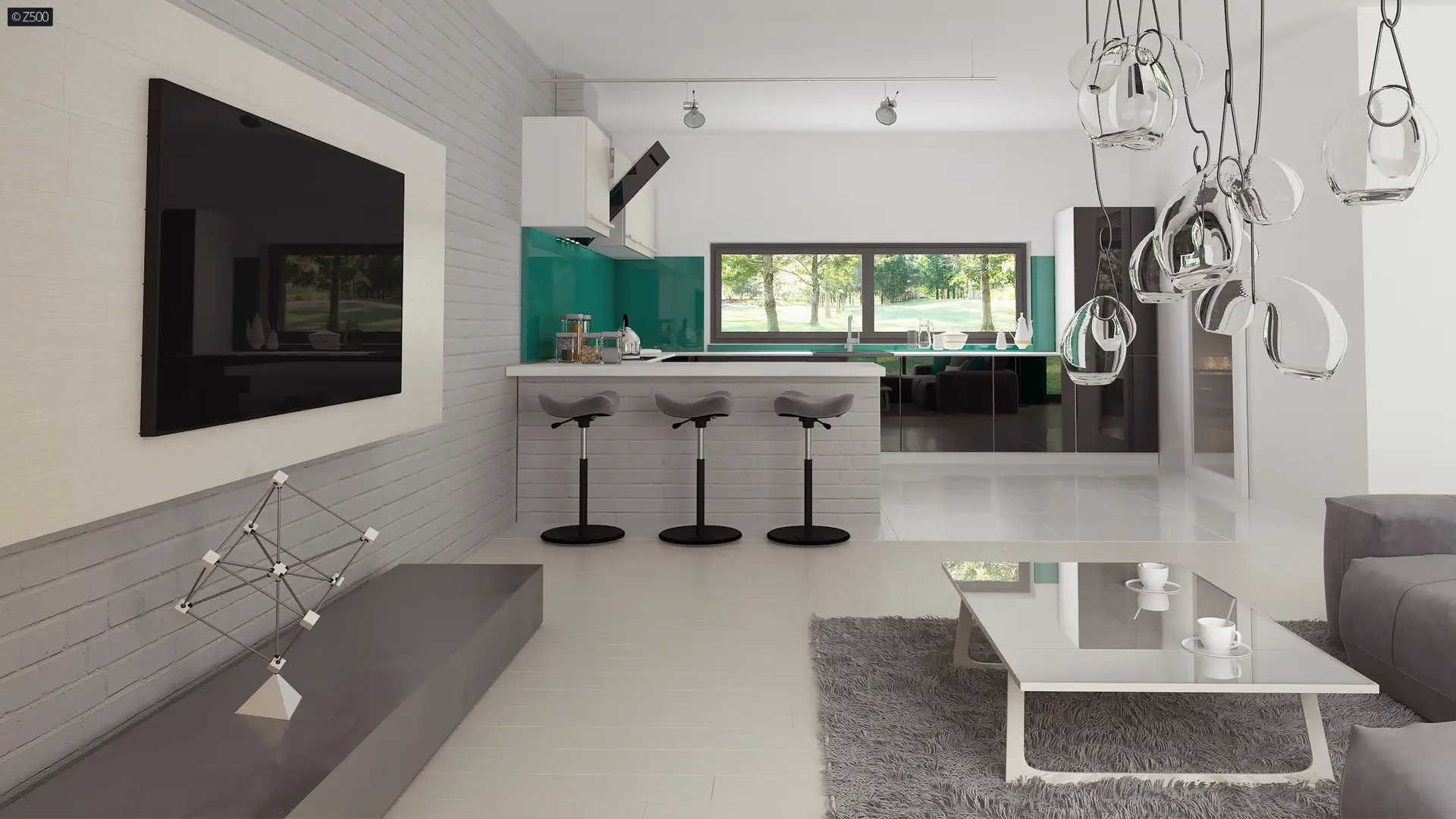 Współczesny parterowy dom z trzema sypialniami i gabinetem.